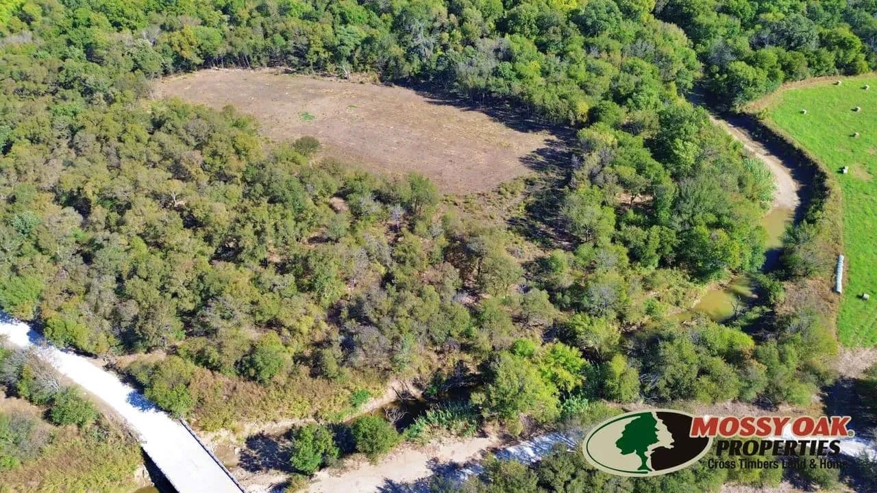 Hunters — here’s your dream property near the Metroplex! If you’ve been searching for a true recreational paradise close to home, this is it. This tract sits entirely within the floodplain, making it a rare find that’s perfect for hunting, fishing, and getting off the grid — not for development. It’s a place where the air feels fresher, the woods run deeper, and the only sounds you’ll hear are the calls of wildlife and the wind in the trees. When the creek’s running, you can count on excellent catfishing, and the deer herd is strong with a healthy age mix that speaks to years of good habitat and low pressure. Whether you’re after whitetail, turkey, or small game, this land offers diverse cover, food, and water — everything necessary to hold wildlife year-round. An established 2.8-acre food plot sits in the heart of the property, drawing deer and turkey in from every direction. Well-cut trails wind throughout the woods, making access easy and enjoyable whether you’re slipping in for a morning hunt or scouting sign in the off-season. The property also includes a blind and feeders that will convey, so it’s ready to hunt from day one. You’ll find yourself surrounded by nature here — the kind of place that restores peace and quiet while still keeping you just a short drive from the Metroplex. It’s rare to find a property that combines great hunting, great fishing, and great location all in one, but this one checks every box. If you’ve been dreaming of a place where you can chase deer at sunrise, catch catfish by noon, and watch the woods come alive at dusk, look no further. This is your escape — close to home, far from ordinary.