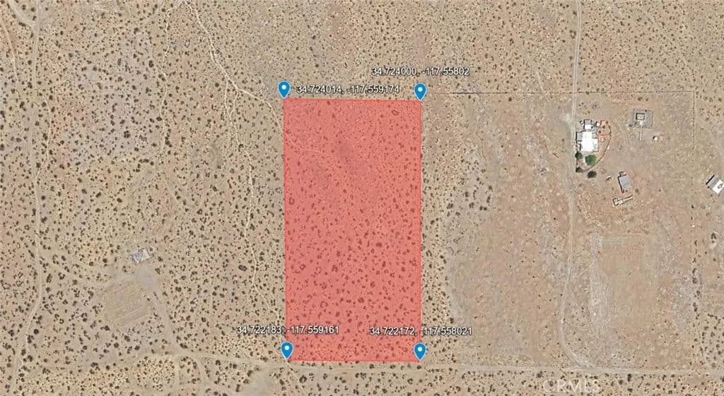 5 acres zoned Residential Vacant Land ready for your vision. Land parcel identified by APN:0462-191-47-0000. No situs address assigned by county; address shown is for MLS input only. GPS coordinates: 34.723096, -117.558596. Buyer to verify zoning, permitted uses, and utility availability.