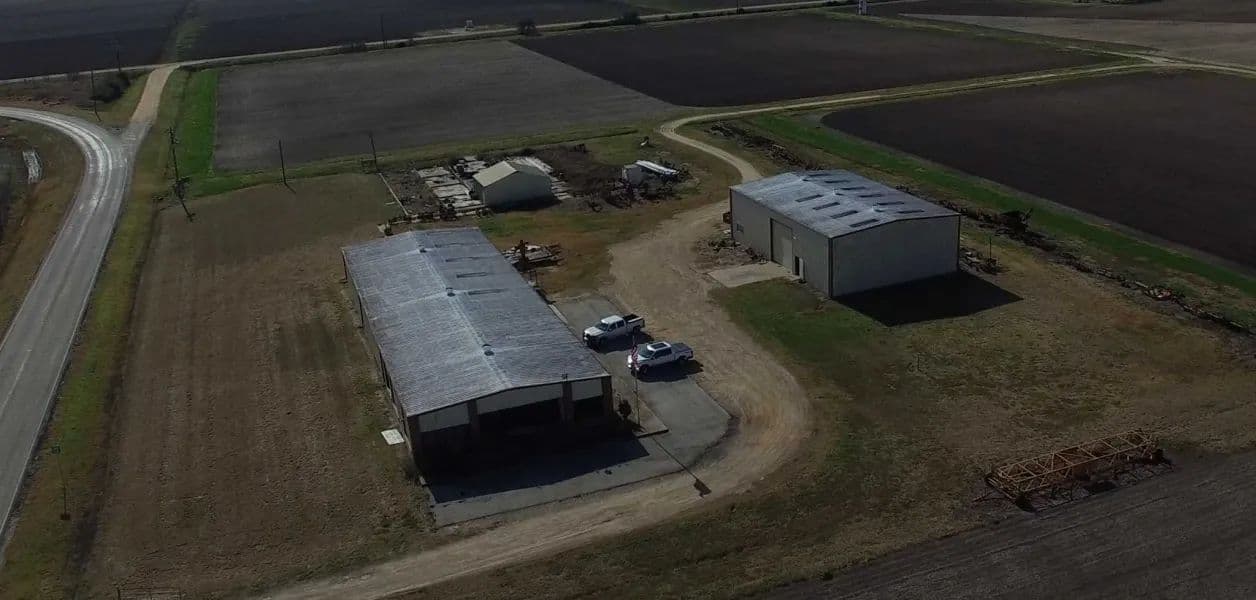 There is another 3500 sq ft 20 Tall Farm Shop & Shed. This Shop is also Insulated. It has an Office, Restroom, Welding & Repair Area, Storage on Top of Office, & an A Frame mounted from the Ceiling that runs from the middle of the Shop to the Welding Area with a 1500 Lb Capacity Hoist. The Rest is Open for Storage.
