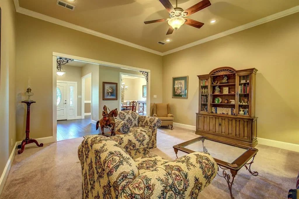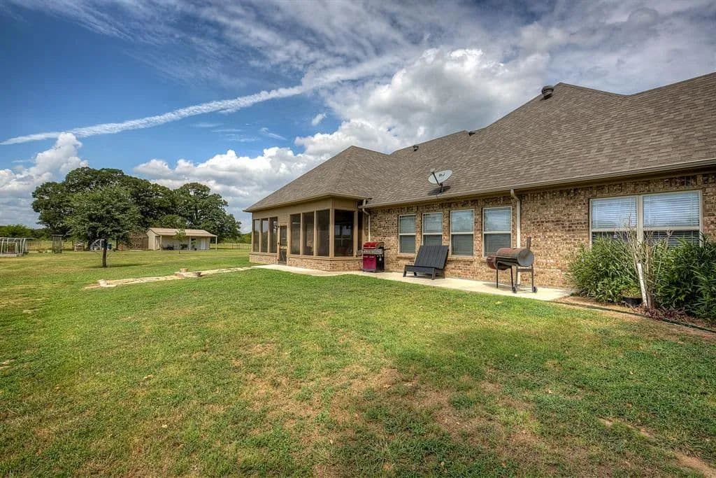 Country living with endless possibilities on nearly 20 acres! Private entry fence with circle drive & 3 car garage. Beautiful custom home with an office, formal dining, crown molding, mud room, & an enclosed porch to relax in while the sun sets. Entertain in your large kitchen with double ovens, granite counters, gas cook top, island, plumbed for an above-stove pot filler, & a butler's pantry. The master suite features an over-sized space for a siting area, tray ceiling, & en-suite bath boasting a jetted tub, walk-in shower, & ample counter space. RV pad, 30x30 shop, 12x14 storage building, 60x100 barn with stalls, pipe fencing throughout. Ask about special financing available!
