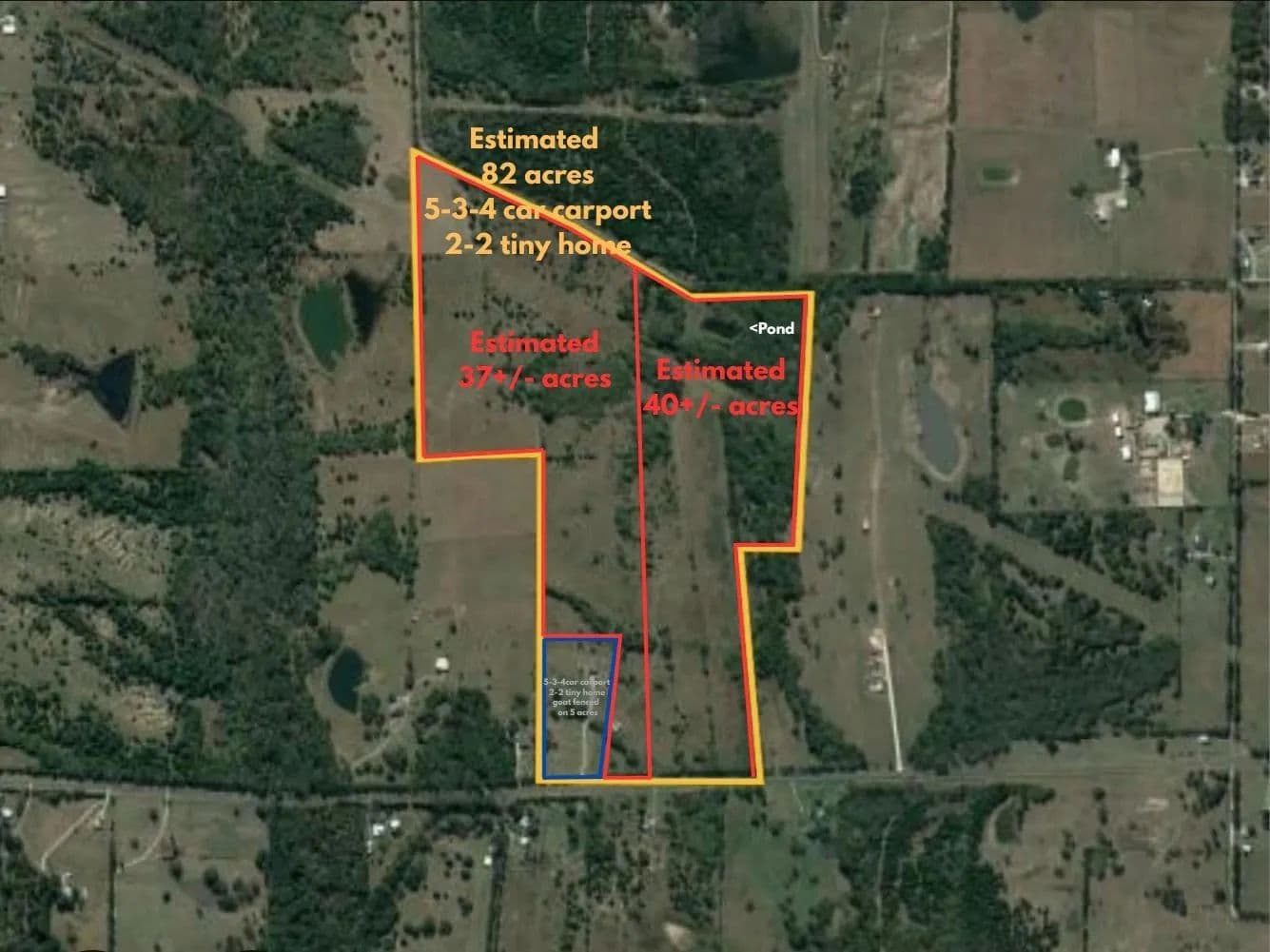 Minutes to I30, Greenville and East Texas A&M University in Commerce with AGRICULTURAL EXEMPTION in place, NO RESTRICTIONS where you can build a home or a barndominium! Enjoy beautiful, country living with space for your animals, enjoy outdoor ATV activities or hunting. Low property taxes and avoid monthly water expense when you install a well to enjoy amazing water from the Nacotosh Aquifer! Seller offering to subdivide a 40 acre tract, a 37 acre tract or 20 acre tracts from the 77.34 acres of land. Estimated examples of the tracts located in the photos with the 77.34 acres listed as a **DEVELOPMENT OPPORTUNITY** of single family, tiny homes, off campus living with extensive ASPHALT road frontage on FM 2736, hunting or open pasture with trees, a pond, hay crop, fully fenced with barbed wire fencing to accommodate livestock. AG EXEMPTION in place. Pond located on the south end of the property. A water well, nearly 300' DEEP, supplied by the NACOTOSH AQUIFER located on the additional 5 acres with a 3,192 s.f., 5-bedroom home, a 4-car carport and a 1,020 s.f. tiny home offering 2 bedrooms and 2 full bathrooms *****MECHANICAL SYSTEMS support TWO HOMES i.e. septic, water well, transformer to electric ***** can be purchased together with the 77.34 acres listed under a separate listing of 82.34 acres and two homes, MLS number 20864438, in which some aerial photos include the additional goat fenced, 5 acres, the 3,192 s.f. home and the tiny home. The five acres with the home and tiny home are NOT available to purchase unless all other sections of the land have been sold.