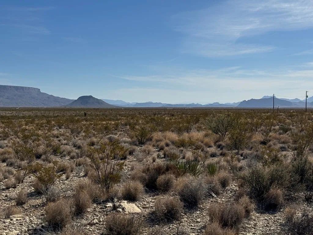 Perfect highway frontage, excellent views, easy access from HWY 118. Financeable, offers level ground to build your desert dream home on. Perfect location for a business or home, or glamping, it's minutes away from the Little Burro Store, north of Big Bend National Park, access to Terlingua Ranch pool and Restaurant. Call Kerri for a showing 432-294-1071