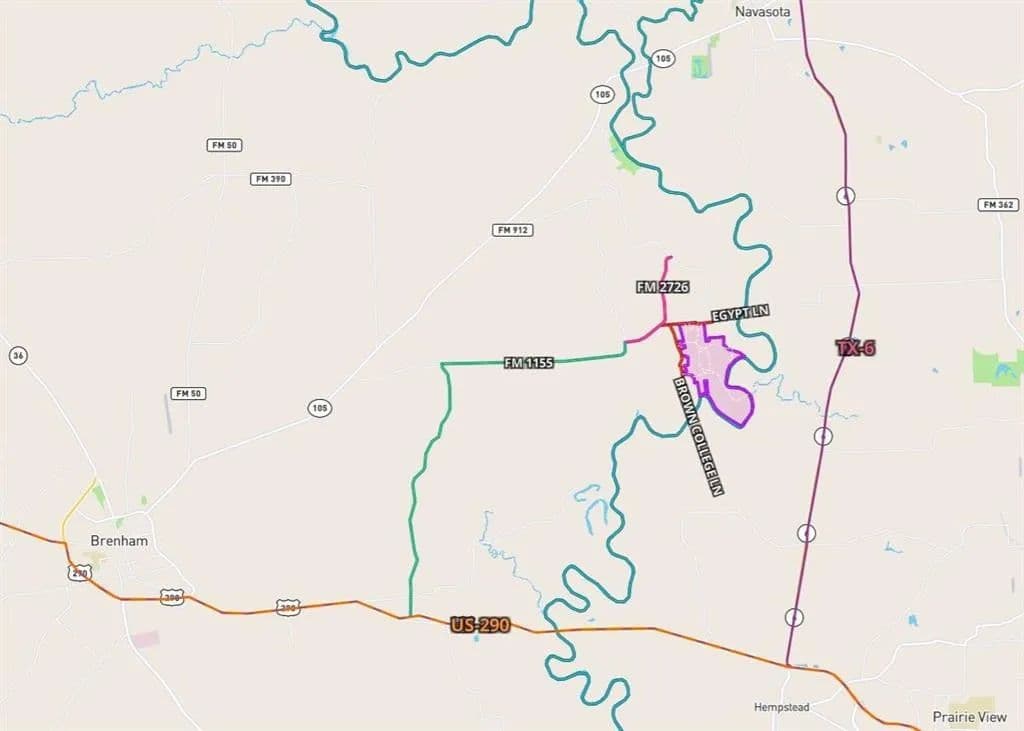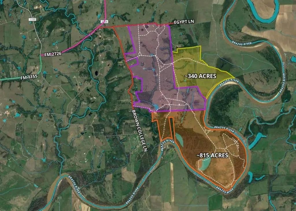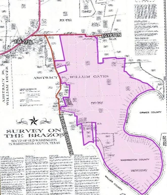 Ag Exempt Washington County Oxbow Brazos Riverfront Majestic ~1835-Acre Hunting/Cattle Ranch Near US-290 & TX-6. Property has ~20,500 Feet Brazos River Frontage, ~3700 Feet Egypt Lane Frontage, 3 Gates onto Brown College Lane, Many Lakes/Ponds/Creeks/Outbuildings, Home, Expansive Views of Beautiful Rolling Hills/the Grand Brazos River. Cross-Fenced Pastures w/Numerous Access Gates, Clusters of Mature Oak Trees & Gazebos, Lakes w/Fishing Pier & Foot Bridge. Ag Exempt for Cattle! Located 15 Miles to US-290/Chappell Hill & TX-6/Navasota Midpoint Between Houston & Austin. 40 Miles to Easterwood Airport/College Station. Perfect for Hunting/Raising Livestock/Trail Riding. Infinite Possibilities: Acreage Development/Campgrounds/Outdoor Club/Equestrian Facility, etc. Amount of Acreage for Sale is based on Tax Records. River Frontage & Road Frontage Measurements are Estimates. Buyer to Purchase New Survey if Required! Also Available Subdivided! Watch Drone Video!