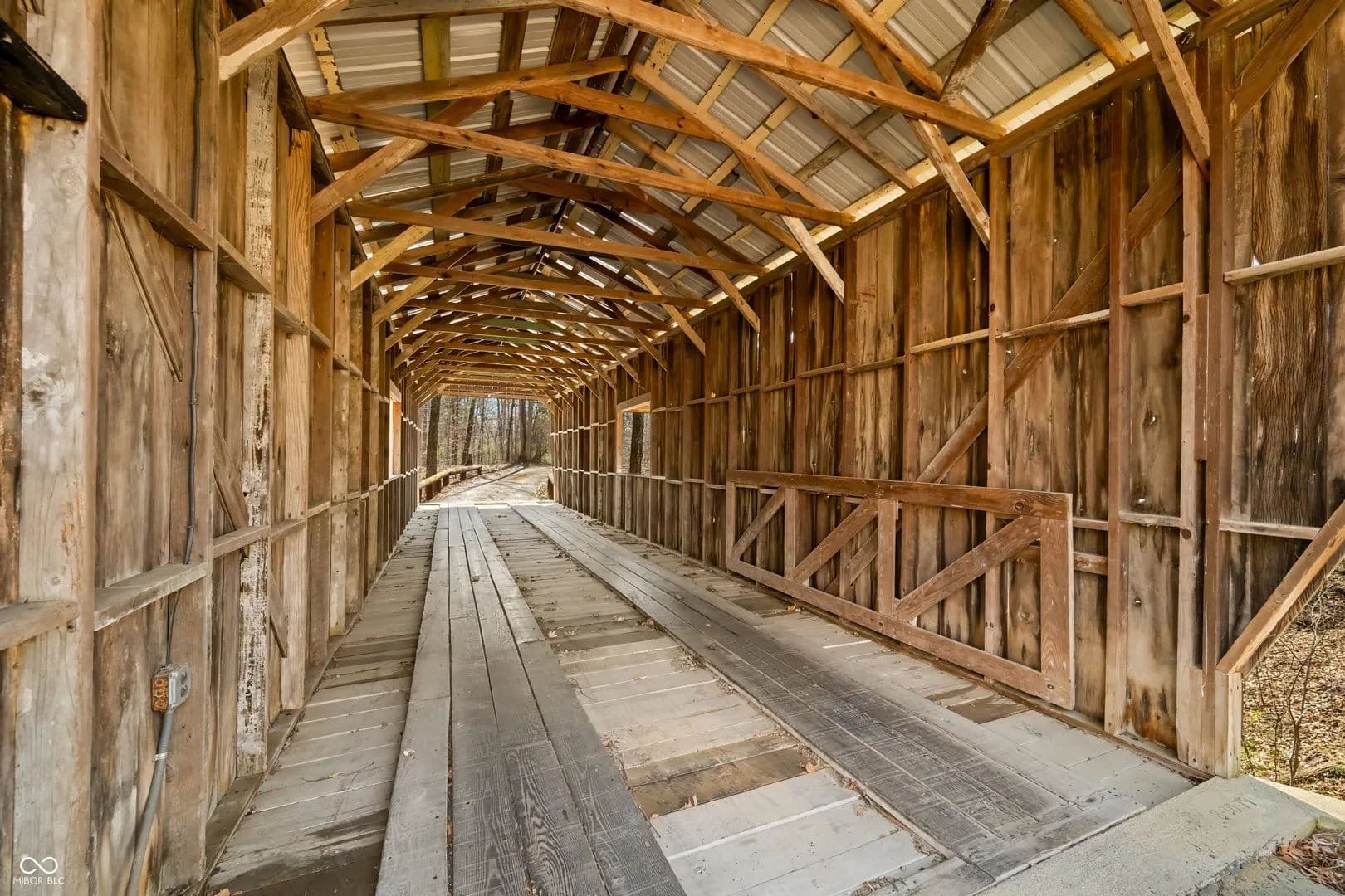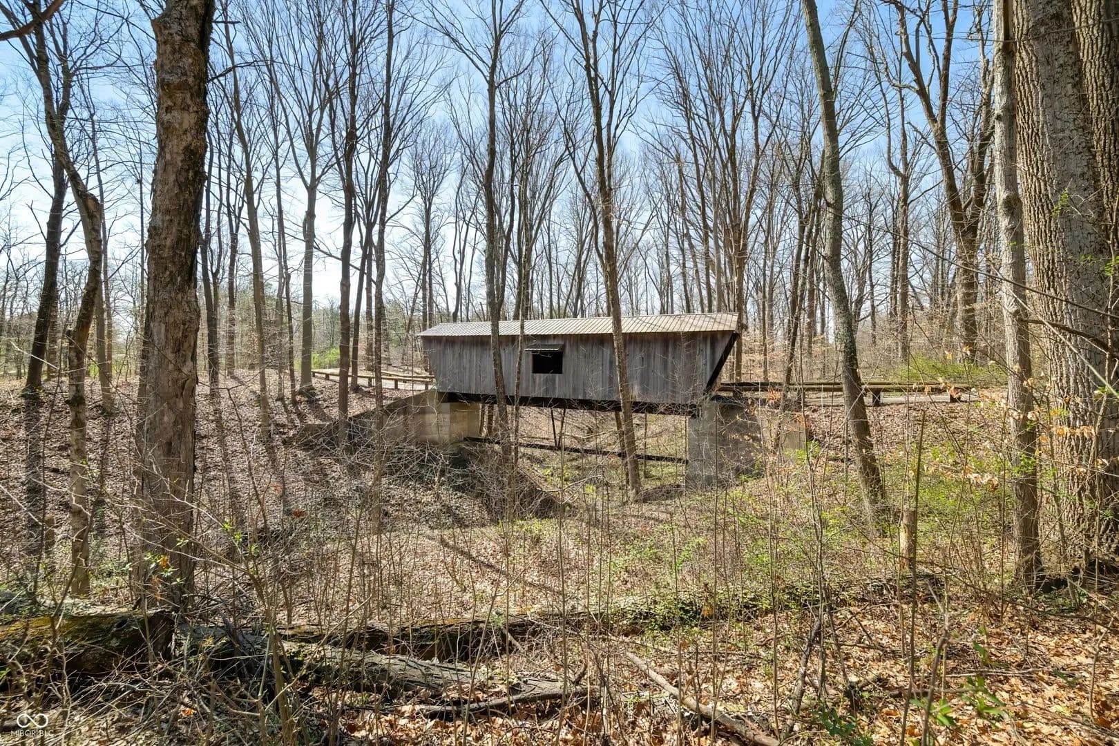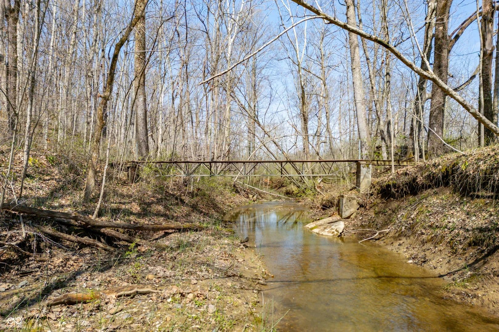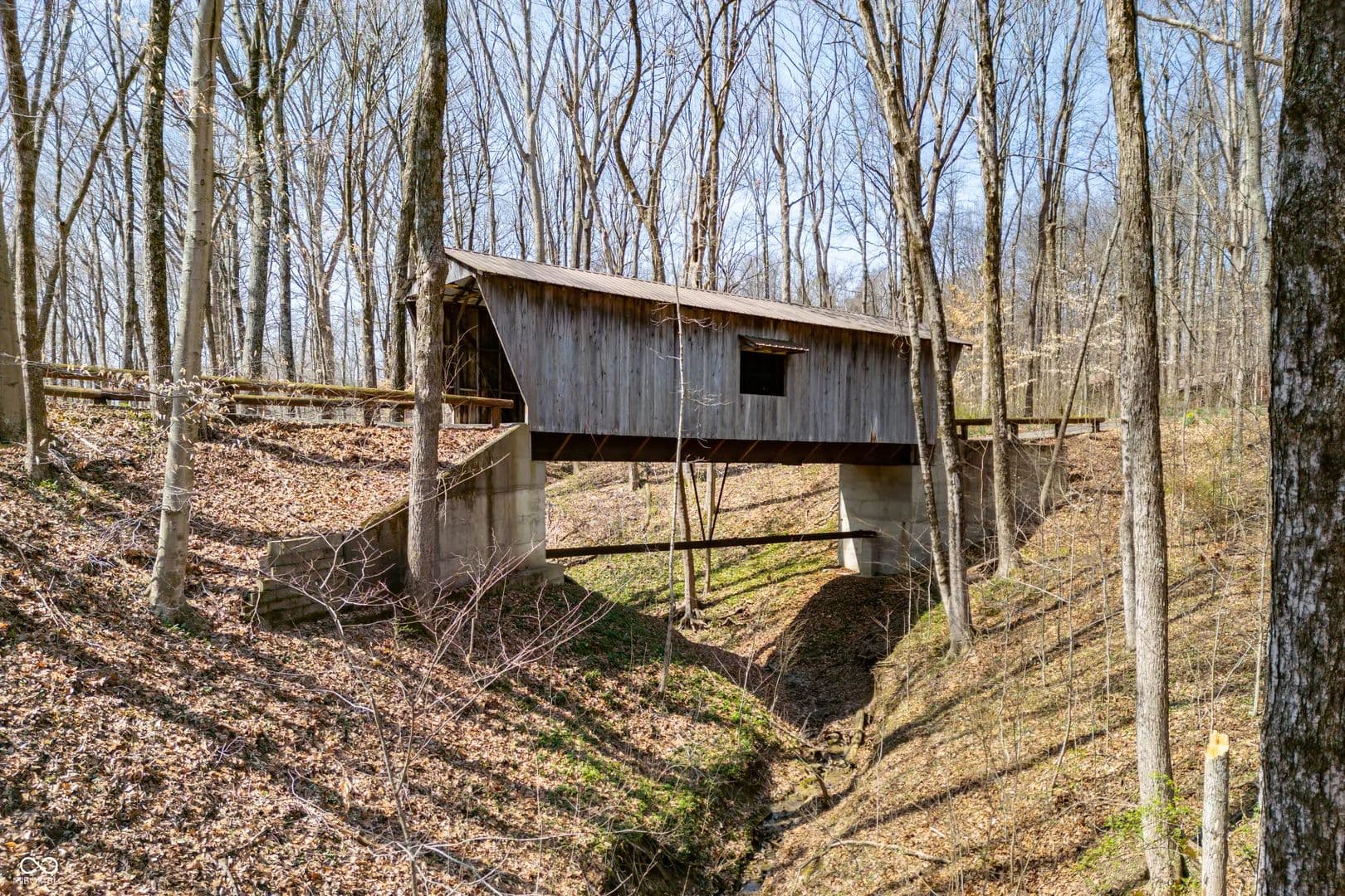 OH MY!! THIS PLACE IS SPECIAL!! NEARLY 30 BEAUTIFULLY WOODED ACRES is a NATURE LOVER'S DREAM in Southern JOHNSON COUNTY just south of TRAFALGAR! INDIAN CREEK SCHOOLS! This is a one-of-kind MUST SEE property! As you drive onto the property, you will be greeted with a HISTORIC COVERED BRIDGE built in 1979 by the owner! The sides & roof consist of recycled barn wood and metal. CUSTOM-BUILT brick 3-bedroom, 2 1/2 bath home 1 car garage boasts around 3,000 sq ft with a partially finished WALK-OUT BASEMENT with a 2nd kitchen/bar area. Raw barnwood (reclaimed from old barn & schoolhouse) & brick accent walls throughout. Many beautiful BUILT-IN SHELVES as well. Woodburning fireplace is the centerpiece of the family room competing with the bay window views! GRANITE COUNTERTOPS in kitchen. The SCREENED-IN FRONT PORCH is perfect for your morning coffee, reading a book, or just watching nature! 40x60 POLE BARN w/electricity, water, partially concreted floor, 3 overhead doors with one bay sporting a pull through for your camper/RV/Boat. There are two additional small barns near garden. THE INDIAN CREEK passes through this property from North to South. Cross the FOOTBRIDGE over the creek to fish the STOCKED 1/2 ac POND! Take in the property's beauty with a hike on the nearly 2 MILES of TRAILS. Diverse elevations provide PRIME HUNTING GROUND! Large GARDEN area w/BLUEBERRY PATCH. Over 600ft OF ROAD FRONTAGE. The 10-12 flatter acres to the east has possibility to be divided off (per proper approval/permitting) for an addt'l building lot, or serve as a great area for horses, cattle, additional barn, small orchard, etc. This area of three fields currently consists of native prairie grass, natural succession, and hay. Formerly was a Christmas Tree Farm. This RARE FIND IS JUST 10 min to Indian Creek Schools and SR 135/SR 252, 20 min to I-65 Attractions Nearby...APPLE WORKS, Laura Hare Preserve at Blossom Hollow, Betley Woods at Glacier's End (opening in 2025)
