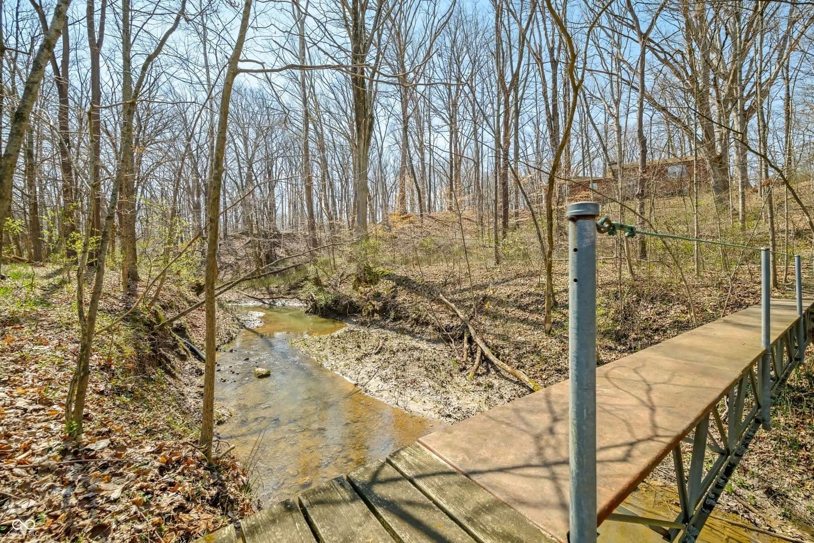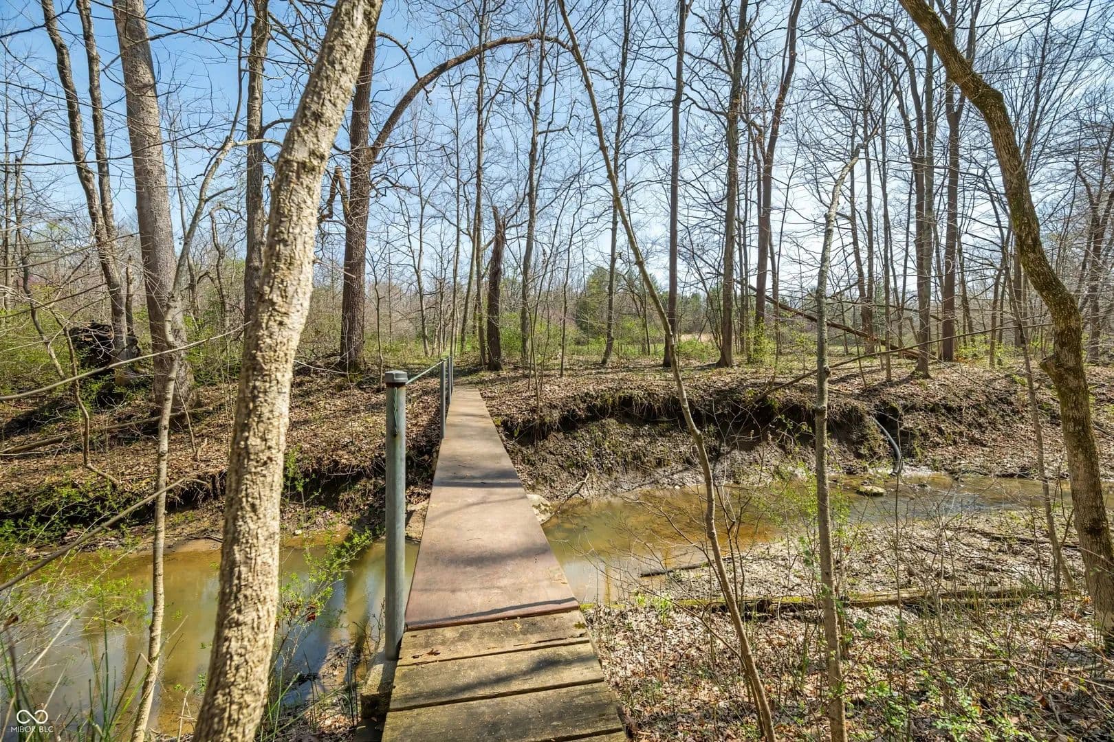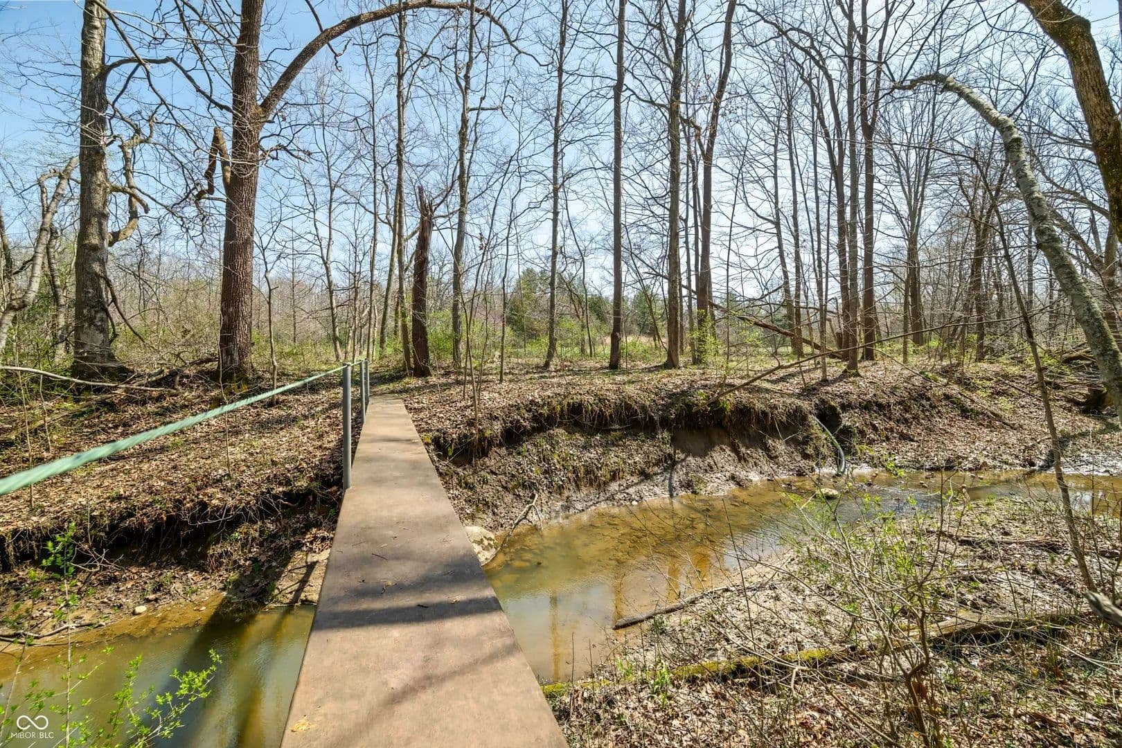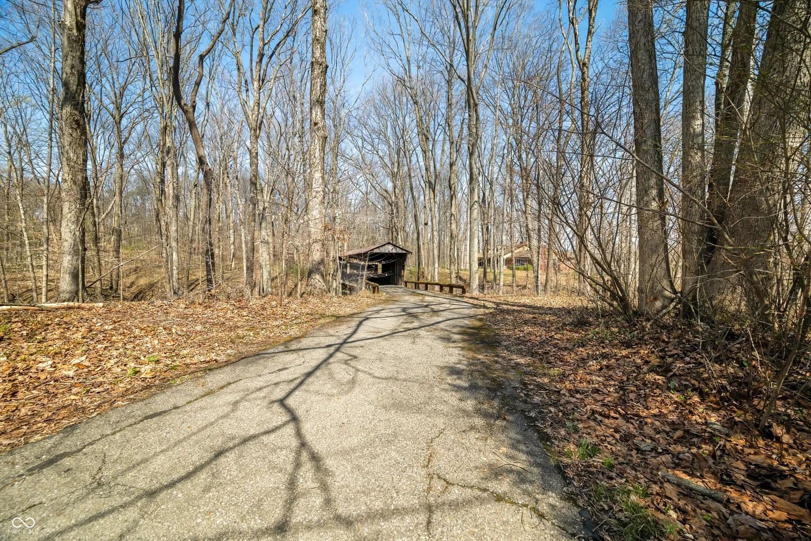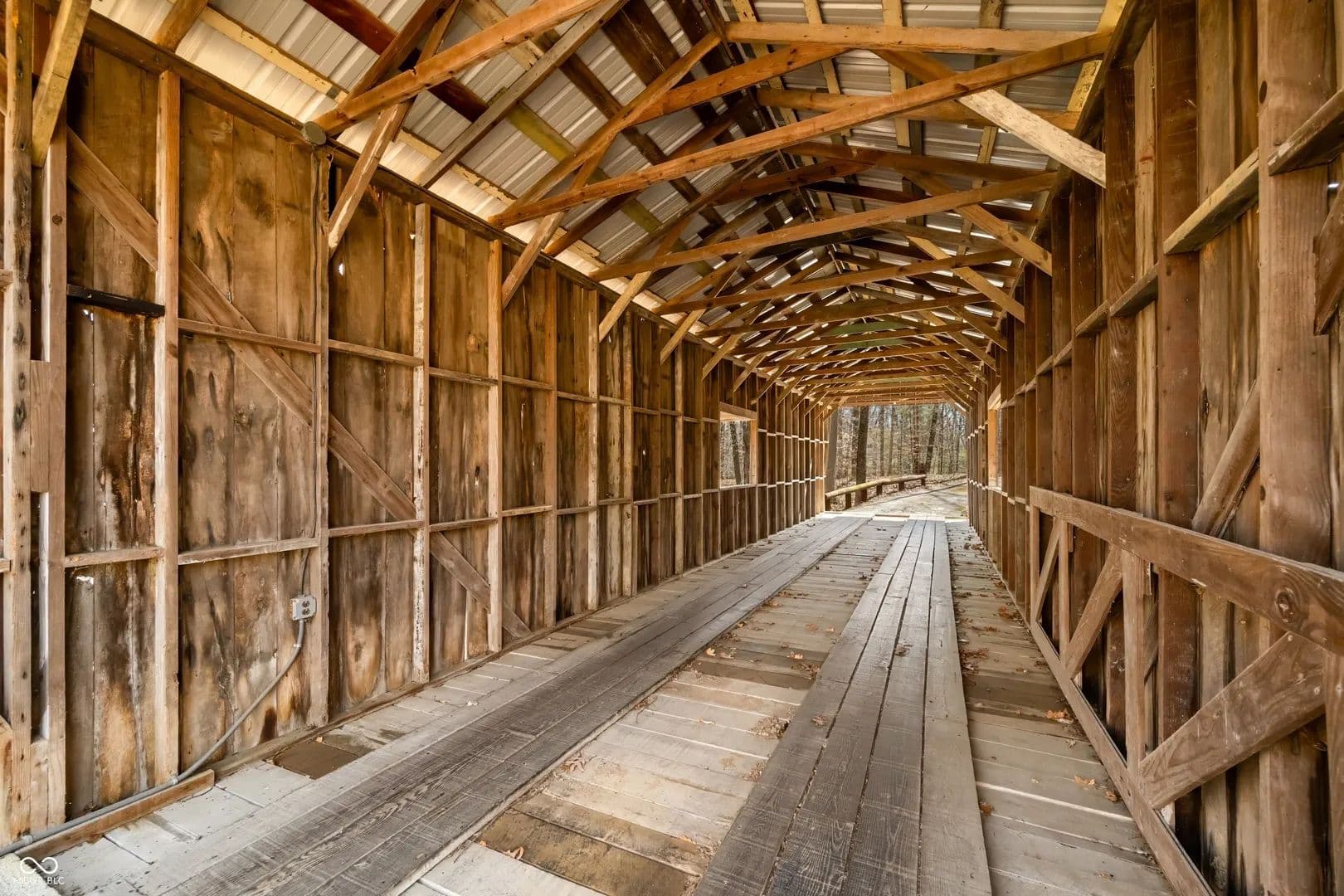 OH MY!! THIS PLACE IS SPECIAL!! NEARLY 30 BEAUTIFULLY WOODED ACRES is a NATURE LOVER'S DREAM in Southern JOHNSON COUNTY just south of TRAFALGAR! INDIAN CREEK SCHOOLS! This is a one-of-kind MUST SEE property! As you drive onto the property, you will be greeted with a HISTORIC COVERED BRIDGE built in 1979 by the owner! The sides & roof consist of recycled barn wood and metal. CUSTOM-BUILT brick 3-bedroom, 2 1/2 bath home 1 car garage boasts around 3,000 sq ft with a partially finished WALK-OUT BASEMENT with a 2nd kitchen/bar area. Raw barnwood (reclaimed from old barn & schoolhouse) & brick accent walls throughout. Many beautiful BUILT-IN SHELVES as well. Woodburning fireplace is the centerpiece of the family room competing with the bay window views! GRANITE COUNTERTOPS in kitchen. The SCREENED-IN FRONT PORCH is perfect for your morning coffee, reading a book, or just watching nature! 40x60 POLE BARN w/electricity, water, partially concreted floor, 3 overhead doors with one bay sporting a pull through for your camper/RV/Boat. There are two additional small barns near garden. THE INDIAN CREEK passes through this property from North to South. Cross the FOOTBRIDGE over the creek to fish the STOCKED 1/2 ac POND! Take in the property's beauty with a hike on the nearly 2 MILES of TRAILS. Diverse elevations provide PRIME HUNTING GROUND! Large GARDEN area w/BLUEBERRY PATCH. Over 600ft OF ROAD FRONTAGE. The 10-12 flatter acres to the east has possibility to be divided off (per proper approval/permitting) for an addt'l building lot, or serve as a great area for horses, cattle, additional barn, small orchard, etc. This area of three fields currently consists of native prairie grass, natural succession, and hay. Formerly was a Christmas Tree Farm. This RARE FIND IS JUST 10 min to Indian Creek Schools and SR 135/SR 252, 20 min to I-65 Attractions Nearby...APPLE WORKS, Laura Hare Preserve at Blossom Hollow, Betley Woods at Glacier's End (opening in 2025)