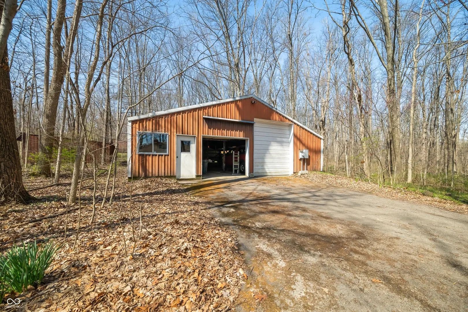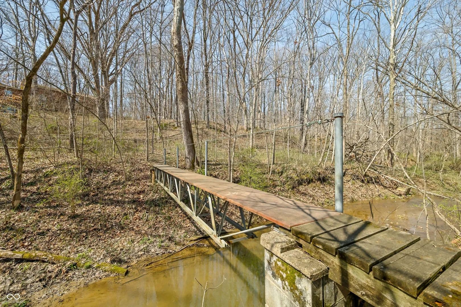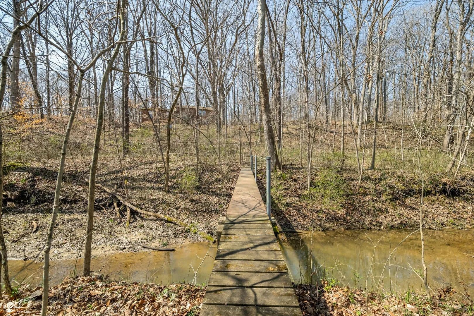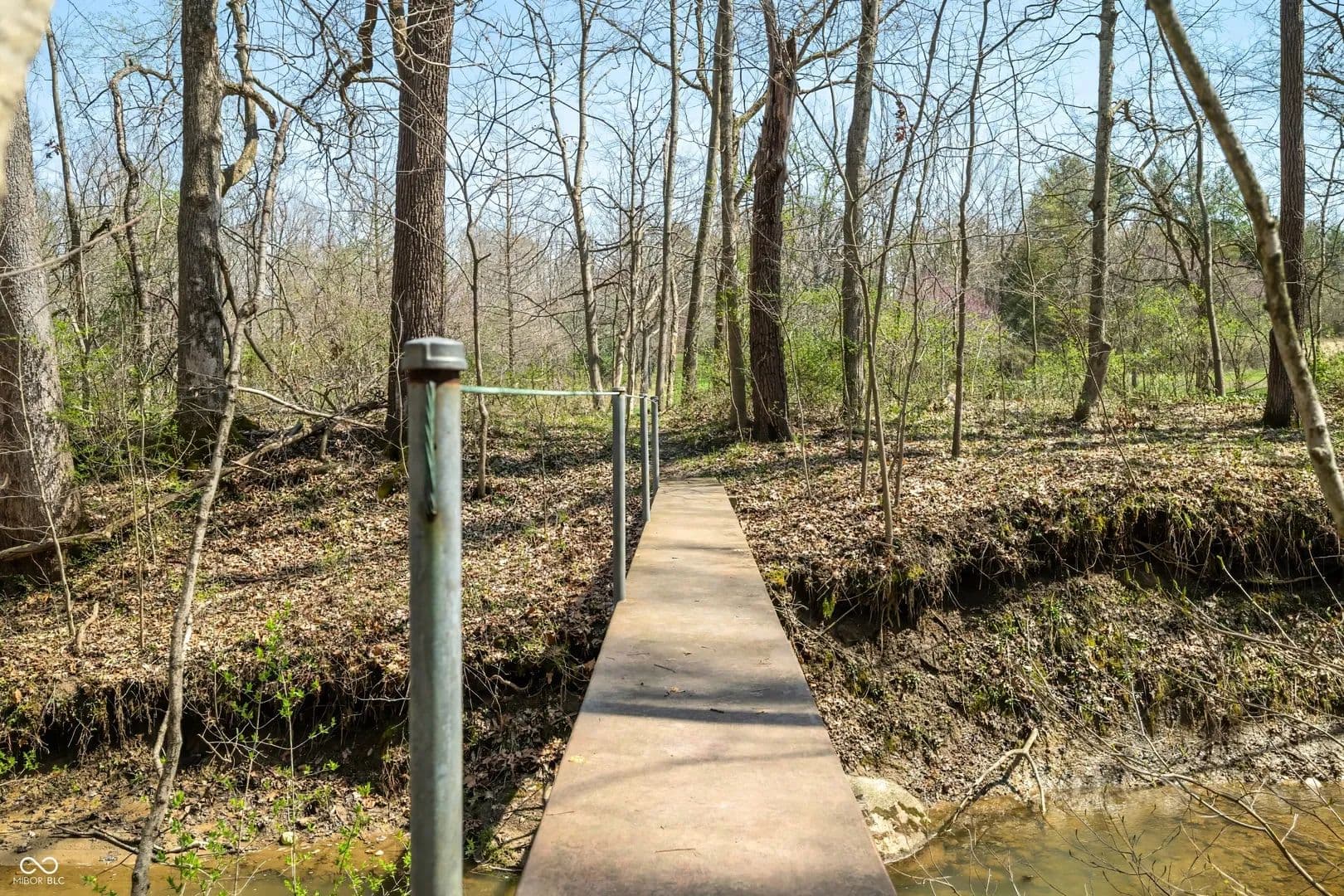 OH MY!! THIS PLACE IS SPECIAL!! NEARLY 30 BEAUTIFULLY WOODED ACRES is a NATURE LOVER'S DREAM in Southern JOHNSON COUNTY just south of TRAFALGAR! INDIAN CREEK SCHOOLS! This is a one-of-kind MUST SEE property! As you drive onto the property, you will be greeted with a HISTORIC COVERED BRIDGE built in 1979 by the owner! The sides & roof consist of recycled barn wood and metal. CUSTOM-BUILT brick 3-bedroom, 2 1/2 bath home 1 car garage boasts around 3,000 sq ft with a partially finished WALK-OUT BASEMENT with a 2nd kitchen/bar area. Raw barnwood (reclaimed from old barn & schoolhouse) & brick accent walls throughout. Many beautiful BUILT-IN SHELVES as well. Woodburning fireplace is the centerpiece of the family room competing with the bay window views! GRANITE COUNTERTOPS in kitchen. The SCREENED-IN FRONT PORCH is perfect for your morning coffee, reading a book, or just watching nature! 40x60 POLE BARN w/electricity, water, partially concreted floor, 3 overhead doors with one bay sporting a pull through for your camper/RV/Boat. There are two additional small barns near garden. THE INDIAN CREEK passes through this property from North to South. Cross the FOOTBRIDGE over the creek to fish the STOCKED 1/2 ac POND! Take in the property's beauty with a hike on the nearly 2 MILES of TRAILS. Diverse elevations provide PRIME HUNTING GROUND! Large GARDEN area w/BLUEBERRY PATCH. Over 600ft OF ROAD FRONTAGE. The 10-12 flatter acres to the east has possibility to be divided off (per proper approval/permitting) for an addt'l building lot, or serve as a great area for horses, cattle, additional barn, small orchard, etc. This area of three fields currently consists of native prairie grass, natural succession, and hay. Formerly was a Christmas Tree Farm. This RARE FIND IS JUST 10 min to Indian Creek Schools and SR 135/SR 252, 20 min to I-65 Attractions Nearby...APPLE WORKS, Laura Hare Preserve at Blossom Hollow, Betley Woods at Glacier's End (opening in 2025)
