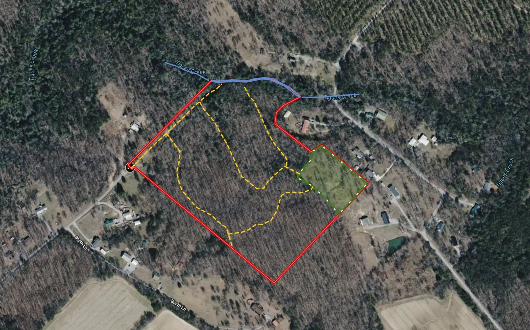 The Rhea 27.39 enters into a 50± foot utility right-of-way that runs along the eastern edge of the property all the way down to the creek. There is an extensive trail system providing ample access throughout the property. The northwest corner of the tract provides a 2.5± acre field perfect for a nice food plot or even livestock.