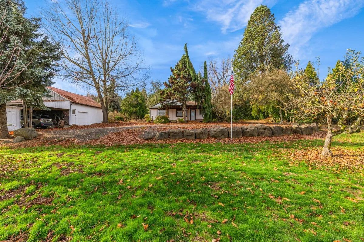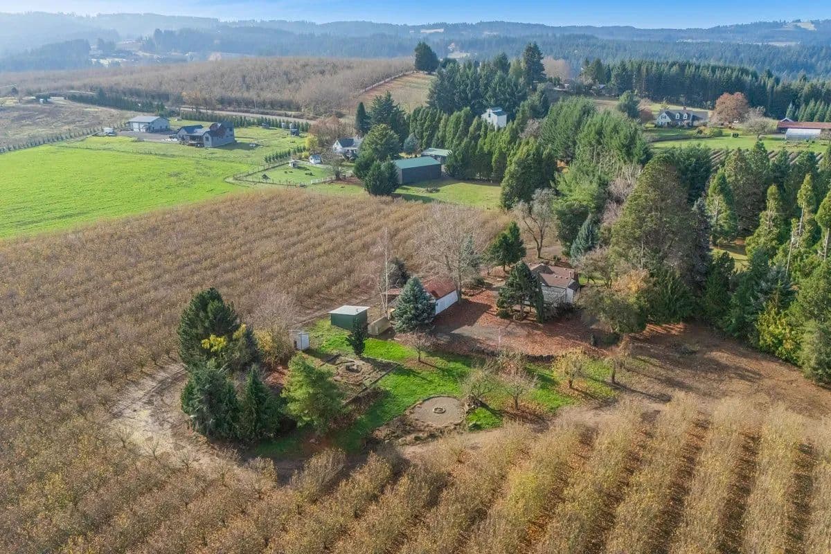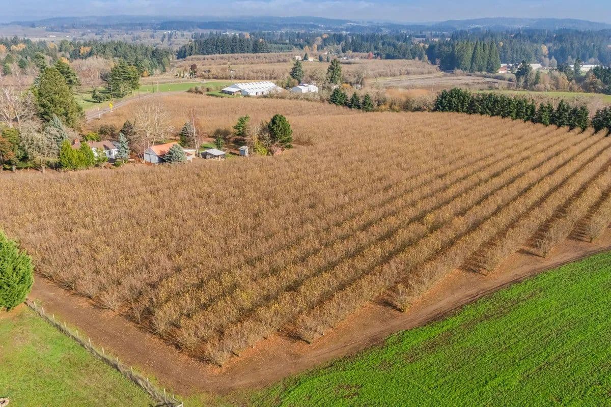 This 16 acre hazelnut farm features 13 acres planted in 2015 to double density Jefferson varietal hazelnuts on 9' x 18' spacing. The orchard is established on highly desirable Helvetia silt loam and Cornelius silt loam soils—both known for their excellent structure, fertility, and suitability for hazelnut production. A 135 GPM irrigation well provides abundant and reliable water supply, supporting consistent growth and long-term productivity. The property also includes a well-maintained 2,100 sq. ft. residence with 2 bedrooms + office and 1 bath. Recent improvements include fresh paint, new flooring, and tasteful tile counters and tile showers. A partial basement provides added storage or workspace, while the front porch and spacious deck create inviting outdoor areas to enjoy the peaceful country views. Supporting the agricultural operation is a useful collection of outbuildings, including a shop, barn, and greenhouse, offering ample space for equipment, storage, and projects. With a productive orchard, reliable irrigation, and a comfortably updated home, this property is a turnkey opportunity for growers or anyone seeking to expand their operation or get started.