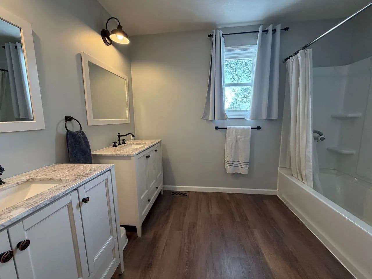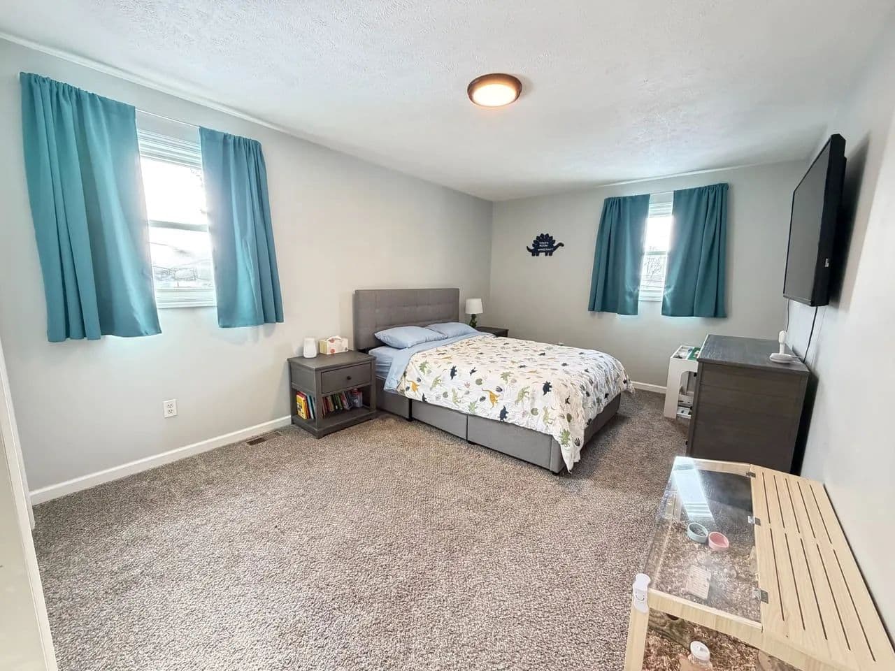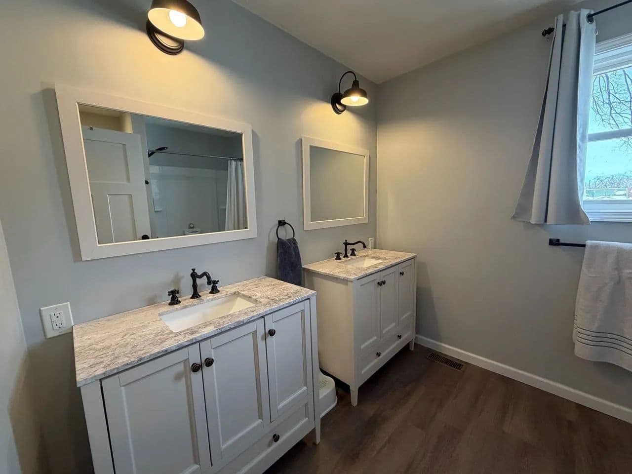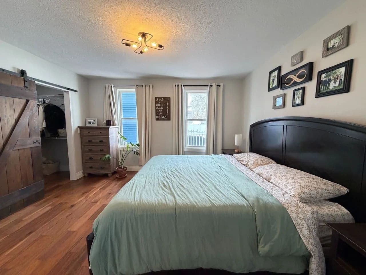 Welcome to this beautifully transformed residence, completely remodeled in 2018 with meticulous attention to detail. During the renovation, most everything was updated like wiring, plumbing, drywall, trim, doors, flooring, and energy-efficient replacement windows throughout. Step onto the inviting covered front porch, the perfect spot for morning coffee and enter into the beautifully vaulted-ceiling great room that flows seamlessly with the kitchen. The spacious island serves as the heart of the home, ideal for entertaining or casual meals. The kitchen boasts tall cabinetry, solid quartz countertops, updated lighting, and a convenient walk-in pantry for ample storage. Pretty laminated wood flooring runs throughout the main living areas, creating warmth and easy maintenance, while carpeting adds comfort to all bedrooms. This thoughtfully designed home offers 4 bedrooms total. 2 on the main floor, including a luxurious primary suite featuring an en-suite bathroom with a tiled walk-in shower, double vanity, and a walk-in closet. Two additional bedrooms upstairs that share a full bathroom with dual single vanities and tub shower unit. A private laundry room on main floor (keeping everyday clutter out of sight) and a partially secluded back porch accessed from the main level. Your semiprivate oasis for relaxing evenings. The attached garage connects at the rear and opens directly into the fully fenced backyard. Enjoy the 2-car width asphalt driveway installed just last year, plus a handy storage shed that conveys with the property. Furnaces for upstairs and downstairs creating zone-controlled temperature. Main floor furnace was replaced last year This home combines modern upgrades, functional layout, and charming outdoor spaces - ready for you to move in and make it your own. Don't miss this rare find in town with its great location, close to the park, walking trail and schools.