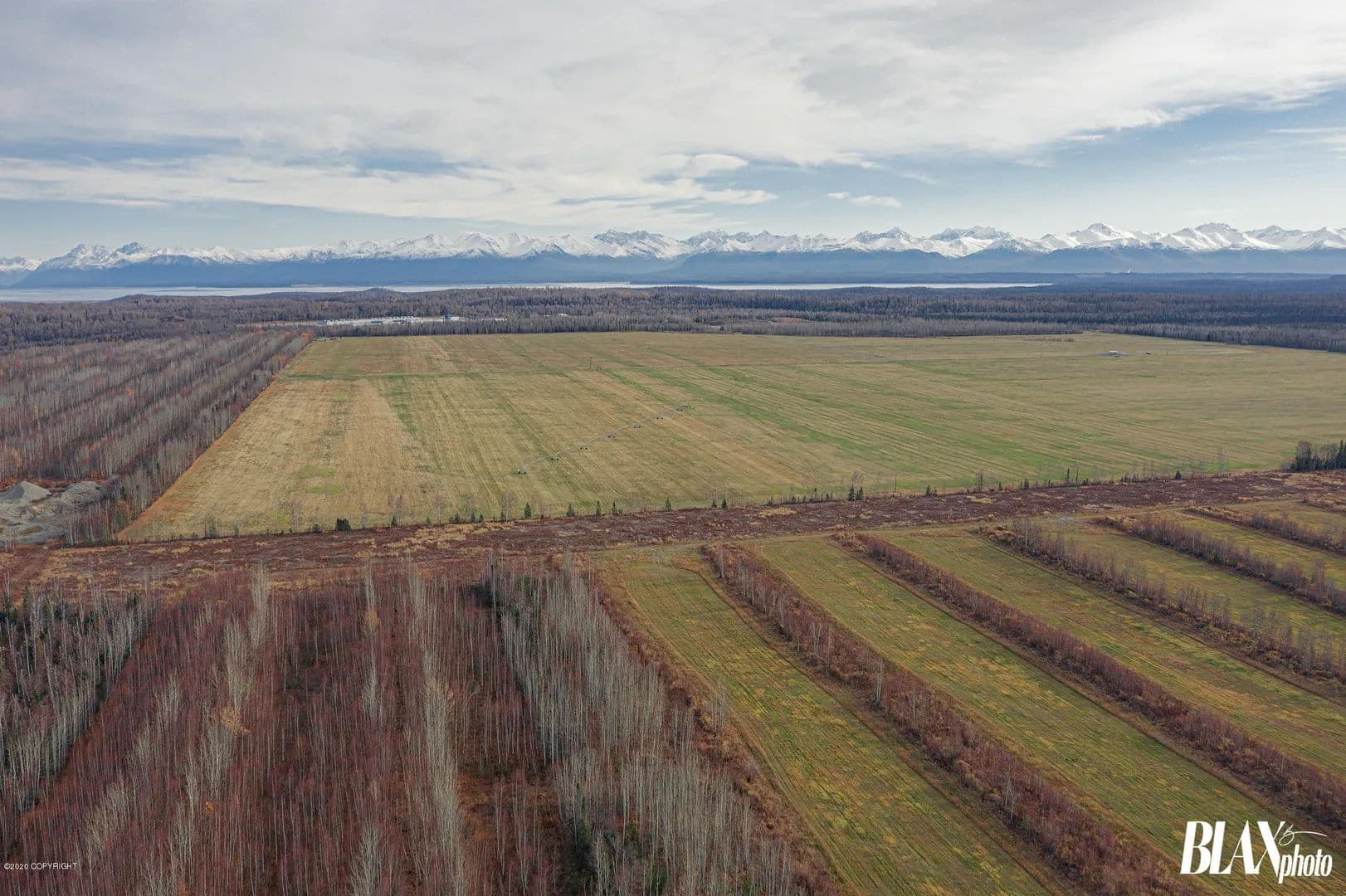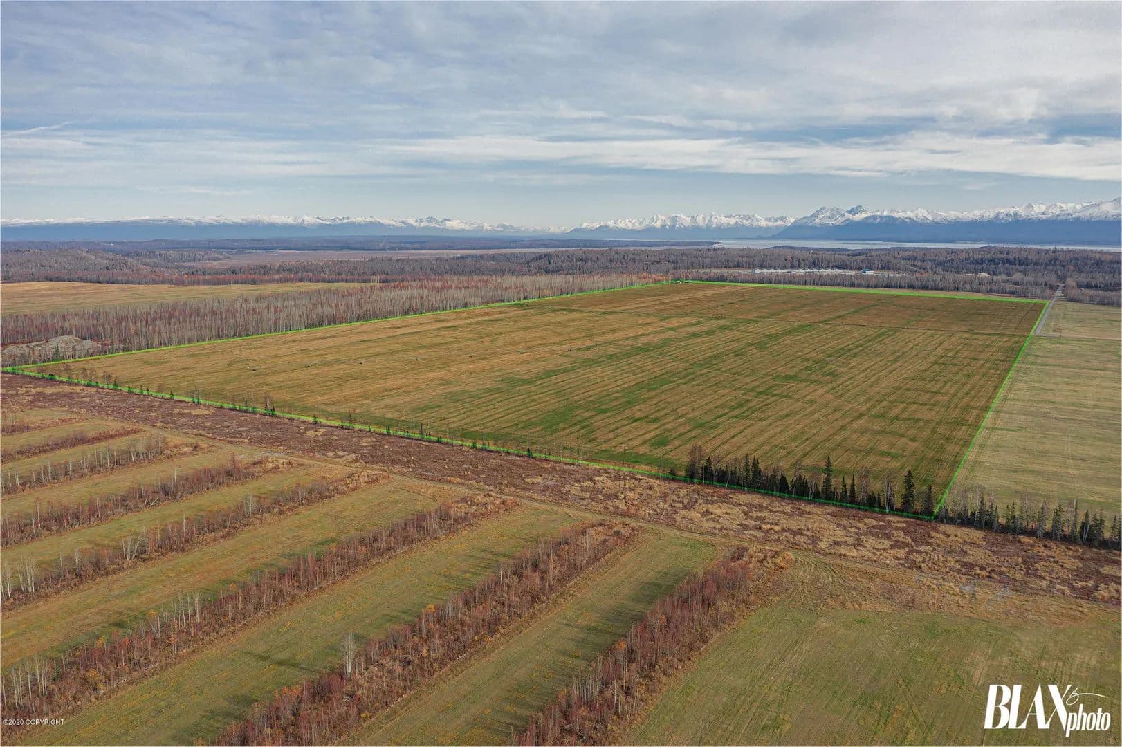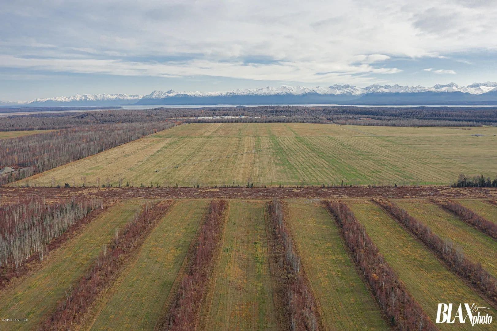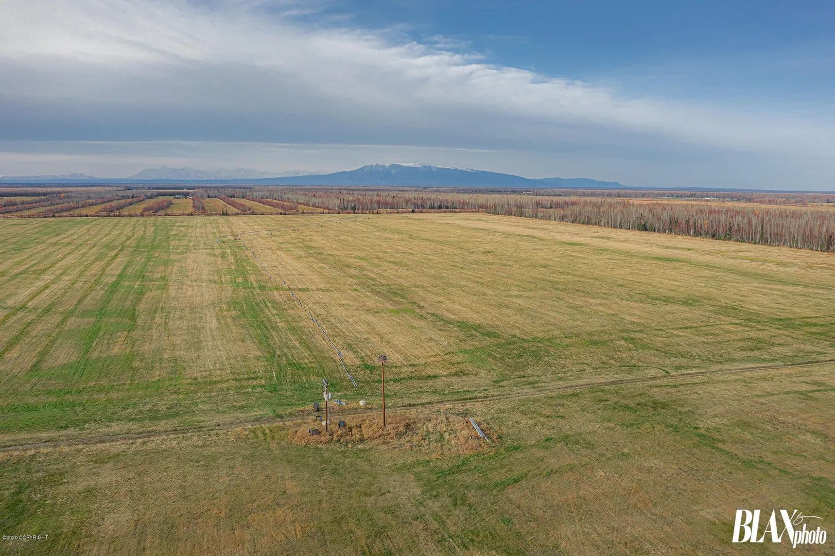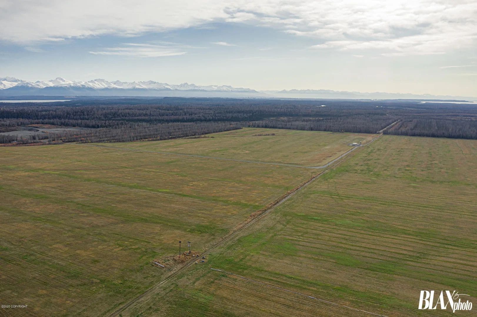 320 acres of beautiful Alaskan Farm land with potential for many types of crops or agricultural uses. Currently being ran as a producing hay farm. The land has been cleared of all timber and has a succulent layer of top grass and rich soil. Call of text listing licensee for more information