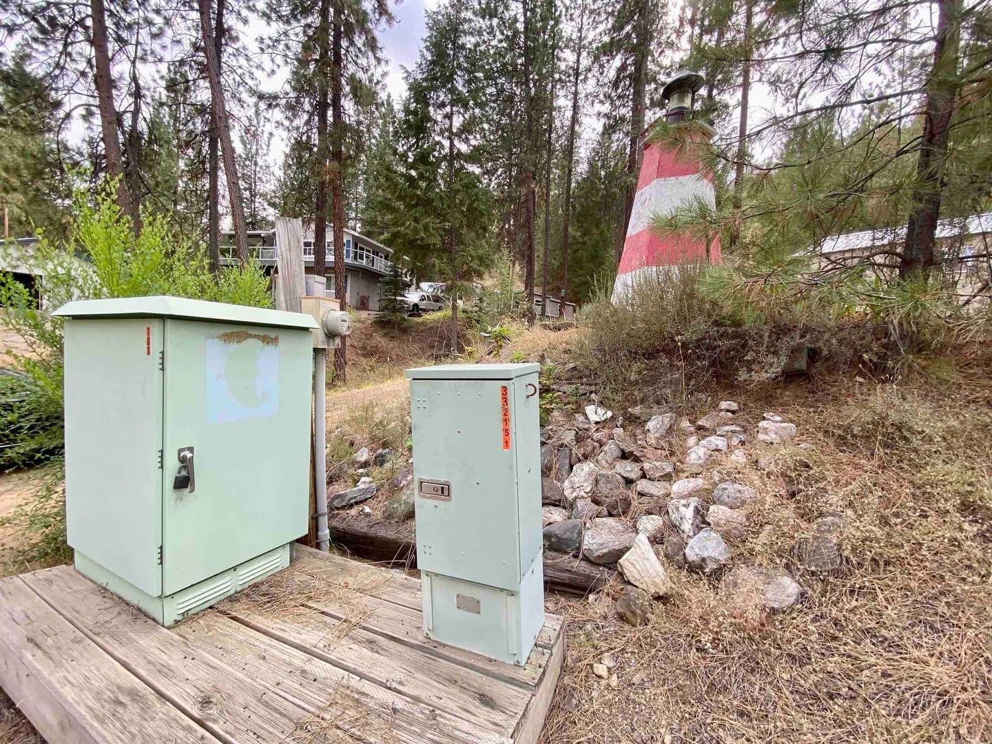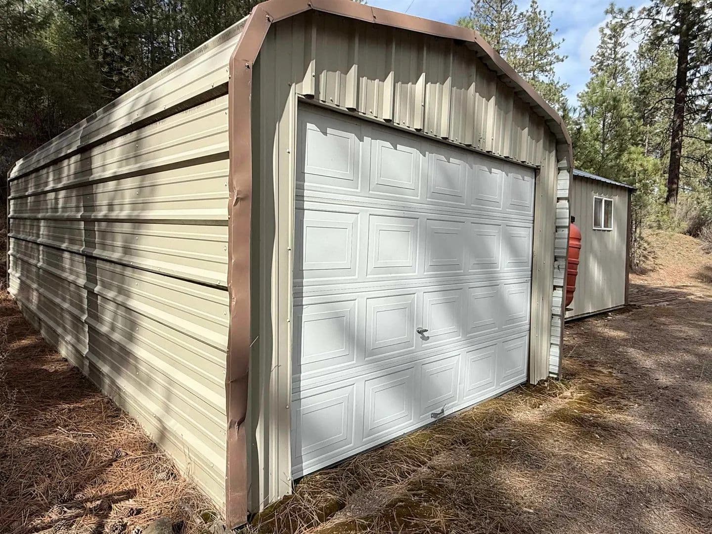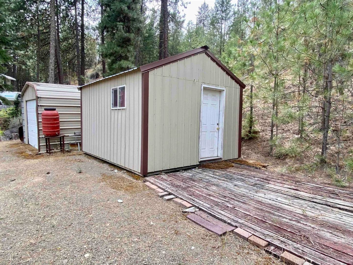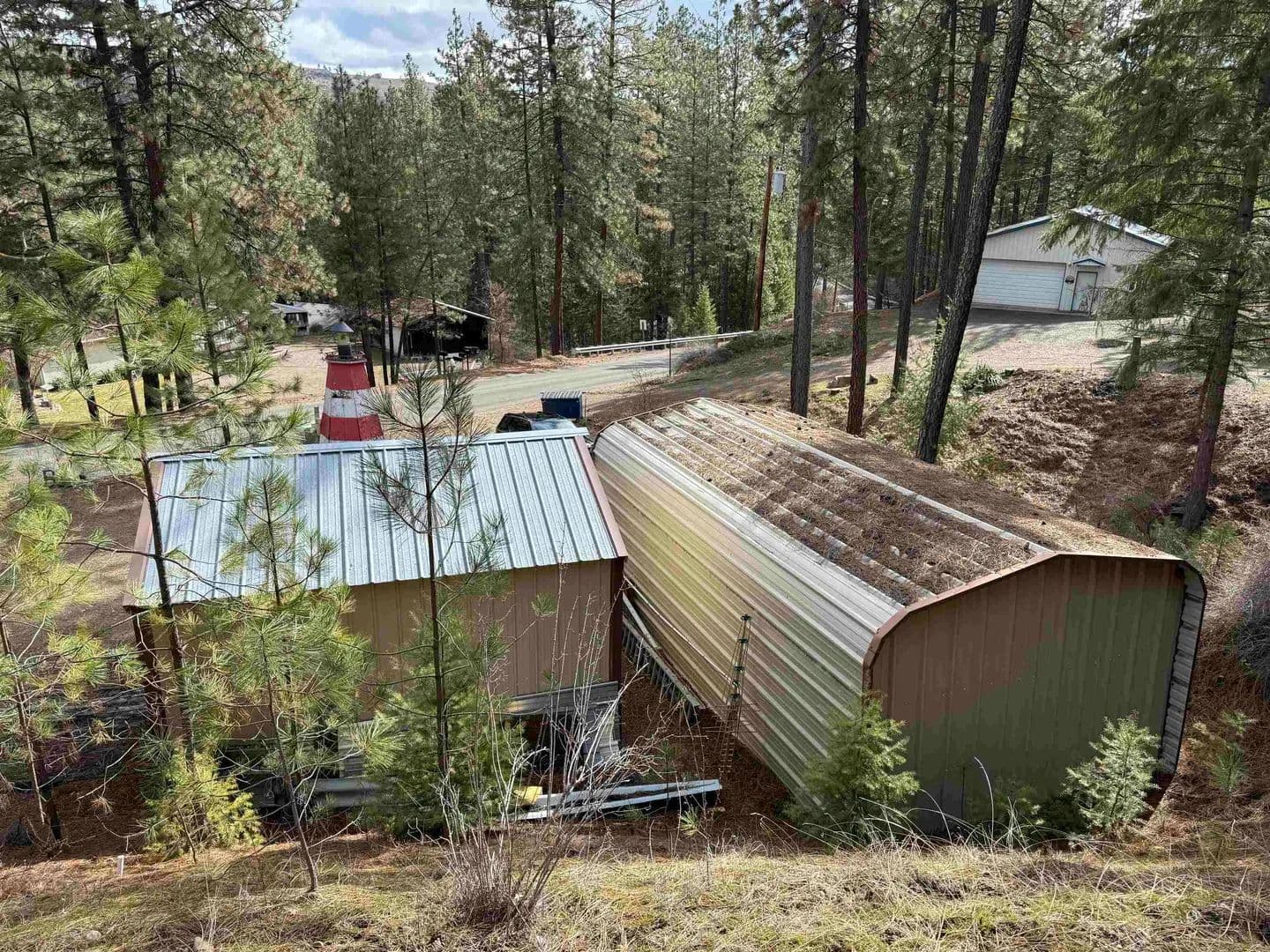 Lake life can be yours just 2 minutes from the Lake Roosevelt Spokane Arm Porcupine Bay boat launch, beach, campground, picnic area, and swimming area, this property offers unparalleled convenience for water enthusiasts. A walkable trail right across the street leads to a quiet beach, perfect for relaxation and recreation. The property features a 25'x12' metal garage with a 9'6"x7' roll-up door, ideal for storing your boat. Additionally, a 15x12 storage shed, currently set up as a bunkhouse, provides a sleeping niche or extra space for storage. This recreation lot has been used for boat and RV parking with a 30' RV getting into place and able to turn around on the level portion. Inland power meter at the driveway, talk to Inland about options for power. Paved roads all the way. Use it for your saved camping spot that you always know is there for you.