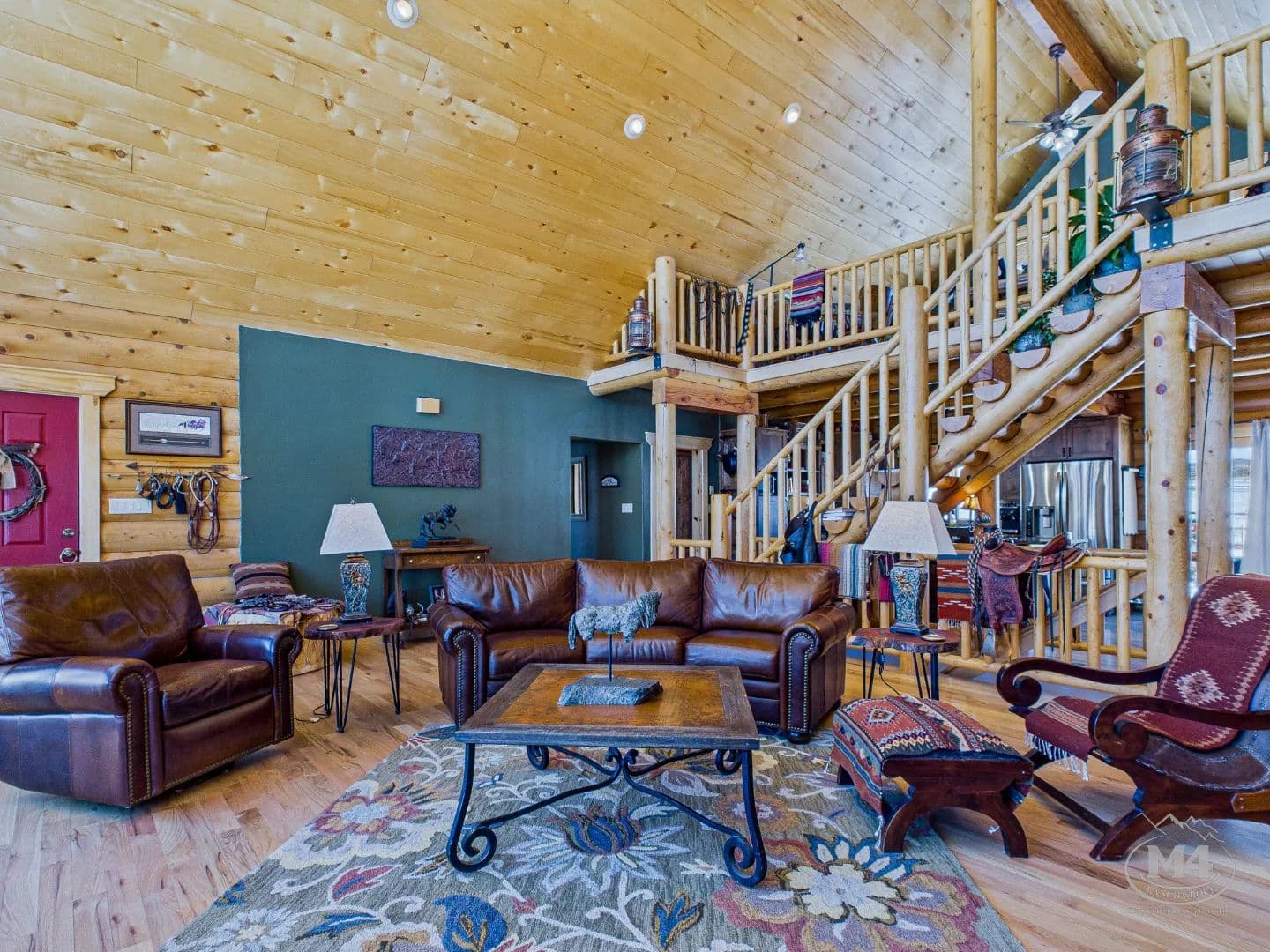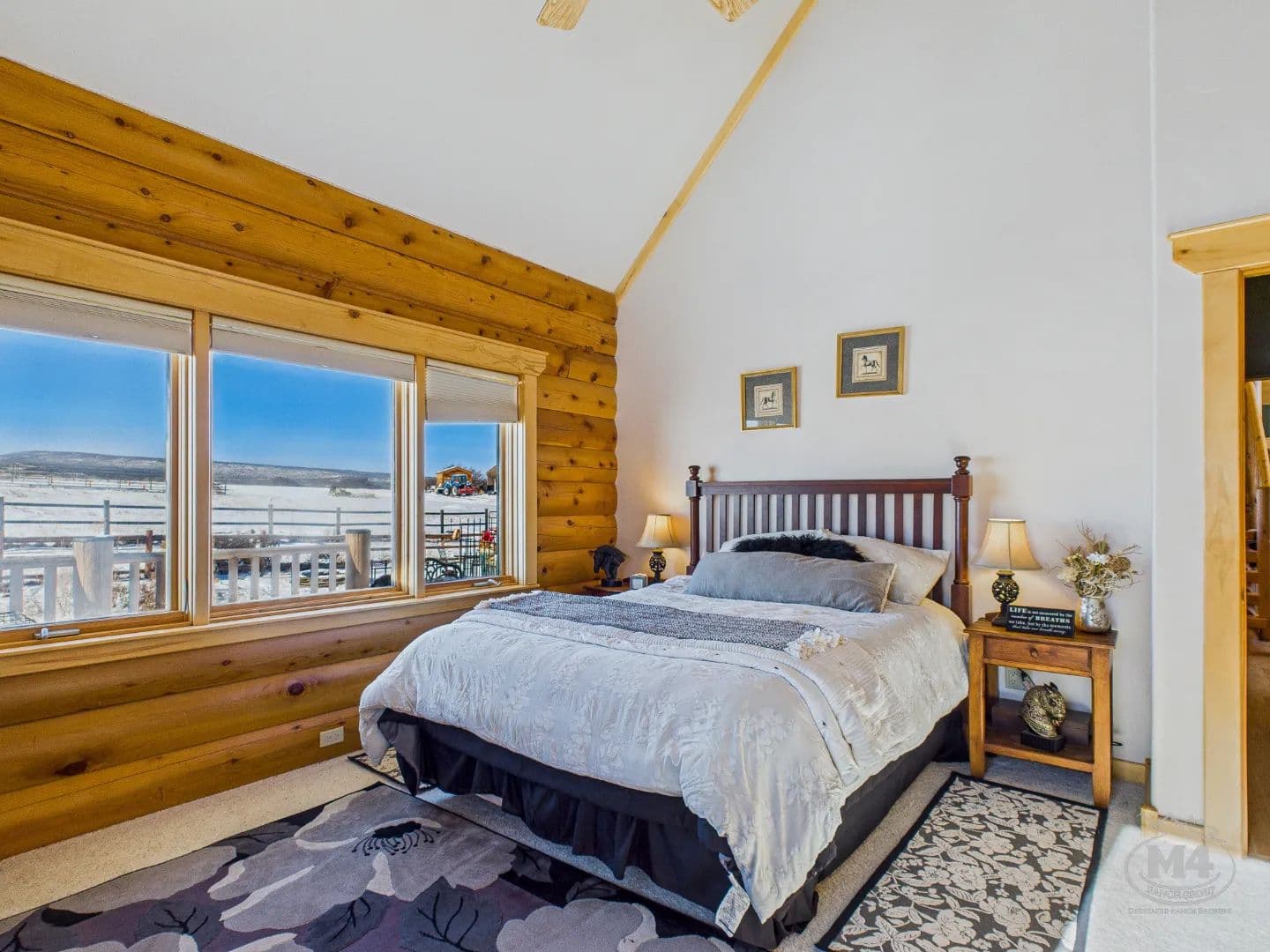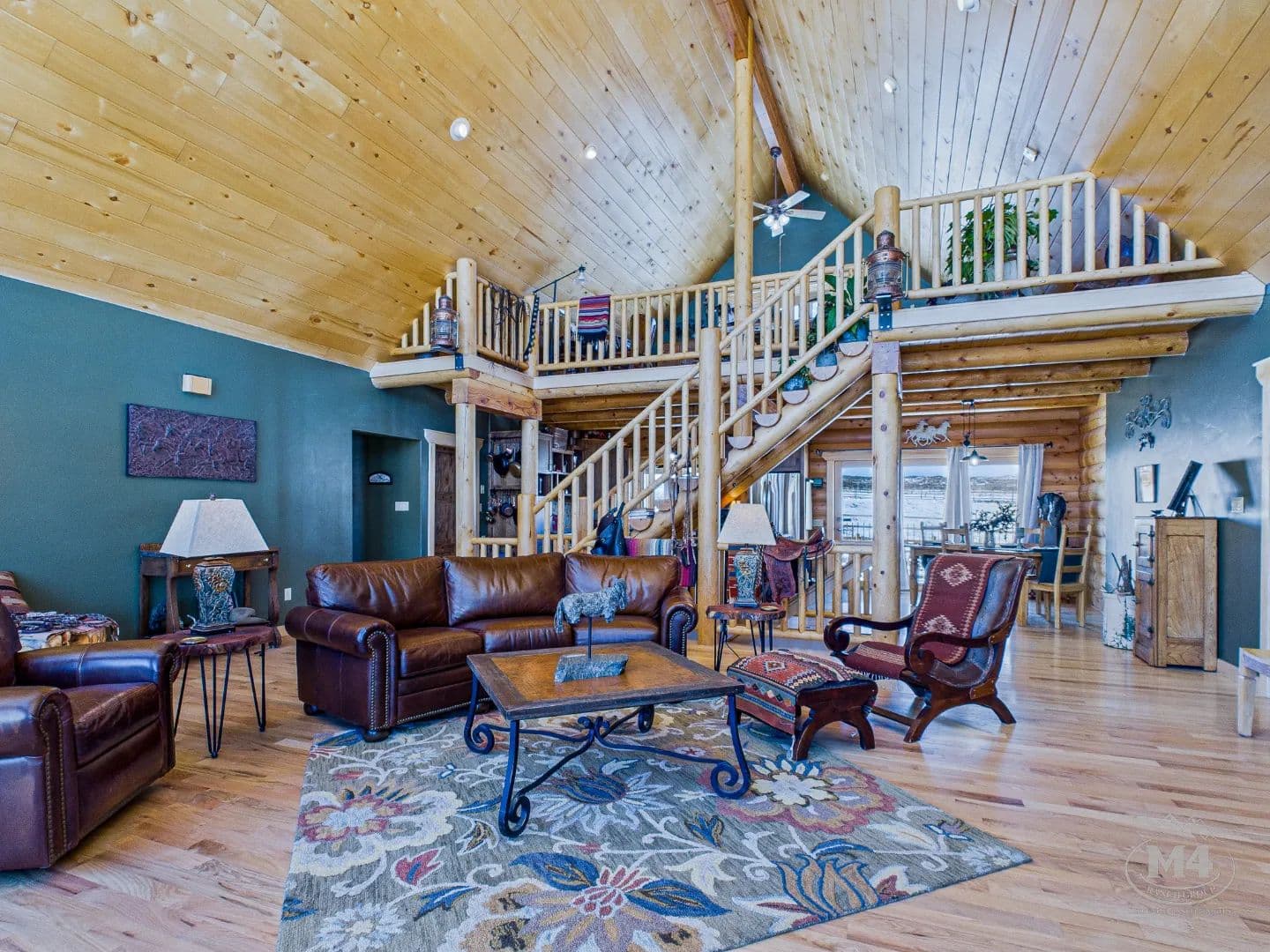 At the heart of Quietude Ranch is a beautifully maintained 5-bedroom, 3-bath log home designed for year-round comfort and lodge-style living. The home features in-floor radiant heat throughout, paired with a pellet stove in the living room that adds warmth and classic mountain ambiance.