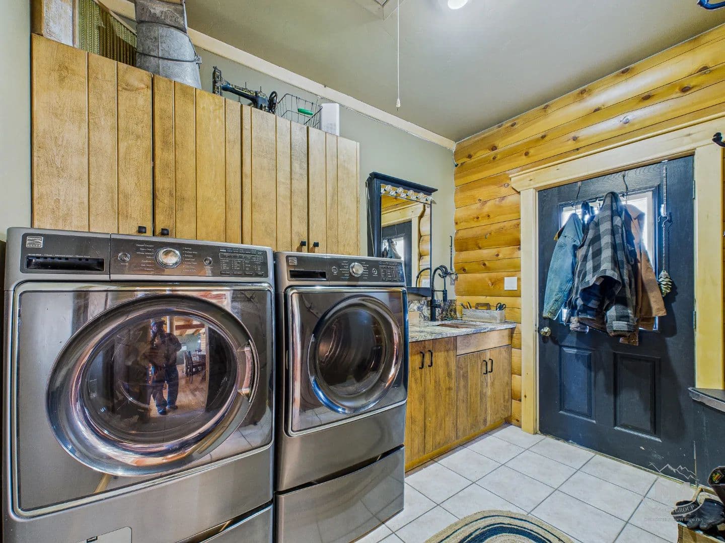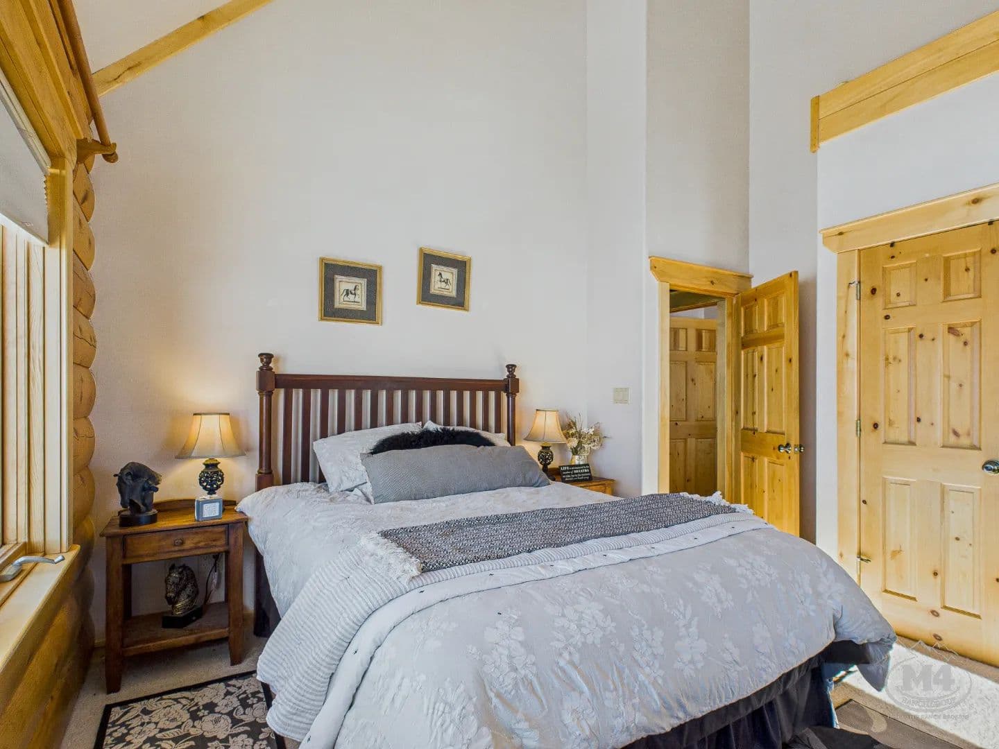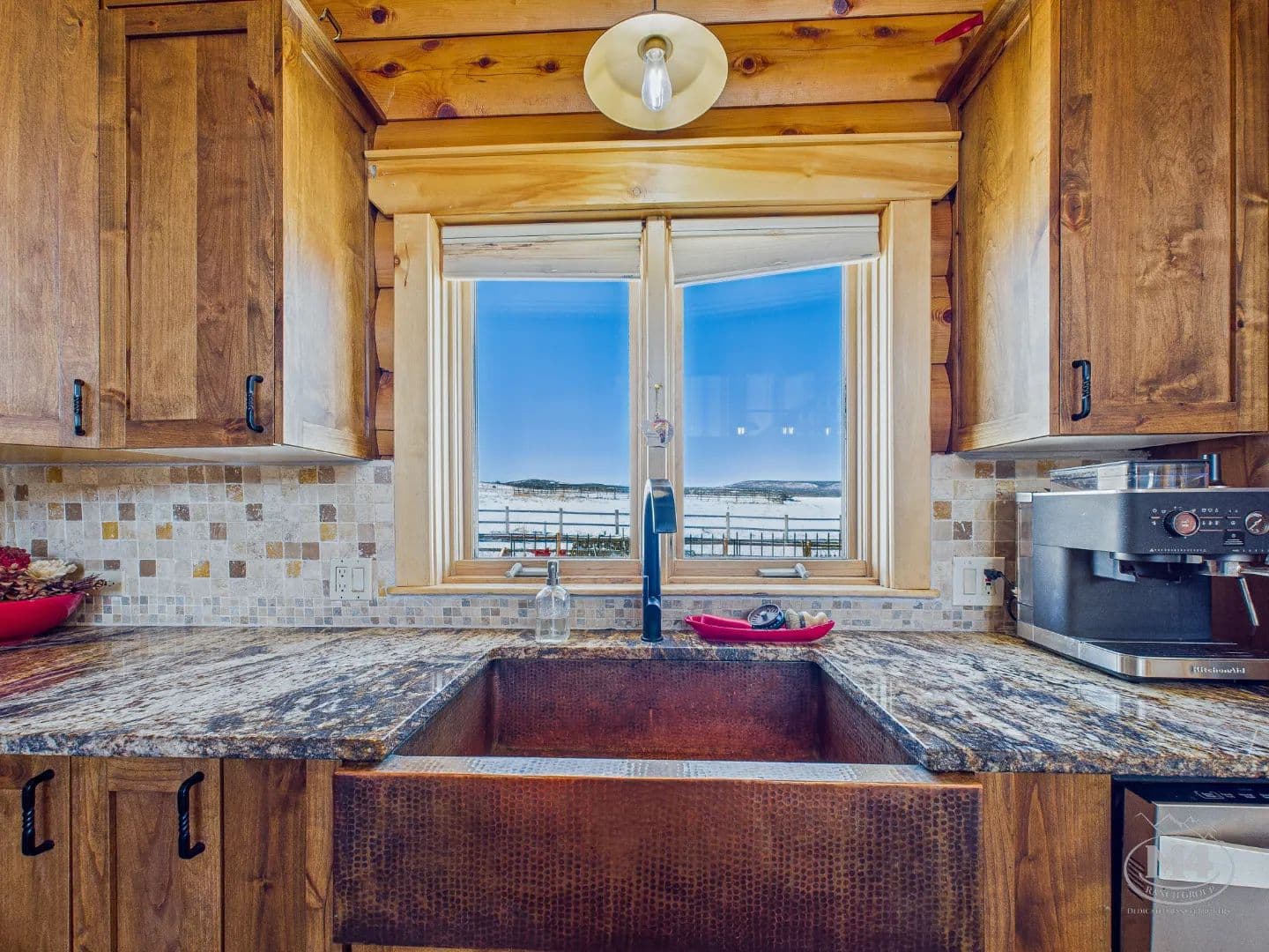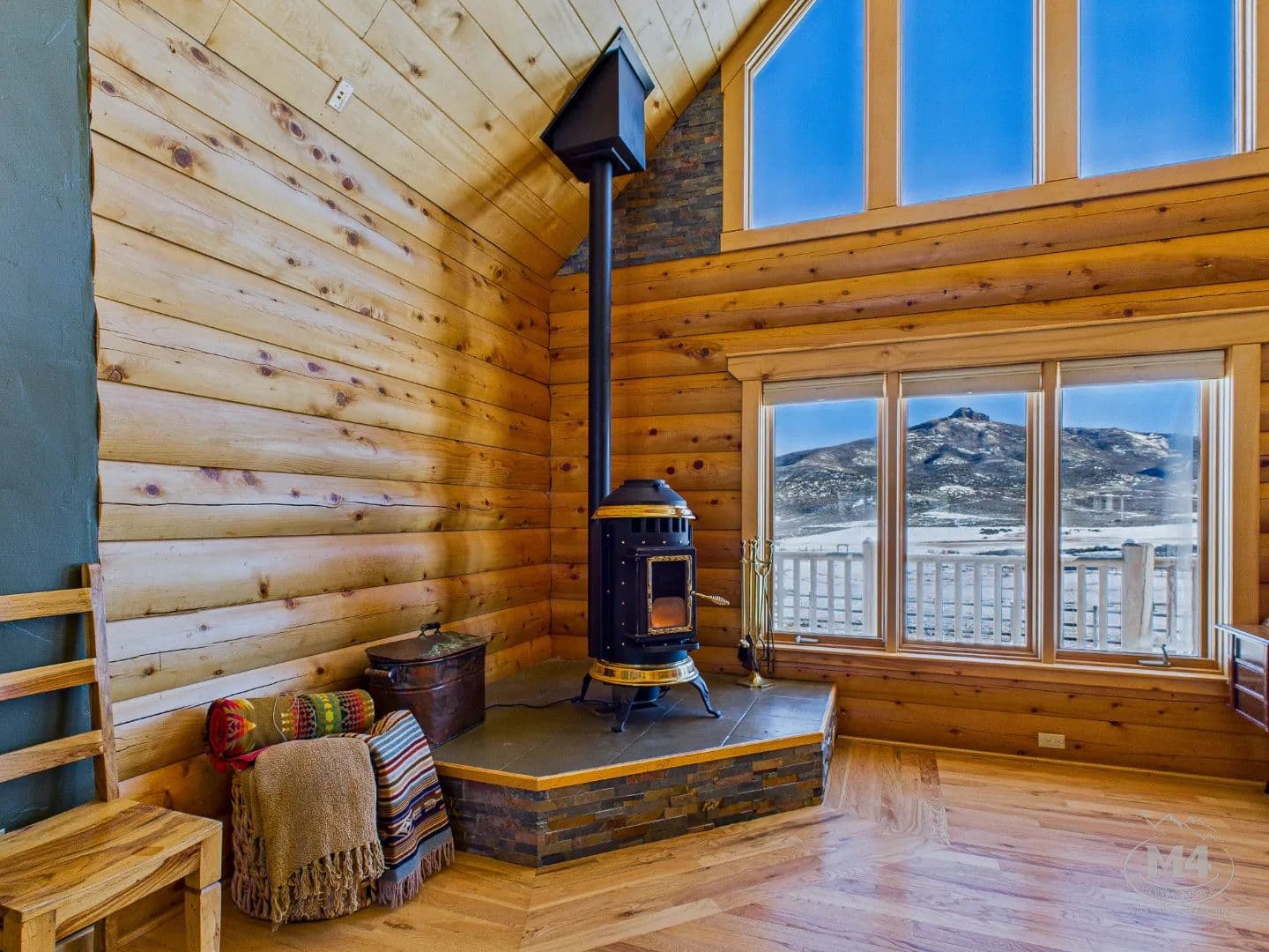 At the heart of Quietude Ranch is a beautifully maintained 5-bedroom, 3-bath log home designed for year-round comfort and lodge-style living. The home features in-floor radiant heat throughout, paired with a pellet stove in the living room that adds warmth and classic mountain ambiance.