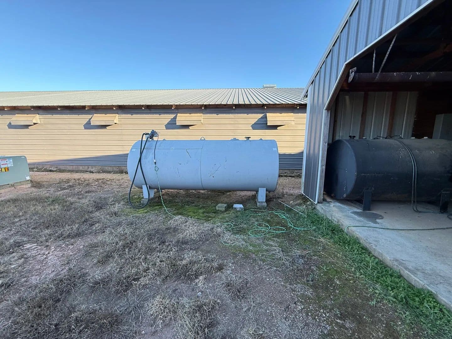 Houses are serviced by propane heat, with water sourced from on-site wells, city water backup, and a 14,000-gallon above-ground water storage tank—providing an excellent water infrastructure setup.