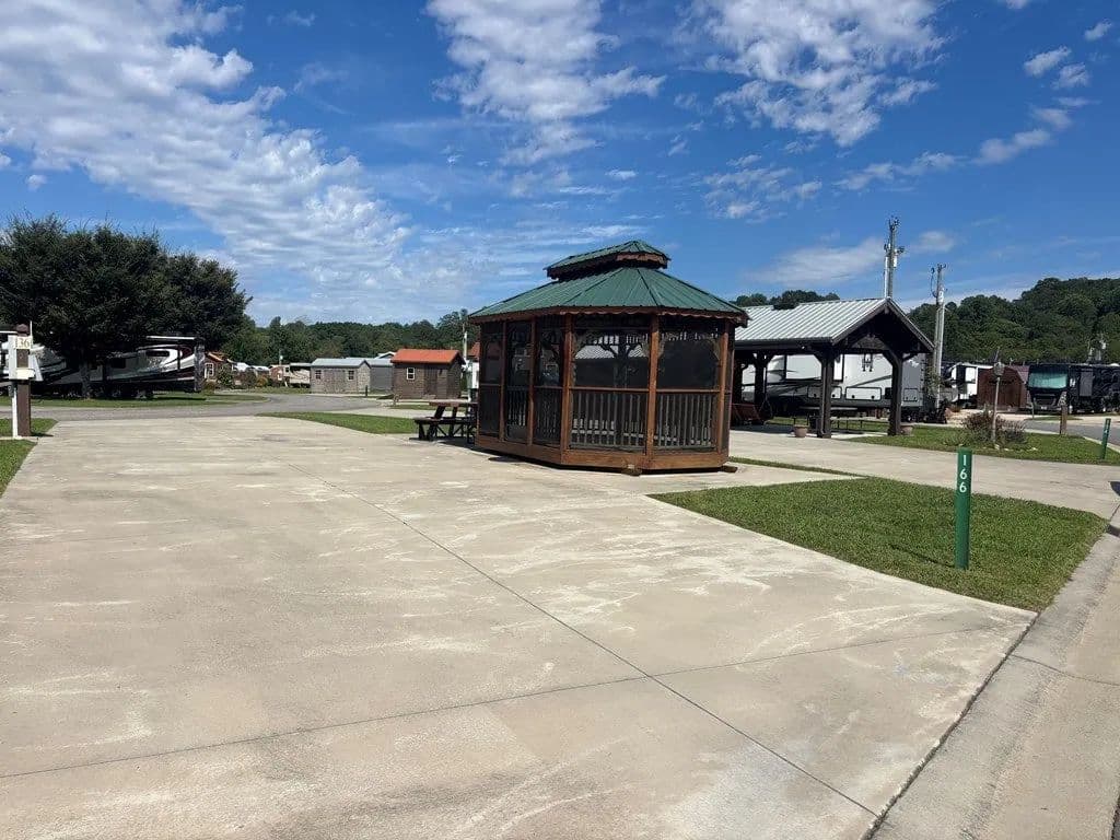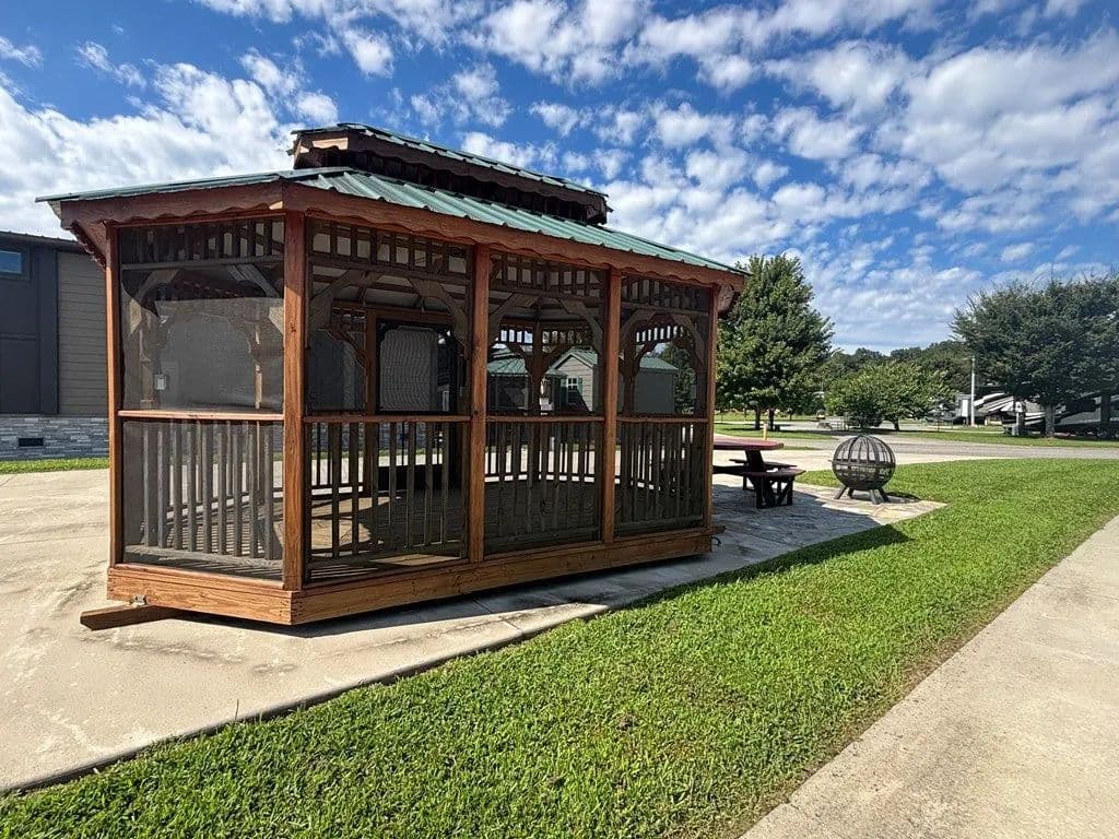 Discover your perfect getaway in this charming RV community! This well-appointed lot features a beautifully designed rock pad, inviting guests to enjoy al fresco dining or relax under the stars at the picnic table, thoughtfully positioned for optimal outdoor views and endless activities. The highlight of this lot is the lovely gazebo, complete with screens to shield you from the elements, allowing you to savor the beauty of nature in comfort. Whether hosting friends or enjoying a peaceful retreat, this space is ideal for creating lasting memories. Embrace the RV lifestyle and the sense of community in this inviting environment! This pull-through lot is perfect for those seeking easy parking for a fifth-wheel or the largest motor coach. Nestled within 100 acres of stunning landscapes, the vibrant community offers a perfect blend of comfort and recreation, with convenient access to all amenities. This exceptional property grants you access to a wide array of amenities designed for leisure and enjoyment. Your monthly HOA fee includes access to a sparkling pool, an inviting hot tub, and a luxurious spa featuring a massage room to unwind after a long day. Stay fit in the state-of-the-art fitness center or challenge friends to a game of pool or darts in the entertainment area. For pet lovers, a dedicated dog park provides a safe space for your furry friends to play and socialize. Additional conveniences include a bathhouse and laundry facility, ensuring all your needs are met within this welcoming community. Experience the perfect blend of relaxation and recreation in this extraordinary setting, where every day feels like a getaway!