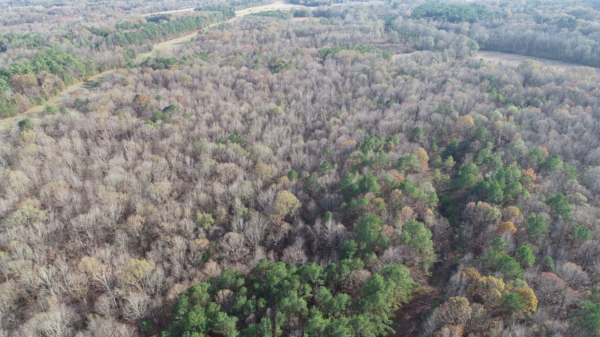 The land is fully wooded, providing a peaceful natural setting and the ideal location for secluded country living. A good road system travels through the center of the property, giving easy access to every acre. This tract also has great potential for deer and turkey hunting. With gently rolling terrain, the land is easy to walk and visually appealing, offering several potential build sites. Utilities are close by, allowing quick power, water, and fiber internet connections.