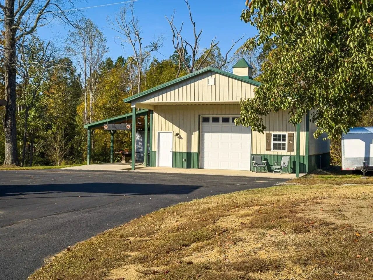 30'x36' Pole Barn: Three deep bays for storing tractors, implements, ATVs, and supplies. Features concrete floors, full electrical service, and matching build quality to the workshop.