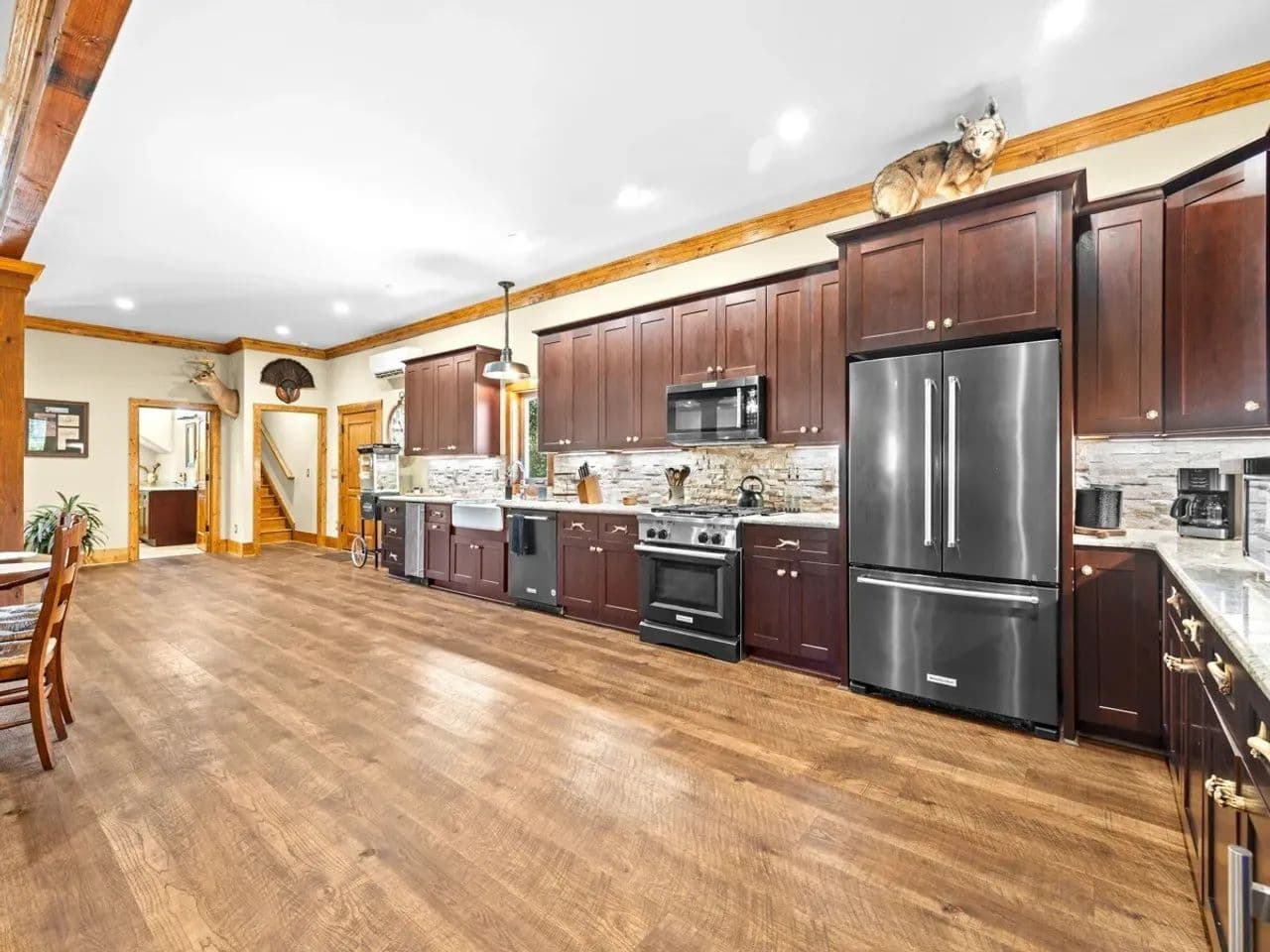 At the heart of The Circle-L South Ranch is its custom-built lodge, crafted for intimate gatherings, easy entertaining, and comfortable hunting camps. With an open-concept lower level and guest quarters upstairs, it's ideal for special occasions or group stays. Key features include:
