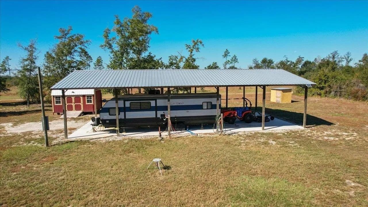 Welcome to your private oasis! This 2.6-acre property offers endless possibilities and is an ideal site for building your dream home. With a large, brand new pole barn (30x60) already set up for RV parking, plus an additional storage shed (10x16), you'll have all the space you need for your recreational vehicles and outdoor gear. This property is equipped with a well (187 ft deep), power, and septic system already installed, making it a hassle-free choice for construction. Enjoy the serene surroundings just minutes from the Chipola River, perfect for fishing, boating, and enjoying nature. Adventure seekers will love the proximity to the Apalachicola River, only 20 minutes away, with 8 boat landings within a 30-minute drive. For kayaking enthusiasts, Ecofina Creek is just a short drive away, known for its stunning blue spring waters. Plus, you're only 40 minutes from Florida Caverns State Park, offering breathtaking caves and outdoor activities. Conveniently located just 1 hour and 20 minutes from Tallahassee and 1 hour and 10 minutes from the beautiful Panama City Beach, this property provides a perfect blend of tranquility and accessibility. Don't miss this opportunity to own a slice of paradise!.