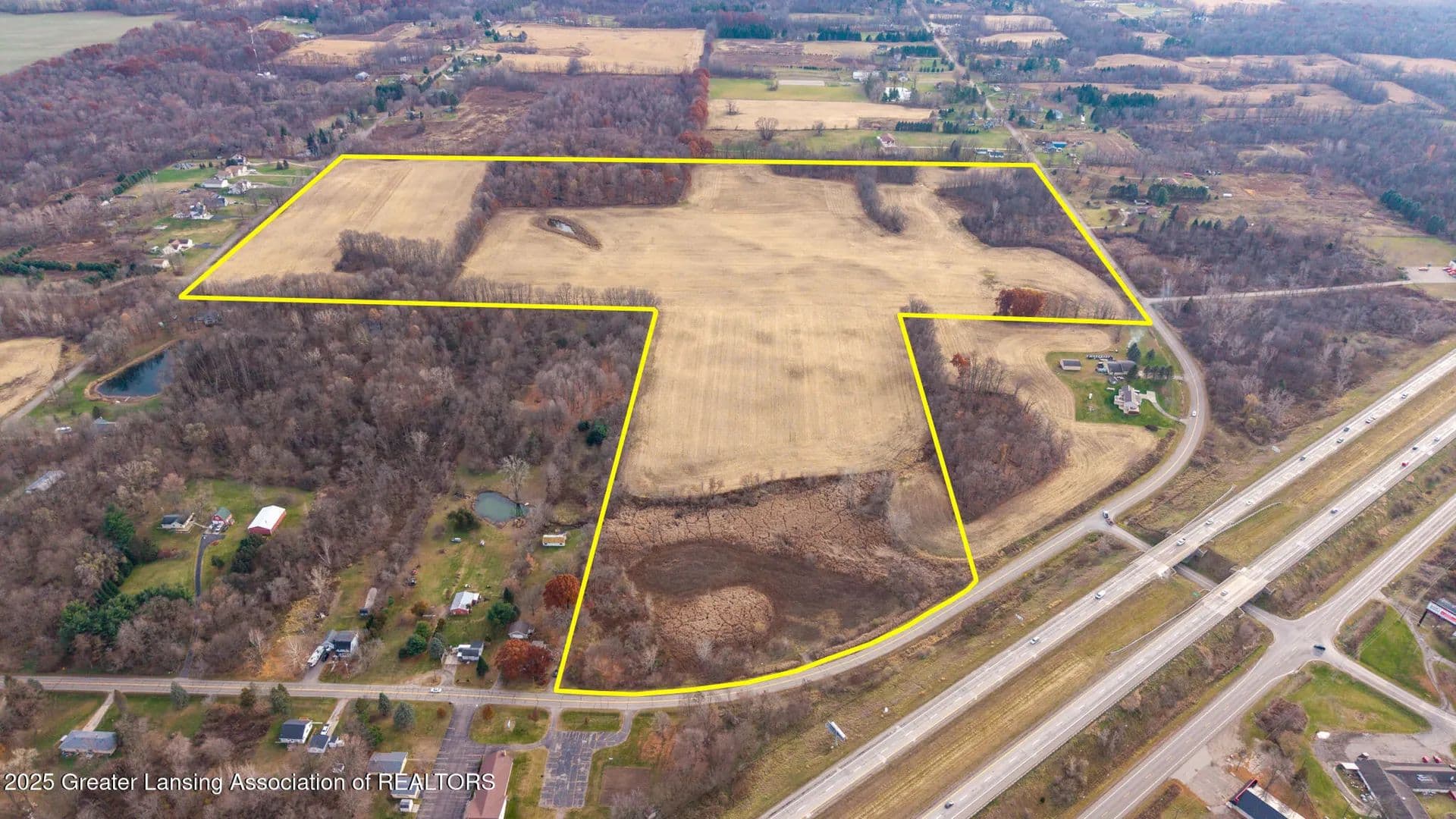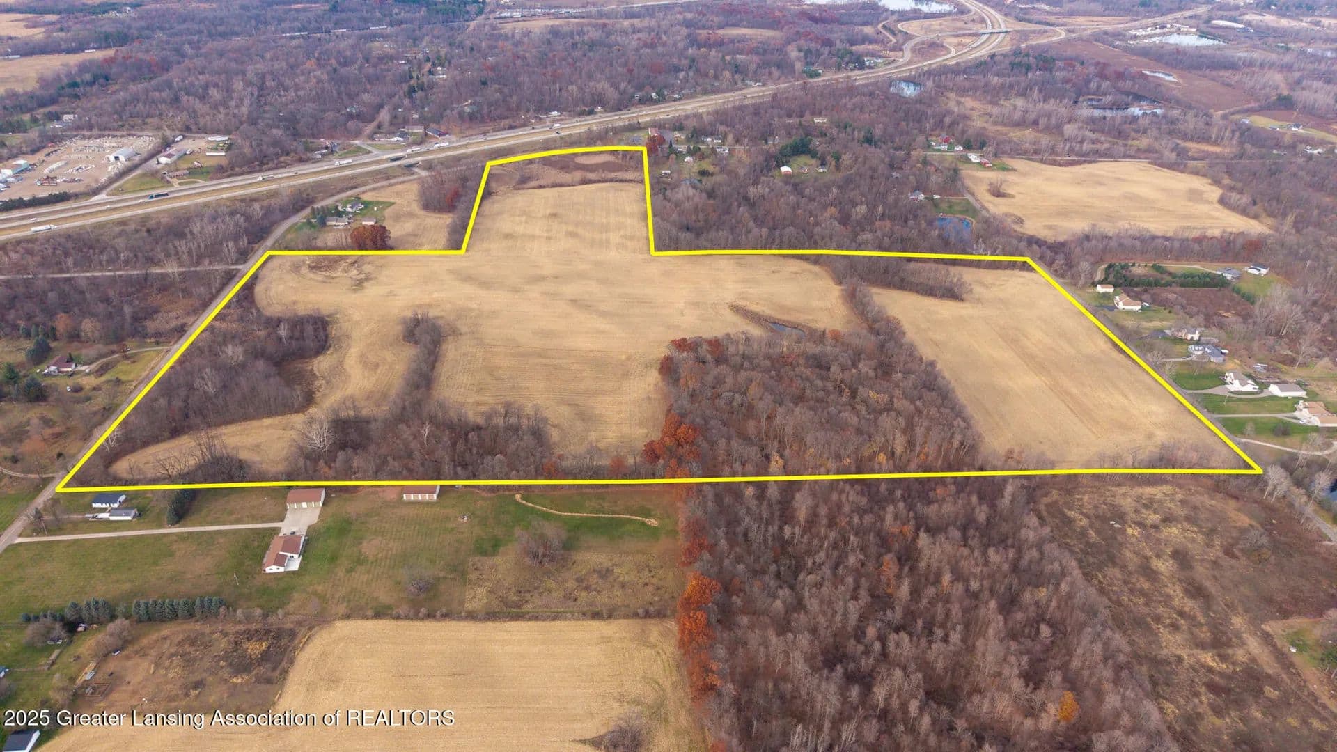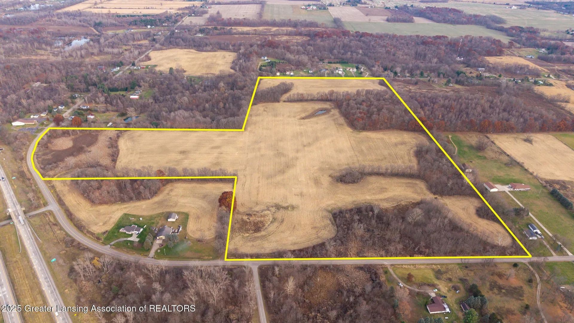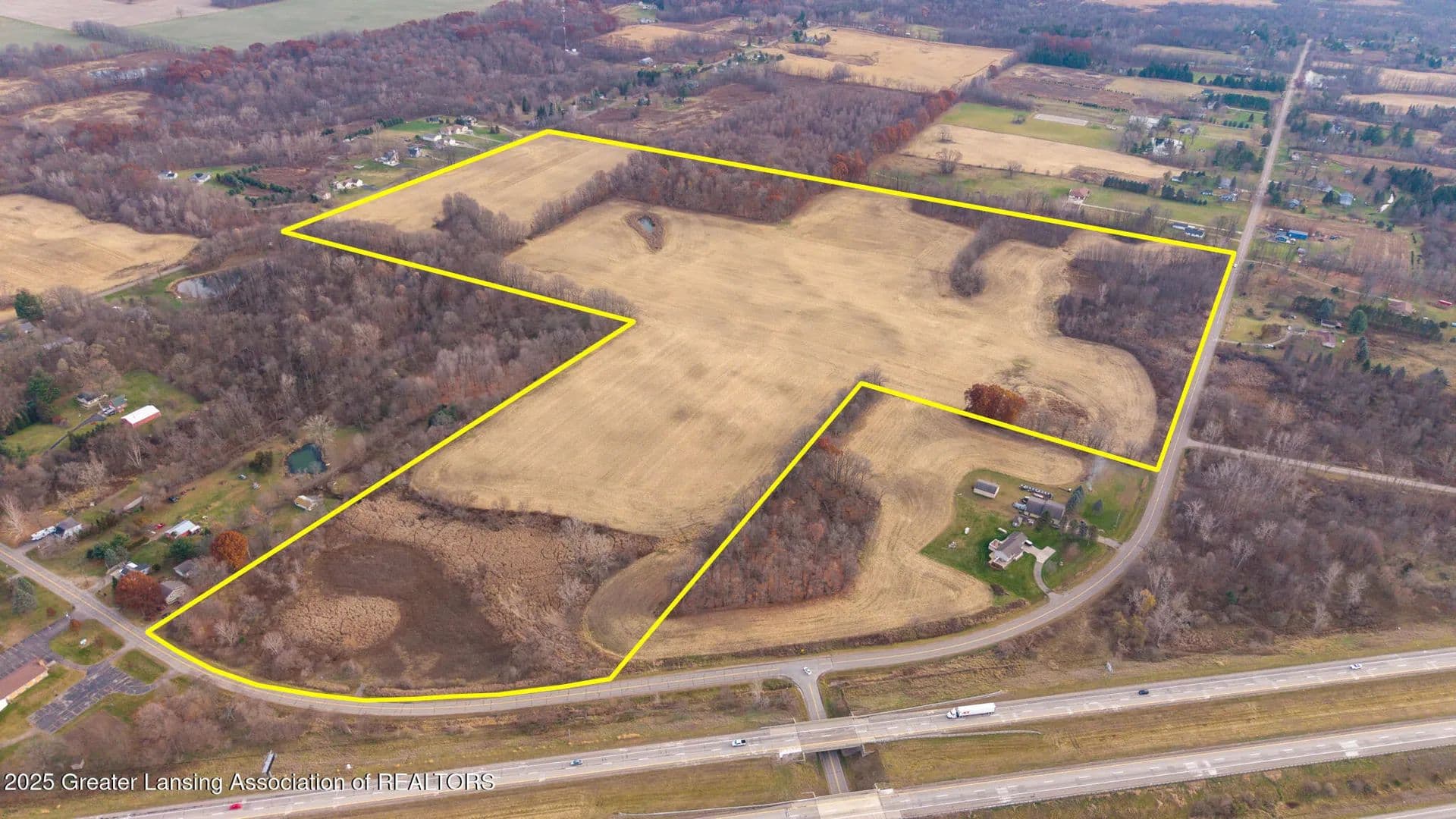 Discover 97.54 acres of versatile vacant land along Windsor Hwy in Dimondale, spanning two parcels (080-017-300-044-00 and 080-017-300-091-00). This exceptional property offers a mix of 25± wooded acres, 70± acres of farmland, and rolling topography, making it ideal for recreation, farming, or future development. Enjoy great hunting and excellent access with approximately 3,400 feet of combined road frontage on Nixon Road, Windsor Hwy, and Gunnell Road. With its extensive frontage, there is ample opportunity to divide the property into multiple sites. Please note: The existing drain assessment will run with the property; sellers will not pay off the drain assessment at closing