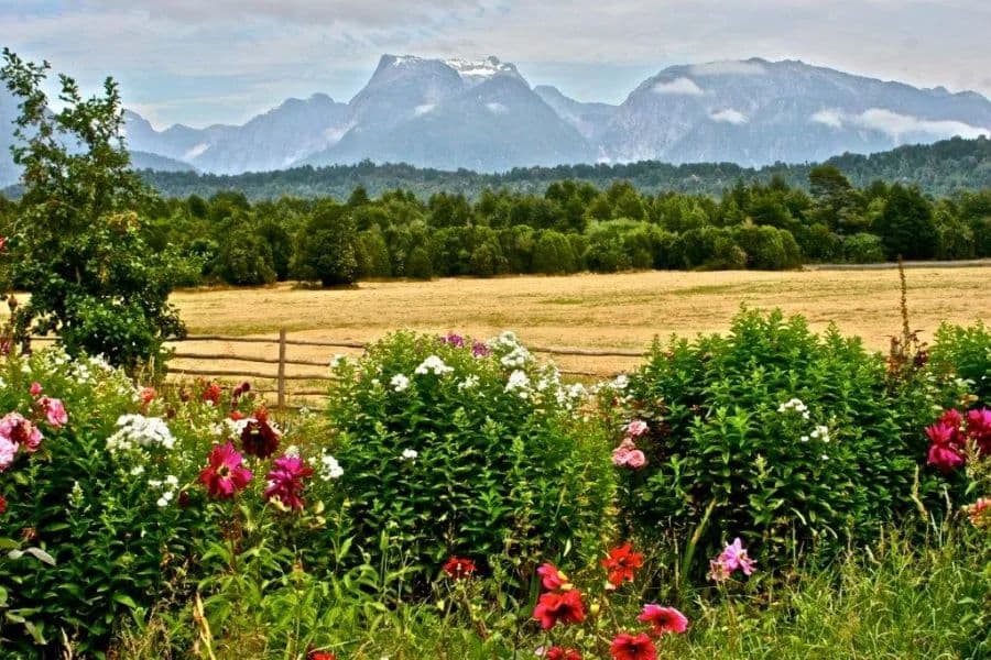 Fundo Las Rosas received its name due to all the roses and flowers on the property. Watching cattle graze across pastures with a backdrop of snowcapped peaks in the background and enormous rose and flower bushes in the foreground is almost surreal. The property is made of 2 parcels totaling 209 hectares (516 acres) along the Carretera Austral in the Patagonia Lakes Region of Chile.