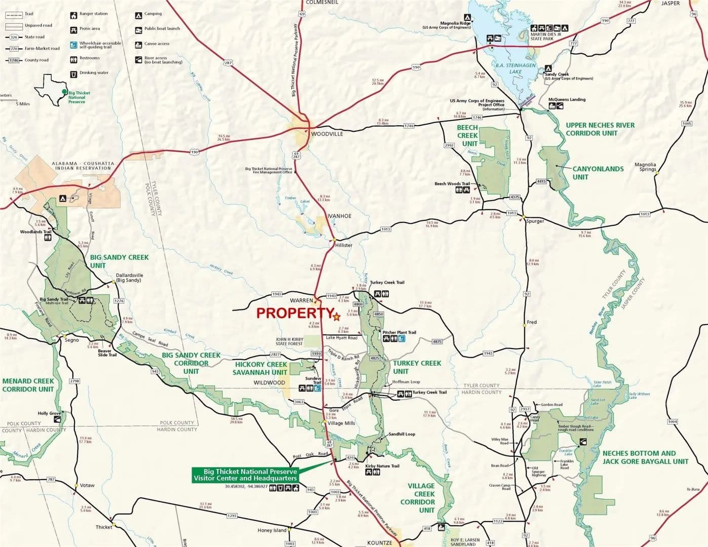 Ag Exempt & unrestricted. Beautiful & secluded. Untouched & pristine Piney Woods. Partially fenced 25+ acres located 2 miles SW of Warren by US-69/Hwy 287 on County Road 4760. Surrounded by homes on large Piney Woods acreage tracts. Electricity & water available on CR 4760. No Survey Available. Not located within any city limits. Perfect place for your private retreat on your own little piece of the original Piney Woods of Southeast Texas. Hunt & trap white-tailed deer, feral hogs, squirrels, rabbits, and waterfowl or enjoy canoeing/kayaking while exploring its lakes and bayous 10 Miles SE of the property in the Big Thicket Preserve (see video & trail map). Warren schools are less than 2 miles to the North on CR 3290. 40 Miles to Beaumont for shopping & entertainment, 50 miles to Lake Livingston for recreation & 90 miles to the Houston Metropolitan Area. Appointment required to walk property.