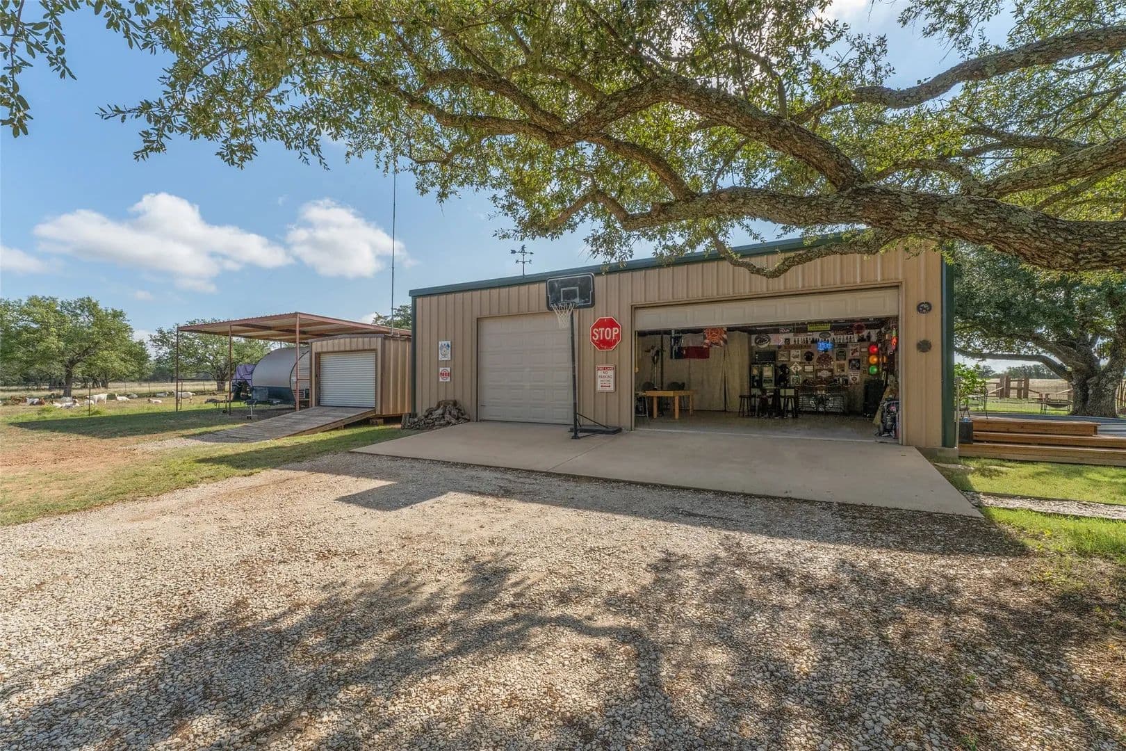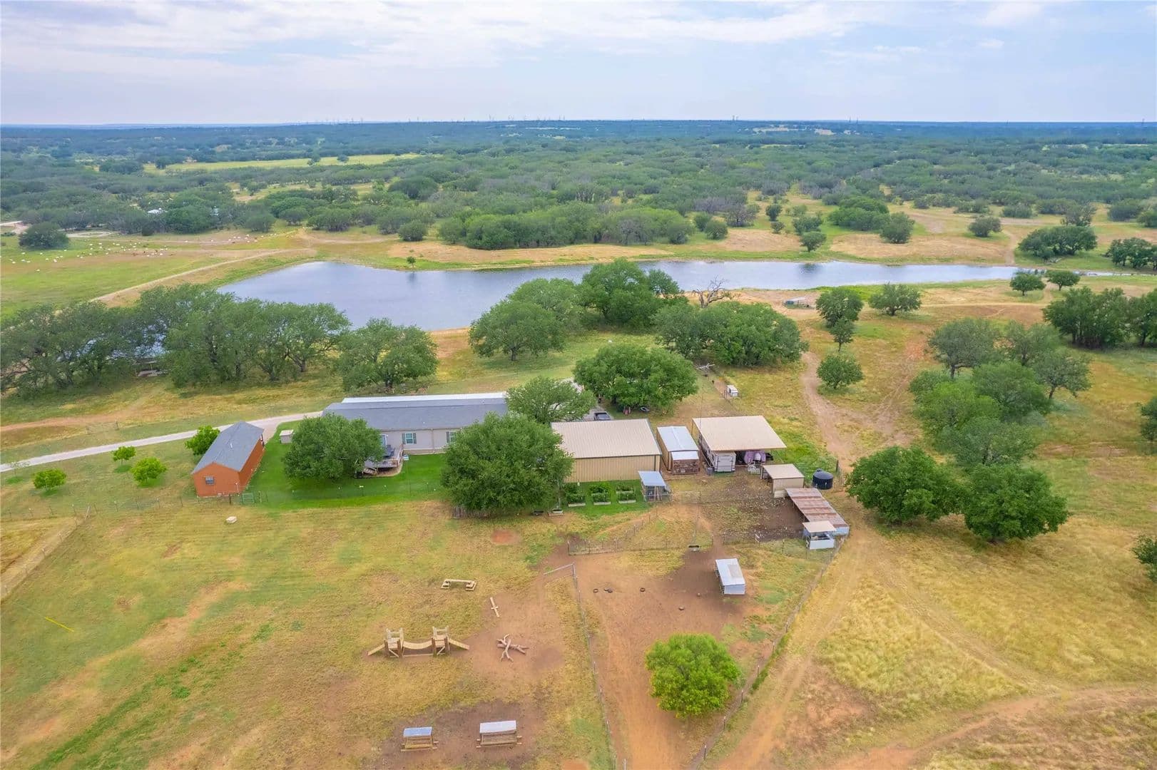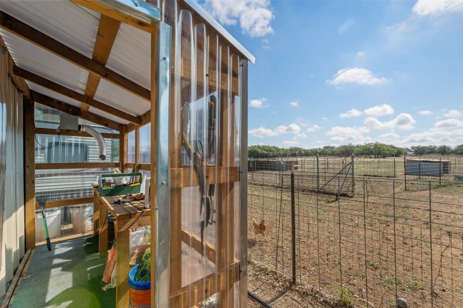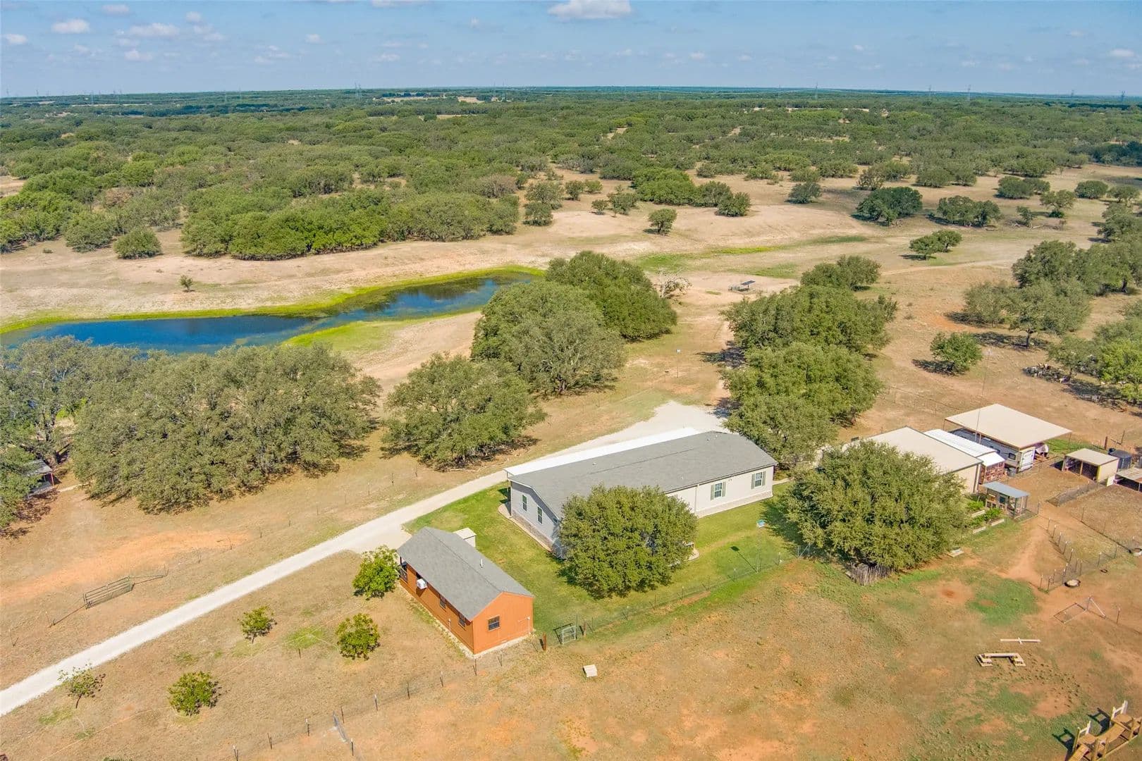 This is an extraordinary piece of hunting property with an abundance of game. Central Texas deer hunting at its best located on the Brown & Mills County Lines. The oak trees are thick with good grass for the livestock as well. Perimeter fences built for goats and all in tip top shape. Two strong water wells, one with solar panels, provide for domestic use and supplement the livestock. The hay barn is in the pasture, it’s a corrugated classic. You can’t hunt all day so throw open the barn doors and work if you have to or relax with friends. Plenty of shade under the large oaks as you dip your toes in the hillbilly hot tub. Enough covered parking for toys, tools and tractors. Everything you need is here, chicken coop, garden area, greenhouse, goat pens, dog kennel, bunkhouse for your rowdy friends that won’t go home and most of all peace and quiet. If you have to check in, there is fiber optic internet but don’t tell the office. You’ll love this one, call us and let’s take a ride.