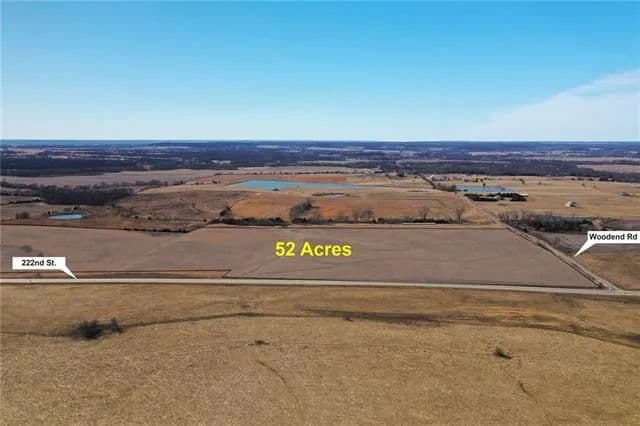 Opportunities are endless for this 52 acre tract of ground. Located at the I-70 exit and County Rd 1 just South of Tonganoxie. This property has I-70 frontage as well as 222nd St. ( County Rd # 1 ) and Woodend Rd. to the North. The county has listed this ground as Multi use for future planning. Note the address listed is for general location and is not the actual address of this parcel.