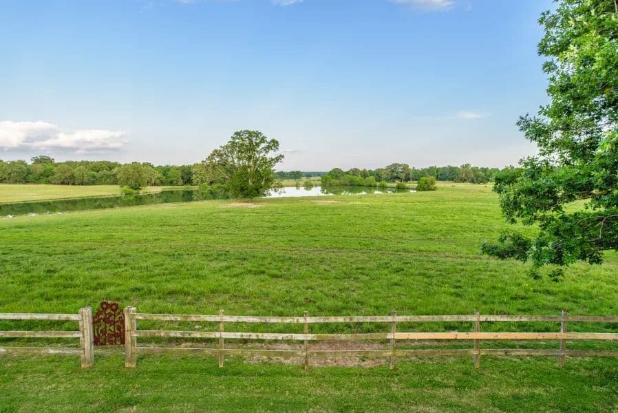 Exquisite on-going cattle ranch consisting of 4,490 acres +/-, 4 horse barns, 3 enclosed shops, 1 shavings barn, 3 equipment sheds, and 1 hay barn. All pastures equipped with well water and troughs. Miles of wood pasture fencing and wooden horse paddocks, riding ring, breaking pen, and 13 + miles of cleared riding rails along Big Prairie Creek with deer hunting shooting houses. Game plots and 1/4 mile clay race track with 4 legend race cars. Four stocked fishing lakes and 2 bridges crossing Big Praire Creek. Paved main entrance and service entrance with paved road continuing to the main shop area. Electronic main ornamental iron gate; service gate at the entrance.