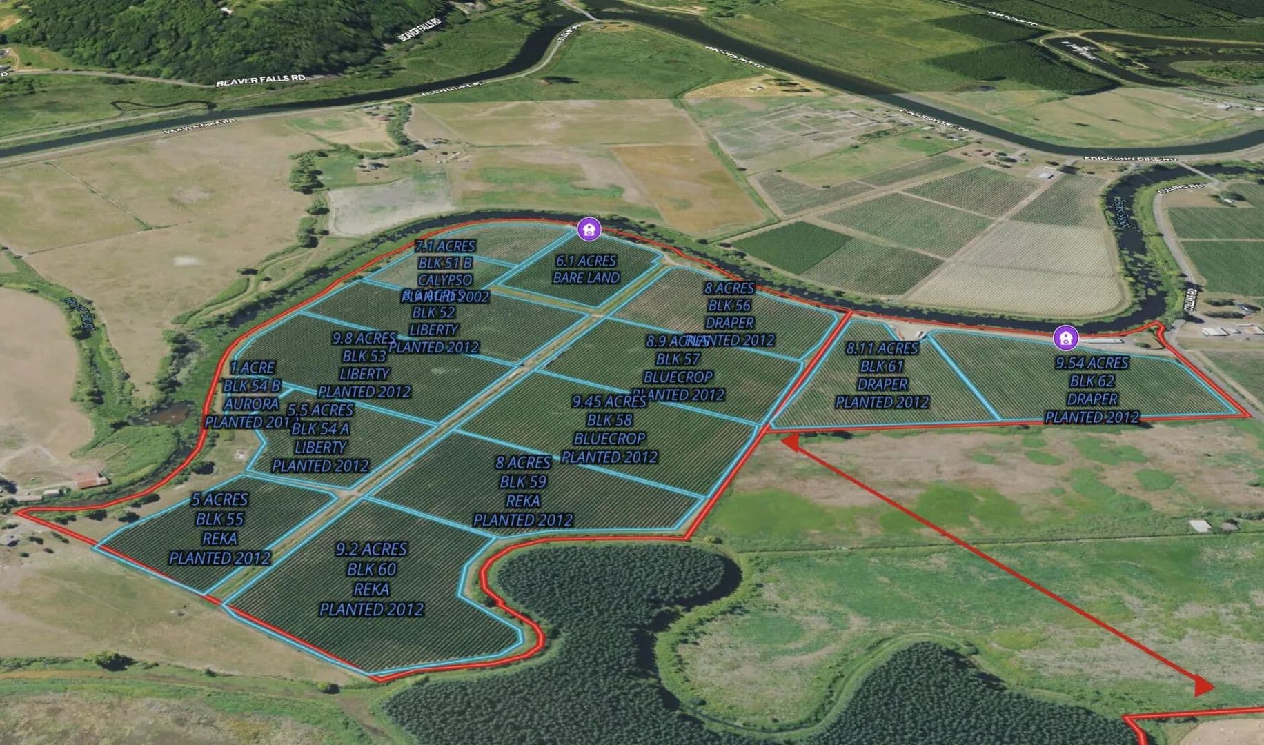 163-acre blueberry farm with good production w/ 37 acres of developable land. This farm is situated on a former peat bog, featuring exceptionally high organic matter content, which can significantly reduce top-dressing and input costs. The microclimate benefits from the moderating influence of the Columbia River's thermal mass and daily cooling breezes from the Pacific allowing the farm to ripen 10 to 14 days later than the Willamette Valley. Turnkey operation comes with the farm equipment (Oxbow & Littau)