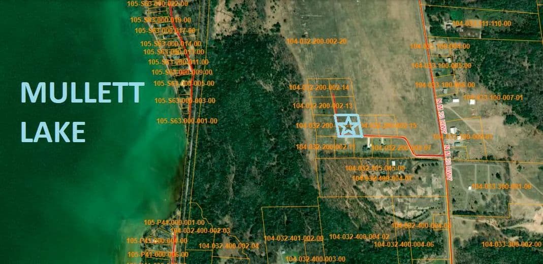 This beautiful landscape is ready and waiting for you! The 1.25+/- acre parcel is high/dry, flat and is ready to build with convenient access to natural gas and electricity! Mullett Lake, Aloha State Park,