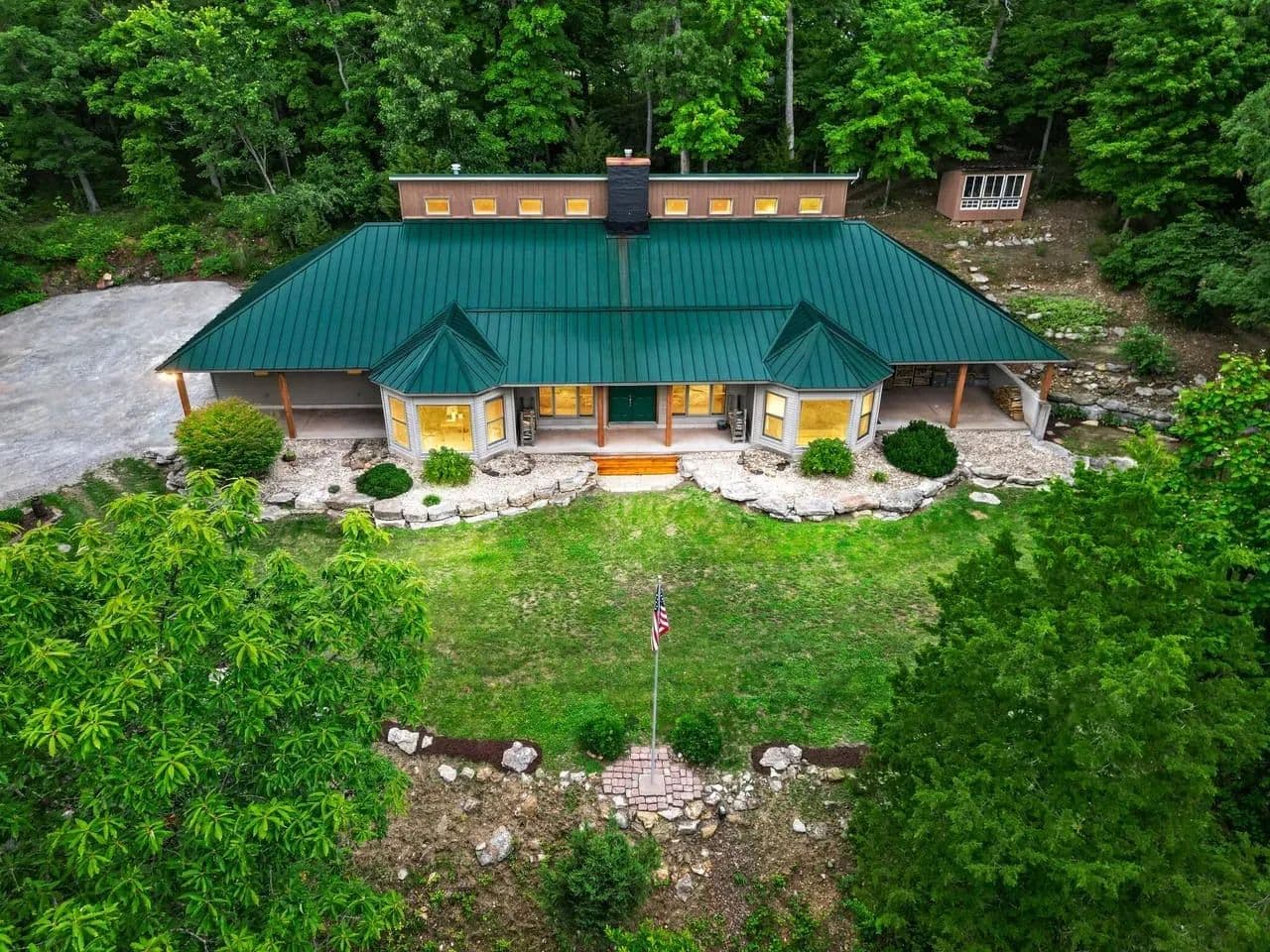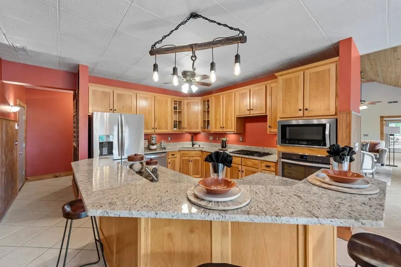 NO HOA, NO FEES, NO RESTRICTIONS, LOW TAXES! Store your boat, camper, etc. Welcome to this luxurious rustic estate offering unmatched privacy & breathtaking views. Nestled in nature, this stunning home features a charming front porch perfect for enjoying spectacular sunsets. The heart of the home is the impressive two-story Great Room w/soaring wood ceilings, exposed beams, stone fireplace, built-in bookshelves, a bar, ideal for entertaining. The gourmet kitchen boasts stainless steel appliances, two sinks, granite countertops & spacious breakfast room w/panoramic views. The main floor suite offers a sitting room, private patio ready for a hot tub, a walk-in shower, double vanities & walk-in closet w/washer & dryer. The upper level features 2 additional bedrooms, a loft, & second laundry space. Outdoors discover a bunkhouse, storage sheds & an ancillary building suitable for a fancy chicken coop or creative use. Experience the perfect blend of rustic charm and modern homestead has so much to offer! Radiant heat floors throughout main level, 3 laundry areas (one in primary closet, one in utility room, the other upstairs), private covered porch off primary suite has electric for hot tub, entrances on upper level and lower level, staircase space designed for future elevator use and so much more!