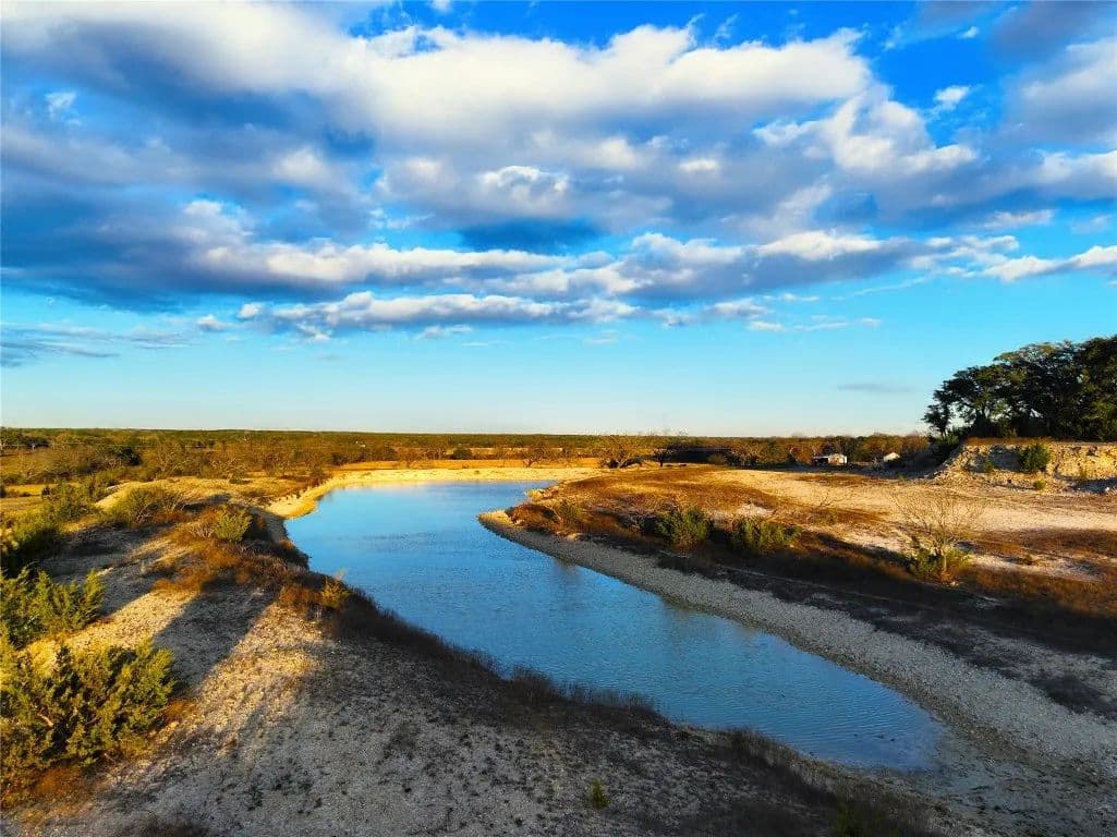 The property features half a mile of the South Fork San Gabriel River, a wet-weather creek that holds water approximately 20–25% of the year under good conditions. In addition, two half-acre ponds, stocked with catfish and sunfish, provide excellent opportunities for fishing and relaxation.