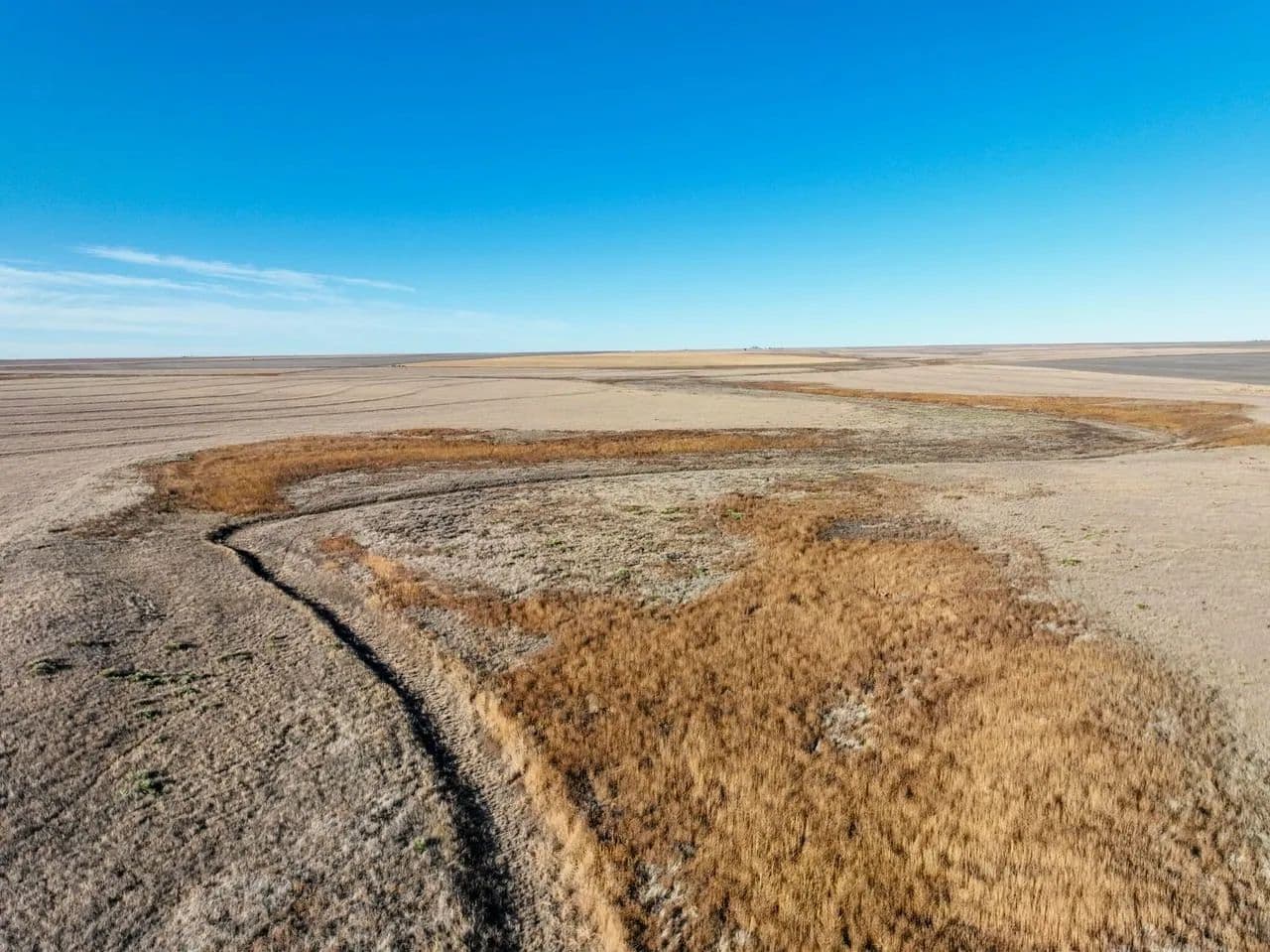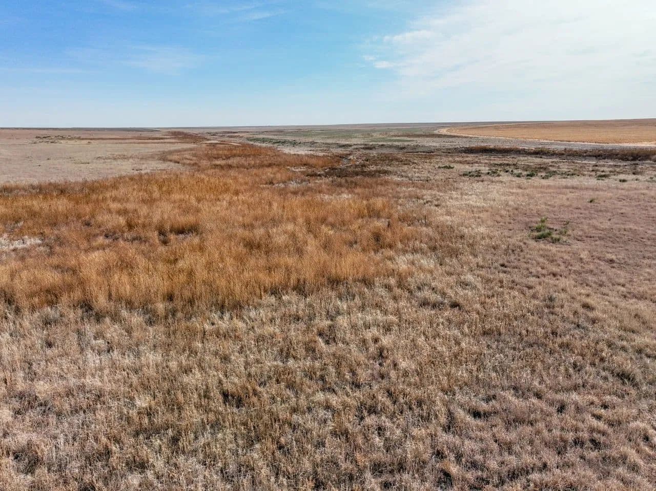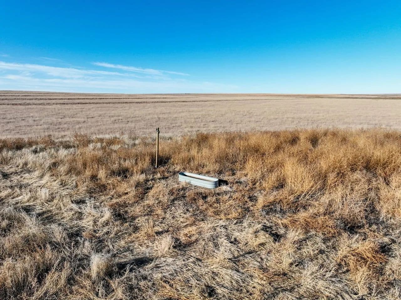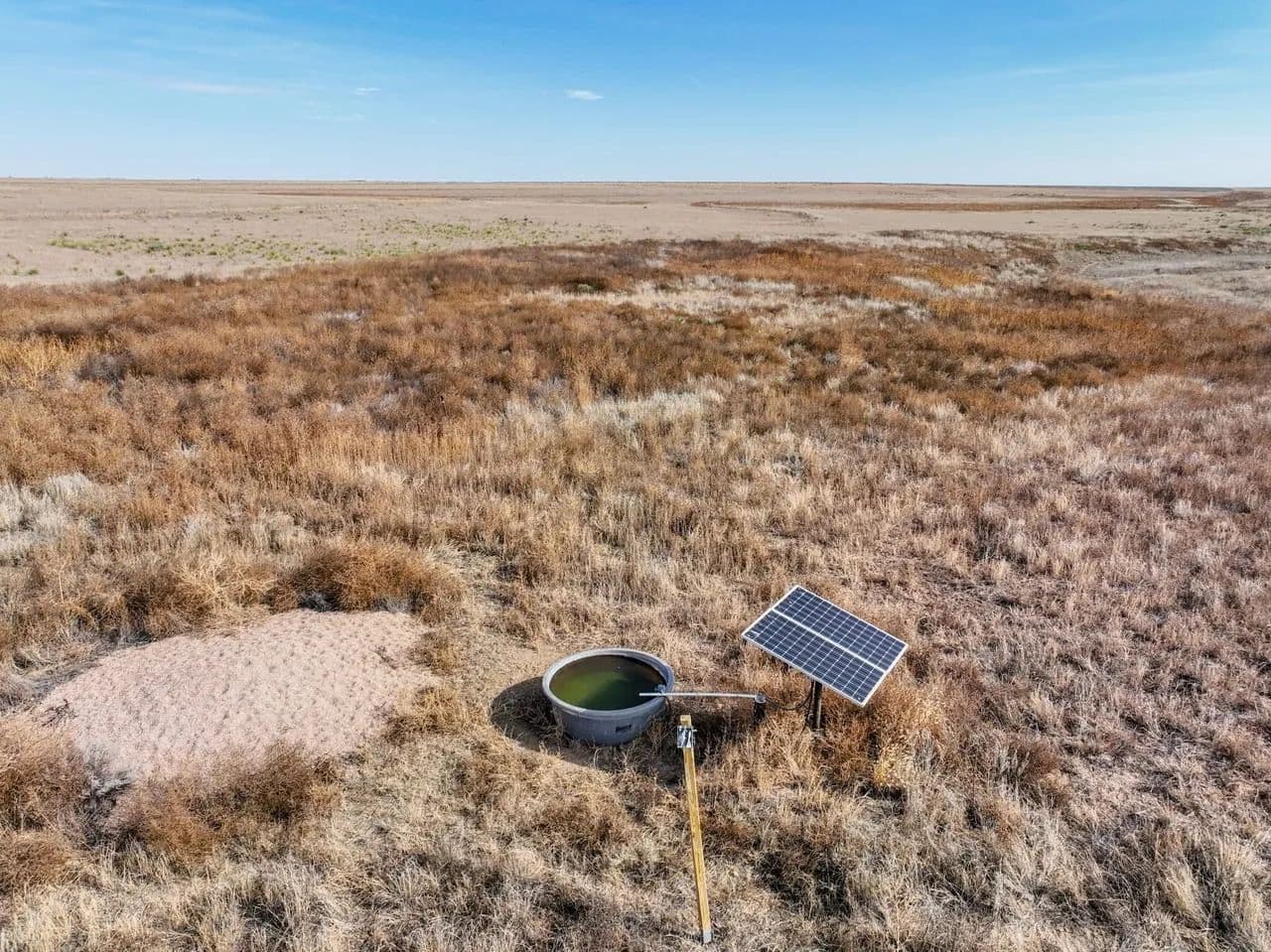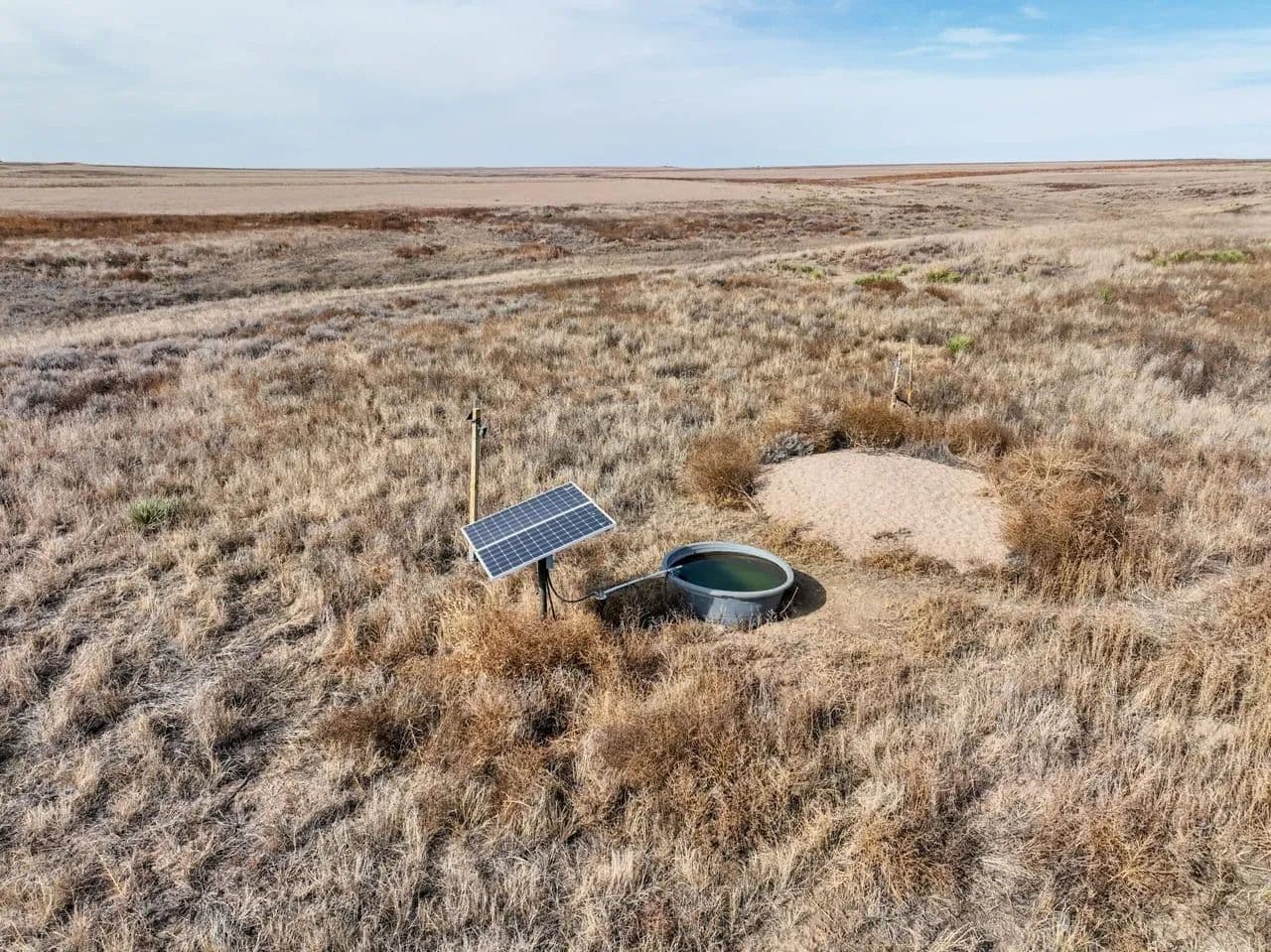 The property showcases native grassland habitat with a picturesque creek bottom corridor running through the acreage. While the creek flows seasonally rather than year-round, the ranch is equipped with a modern solar-powered water well, ensuring reliable water access for livestock or wildlife management without the ongoing expense of traditional utilities.