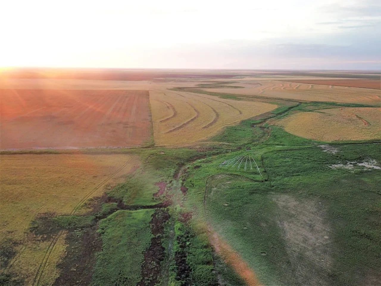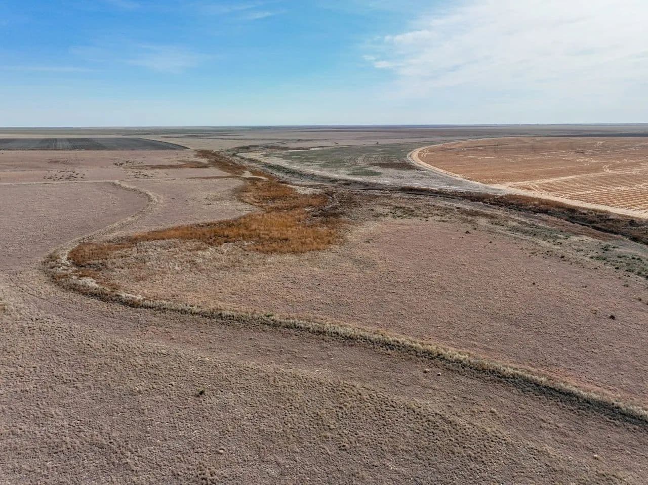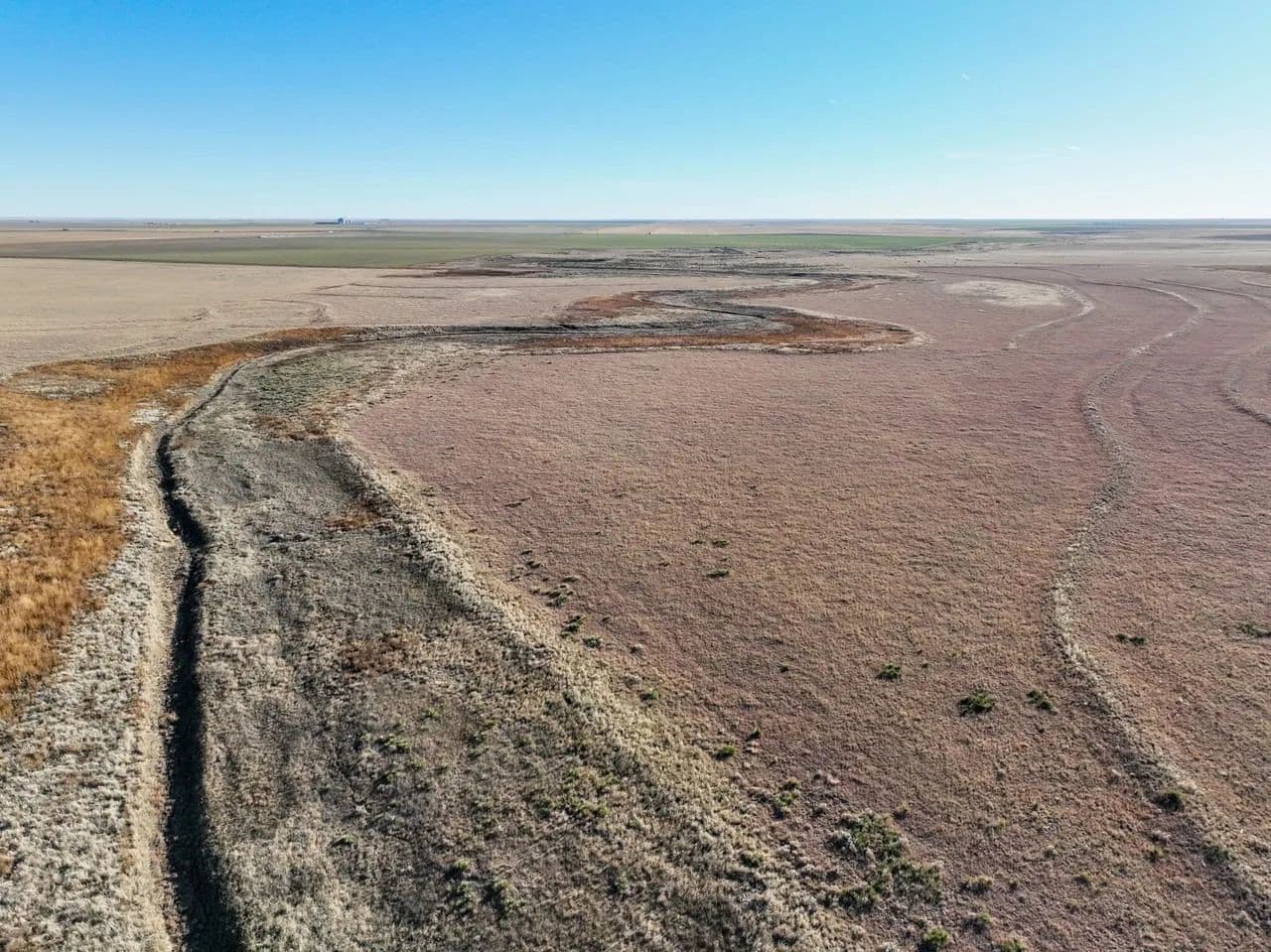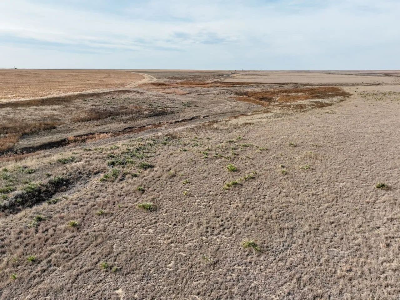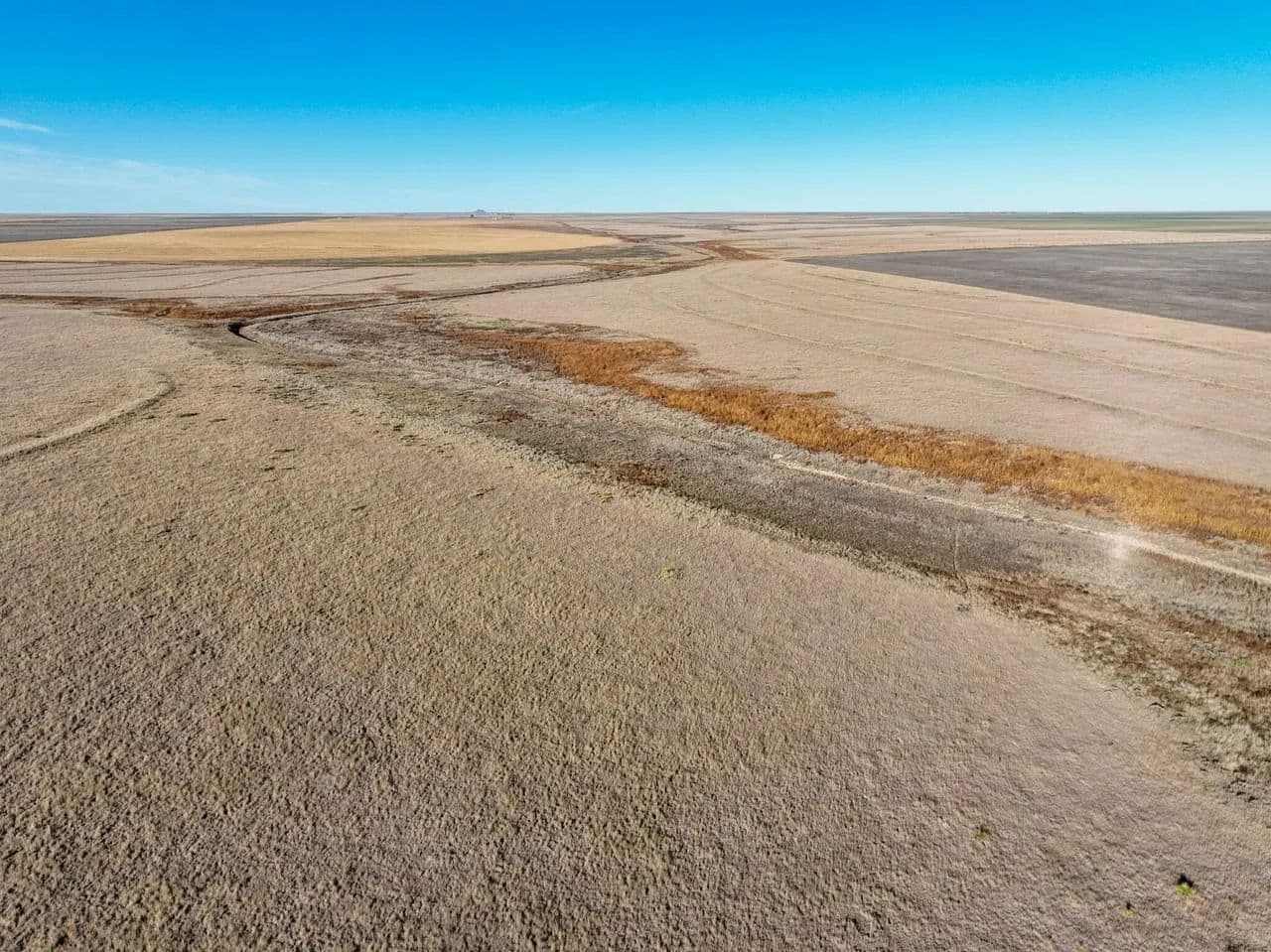 The property showcases native grassland habitat with a picturesque creek bottom corridor running through the acreage. While the creek flows seasonally rather than year-round, the ranch is equipped with a modern solar-powered water well, ensuring reliable water access for livestock or wildlife management without the ongoing expense of traditional utilities.