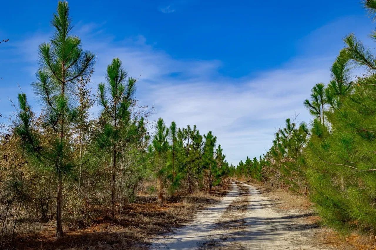The property supports abundant whitetail deer, wild turkey, and bobwhite quail, with a diverse mix of river-bottom hardwoods, managed uplands, openings, and edge habitat. Upland areas feature planted longleaf and loblolly pine, creating attractive potential homesites and camp locations while also supporting long-term timber investment and wildlife management objectives. Extensive road frontage across multiple tracts enhances access, flexibility, and future planning options.
