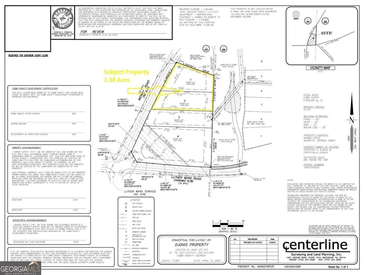 Our Seller Is Offering For A Limited Time 1.38 Acres Of Serene Residential Land in The Hillgrove High School District. This Property Is Close To Shopping, Schools & All Your Needs. Build That Dream Home Or A Couple Of New Homes in The Hotest Area Of West Cobb! This Gently Rolling Tract Has 280 Feet Of Road Frontage On Midway Road, Zoned R-30, Has Sewer On-Site & Can Potentially Be Subdivided Into 2 Lots Without Re-Zoning. New Construction in The Area Is One Million Dollars Plus. Survey, Conceptual Plan, Aerial Map, Topo Map & Tax Plat Available