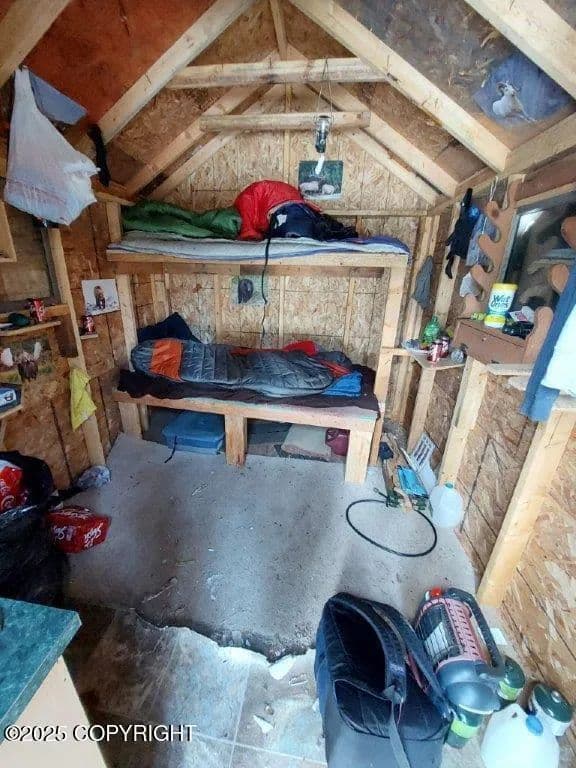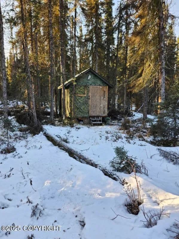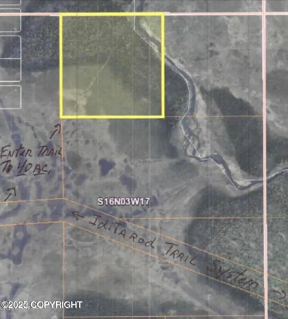 Great Wilderness Retreat with Fish Creek running through the upper N./W. Corner of the land. Surrounded by State & MSB Lands. There's a high and dry building site along the West side of property. Also a Small Hunting Cabin, Great Dog Mushing Trails through out the area. Many miles of trails to hike and or big bike riding, recreation at its best. Take the Iditarod Trail to the property and about 4 miles in you cross a bridge over which Fish Creek flows under it. This creek has a great Salmon run in the Fall of the Year! Its the outlet from Big Lake. Creek runs down to the inlet at about mile post 17 on KBG 'Their again the creek goes under the road and just North of the Highway down stream is dip netting at its best' especially when the runs are in.