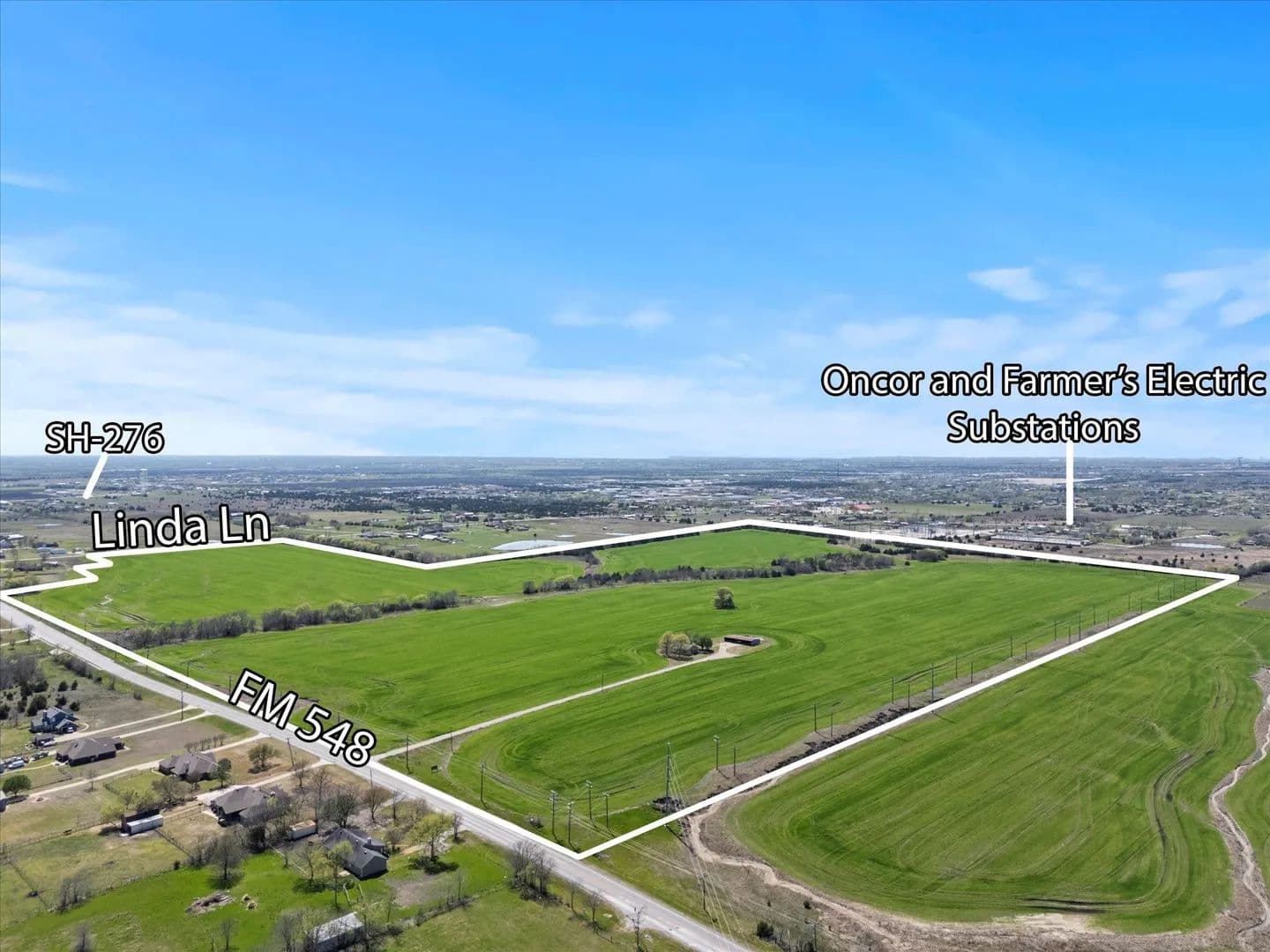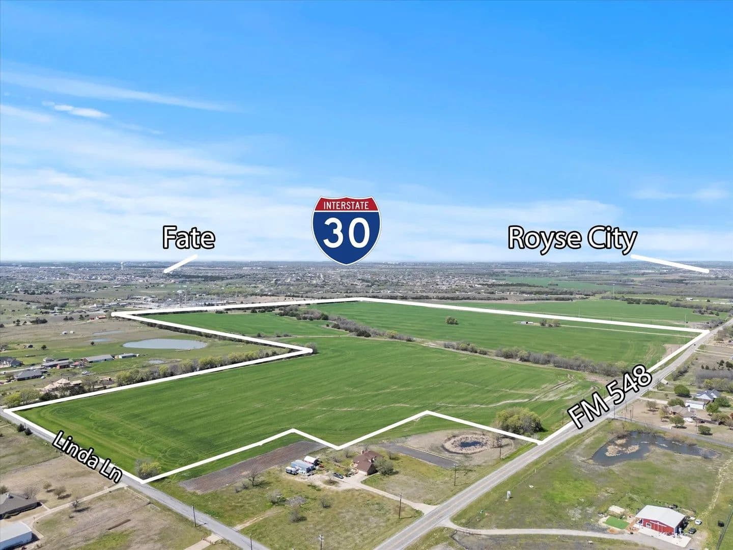Platinum Land Group is proud to offer this 139± acre property located in the rapidly growing area of Rockwall County and within the Royse City ISD. The site offers excellent visibility with frontage on FM 548 and Linda Lane, along with high traffic exposure—75,000 VPD on I-30 and 15,000 VPD on Hwy 276. Ideal for industrial, commercial, agricultural, or rural residential development, the land is situated outside the city limits of Fate and within the Fate ETJ. The property is AG exempt and benefits from utility access, with Oncor and Farmer's Electric substations located along the west boundary. With easy access to I-30, Hwy 276, and just 40 minutes from downtown Dallas, this is a prime location for future development. Survey available.
