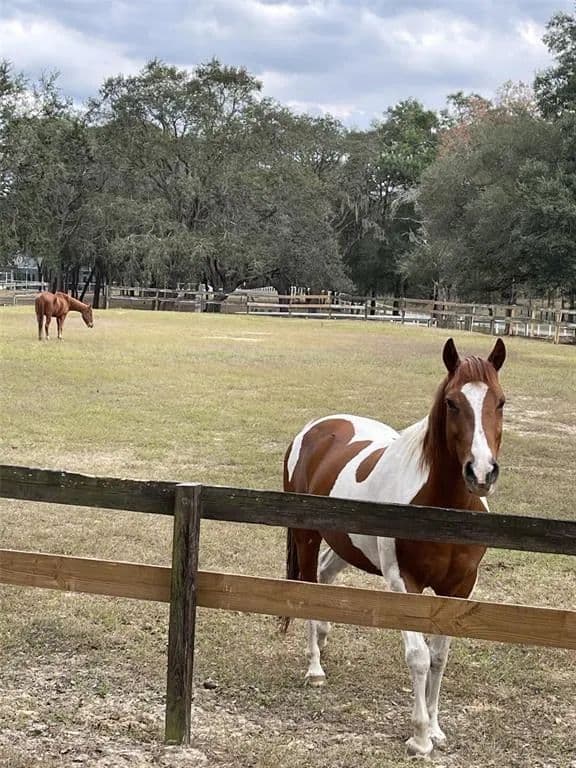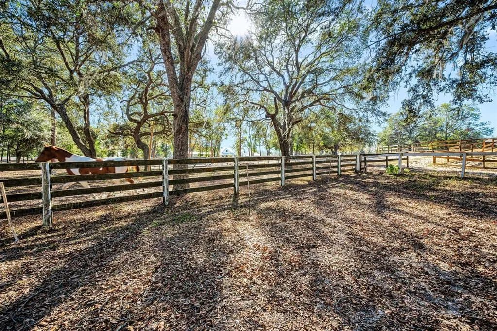 Beautiful 5-acre cleared and fenced parcel located directly behind 20111 Old Trilby Rd in the equestrian community of Trilby Trails. COME HERE AND BUILD YOUR DREAM HOME. Property features granddaddy oaks, a large dressage ring with full sprinkler system, 2-stall barn with water and electric, and existing water/electrical lines (well and utility hookup not included). Fully gated, fenced, and cross-fenced. No mobile homes allowed. No HOA. Just 3 blocks from the 45-mile Withlacoochee Trail for biking, hiking, and horseback riding. Conveniently located near Historic Dade City, approx. 45 minutes to Tampa and 1 hour to beaches and Orlando.