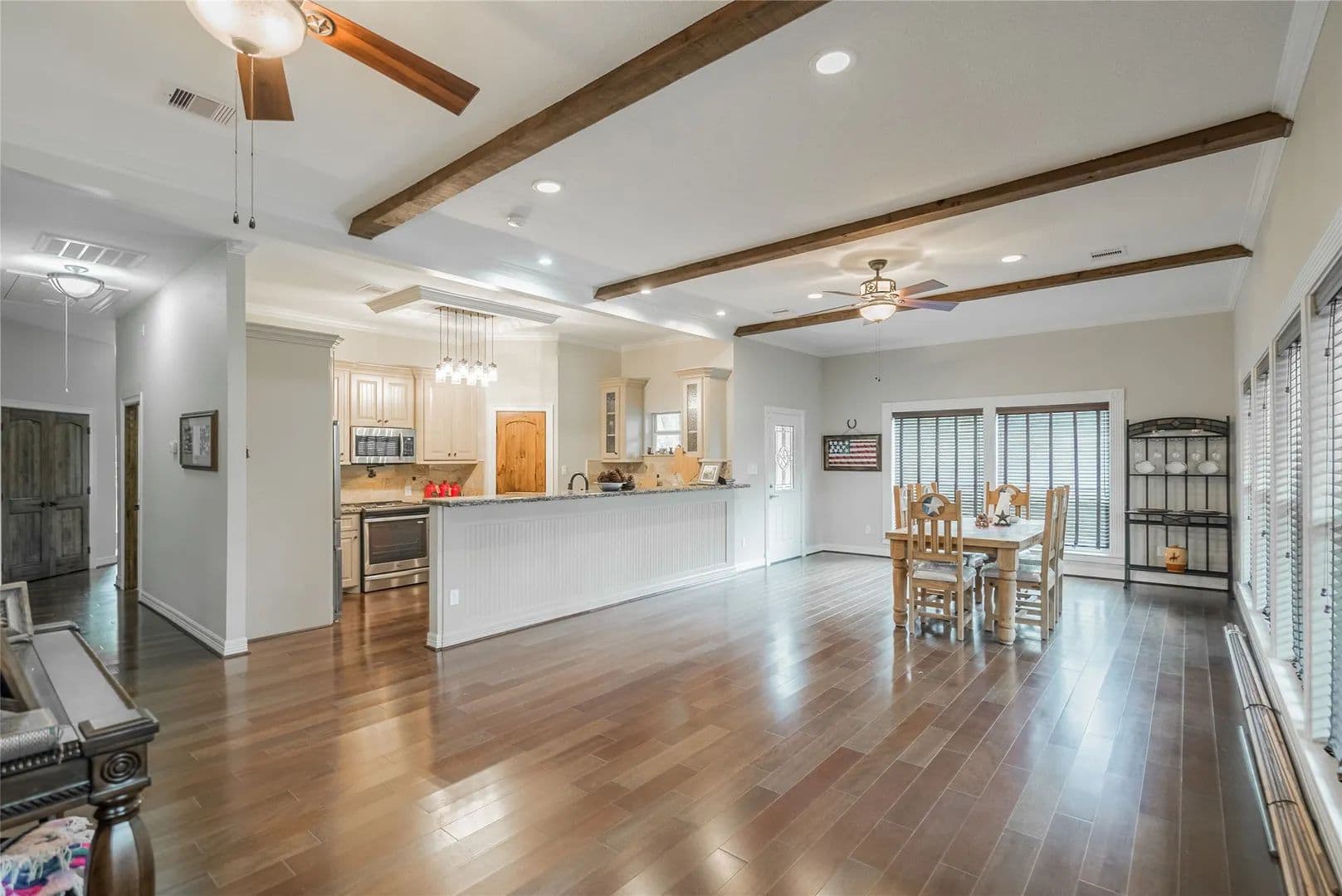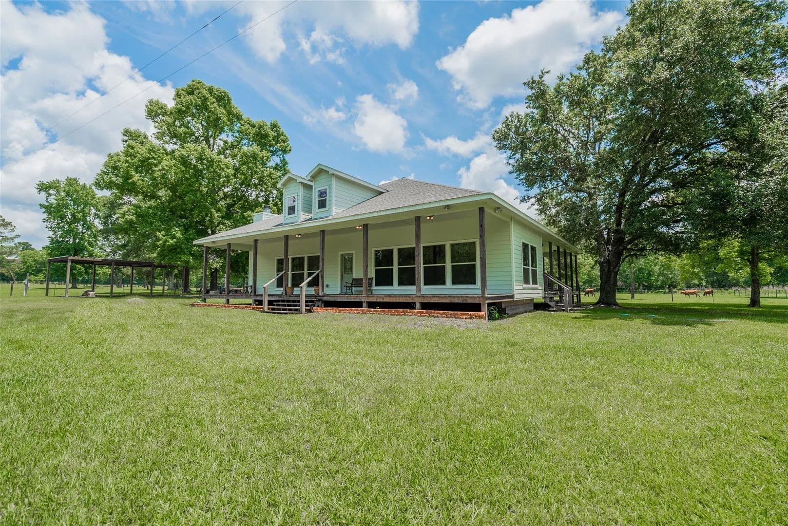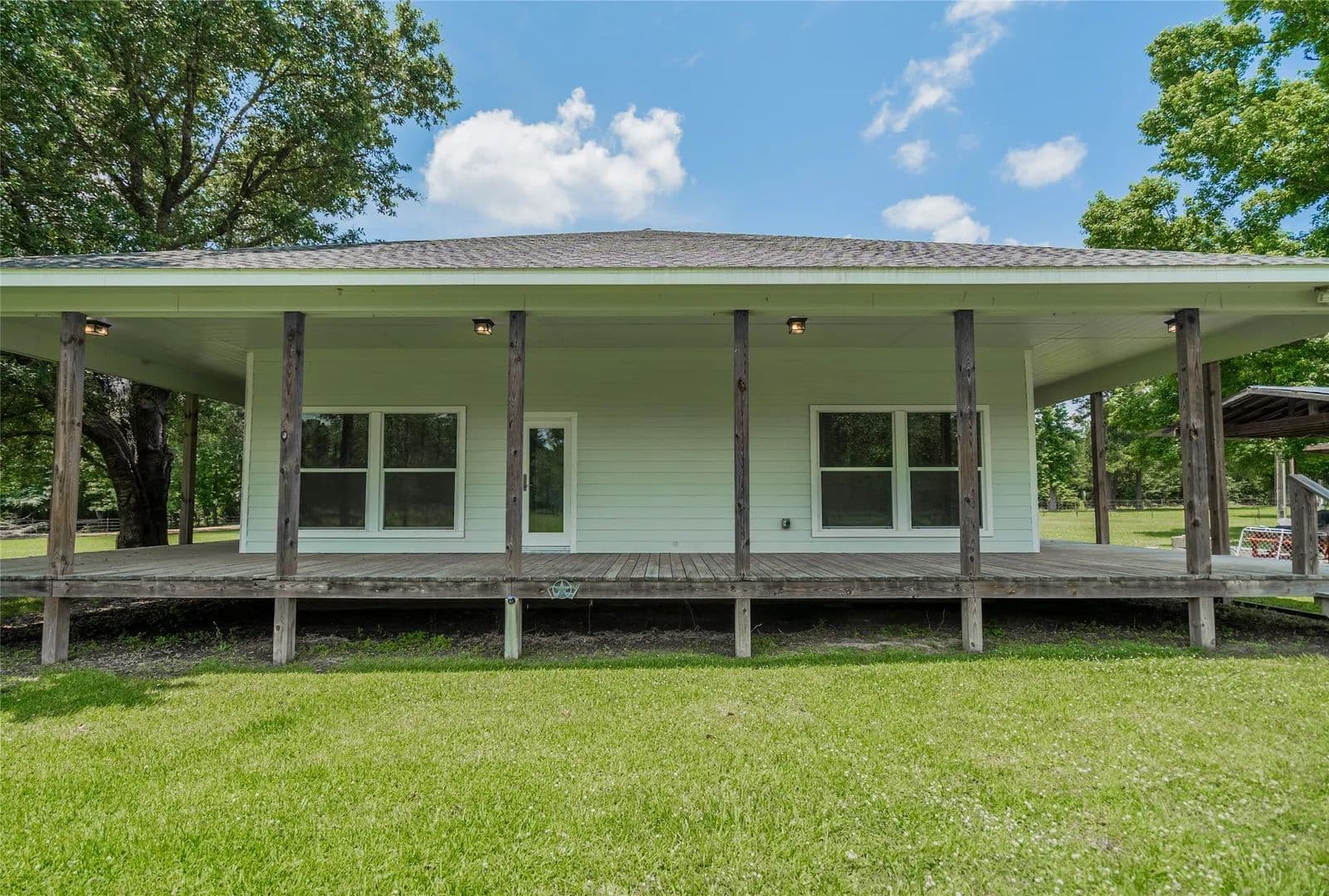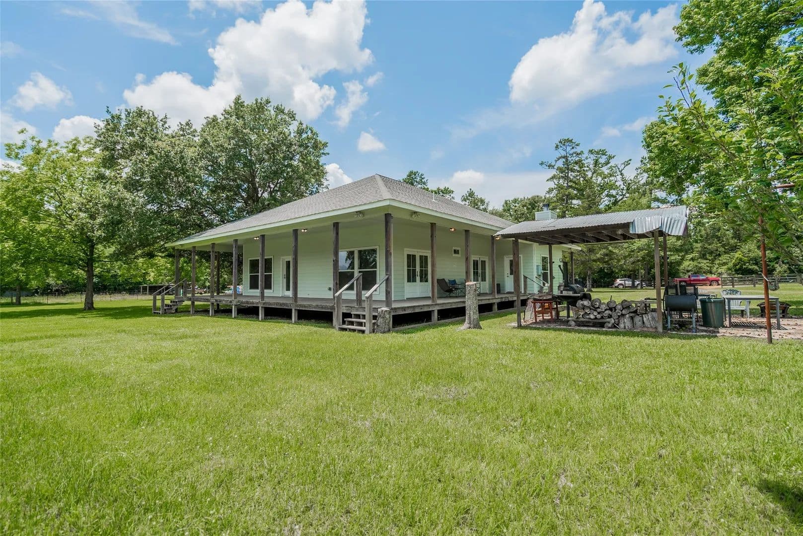 Here is a terrific ranch home on 29 Beautiful Acres, just 30 minutes from The Woodlands. It features a wrap-around porch from where you can see the pastures, woods, pond with island. The pond is stocked and there is a bridge that will take you to the island. The house has 3 comfortable bedrooms, two baths, a HUGE Family Room with fireplace, lots of windows with custom blinds. The dining area is huge as well. In between the dining and Family Rooms is a space large enough for a pool table. The owner is a builder and has done a wonderful job of planning for and delivering on a finished home that is EXTREMELY substantial, and will endure the test of time. The property has a very nice and large barn on concrete. The property is completely fenced and crossed fenced, has great pastures for horses or cows, deer hunting blinds and feeders are out in the wooded area that come close to the National Forest. The driveway has an electric gate. So much MORE, Gotta come see!!!