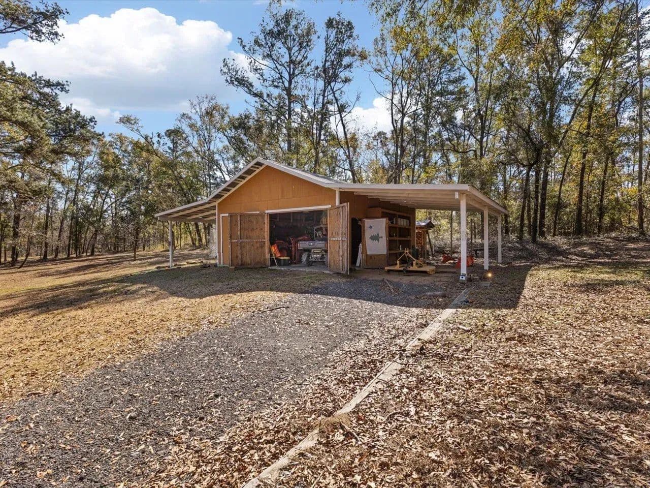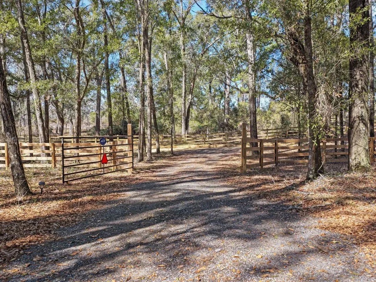 Impeccably maintained 3BR/2BA home situated on 9.7 acres offering privacy and room to roam. The property features two gated entrances, a beautiful winding driveway, a pond with fountain, and established trails throughout the back oak hammock. Outdoor improvements include a 2-car carport, workshop, and RV shed with 30 amp hookup - ideal for storage, hobbies, or equipment. The home is move-in ready with a new AC system less than one year old, a whole-home Generac generator that automatically activates during power outages, a home security system, and a yard irrigation system for added convenience. The home includes 3 bedrooms, 2 bathrooms, a separate dining room, kitchen with bar and breakfast nook, office, front porch, screened in back porch, oversized deck, and covered walk to detached carport. Wildlife is abundant with deer and turkey frequently seen on the property. Conveniently located just minutes from Cherry Lake and positioned between Madison, FL and Quitman, GA. A rare opportunity to enjoy privacy, natural beauty, and a move-in ready home in a peaceful North Florida setting.