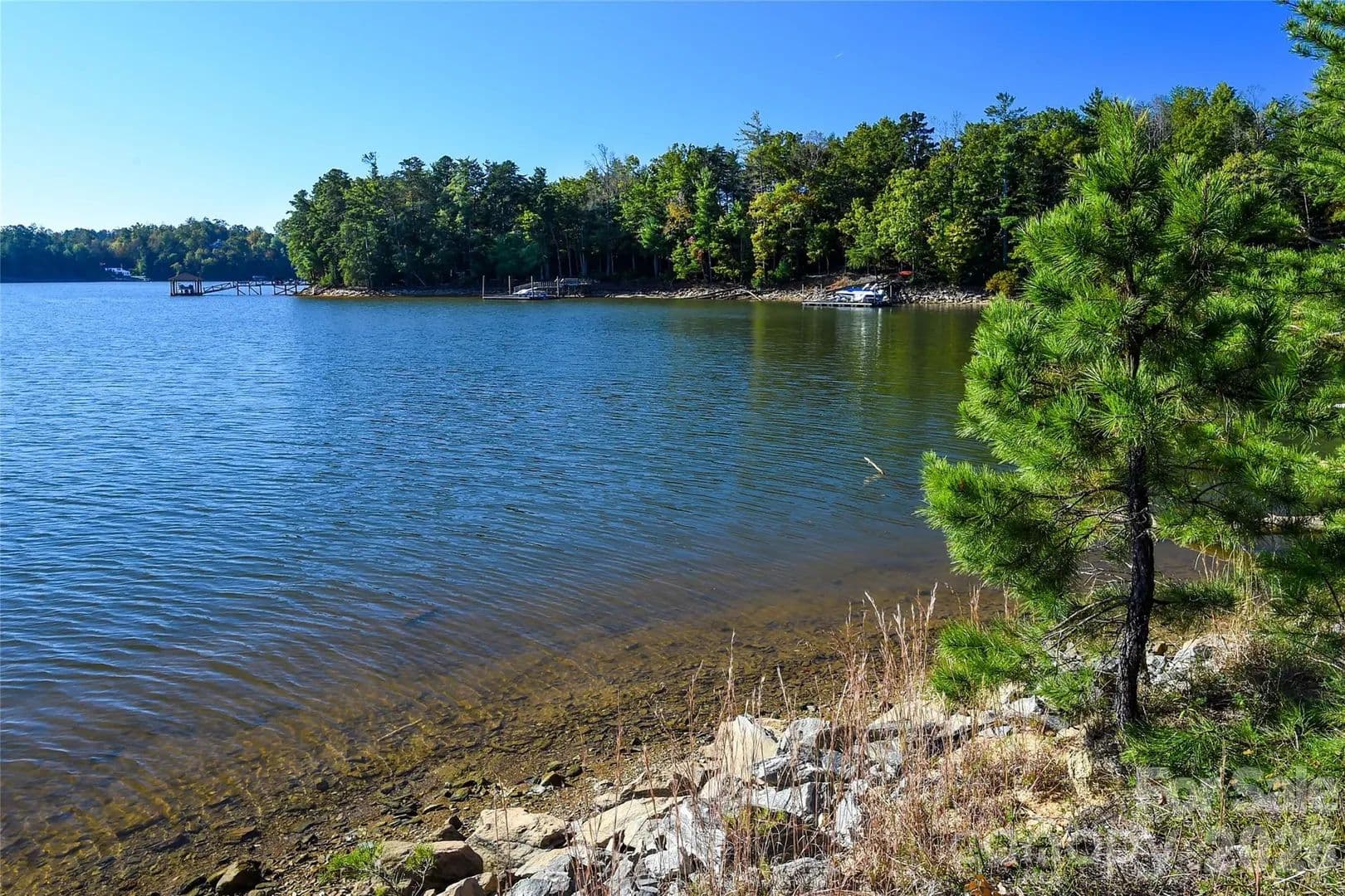 The shoreline is fully stabilized along the entire lake frontage, providing long-term protection, ease of access, and peace of mind, an increasingly rare and valuable feature on Lake James. A private boat dock is already in place, allowing immediate enjoyment of the lake without the uncertainty of future permitting.