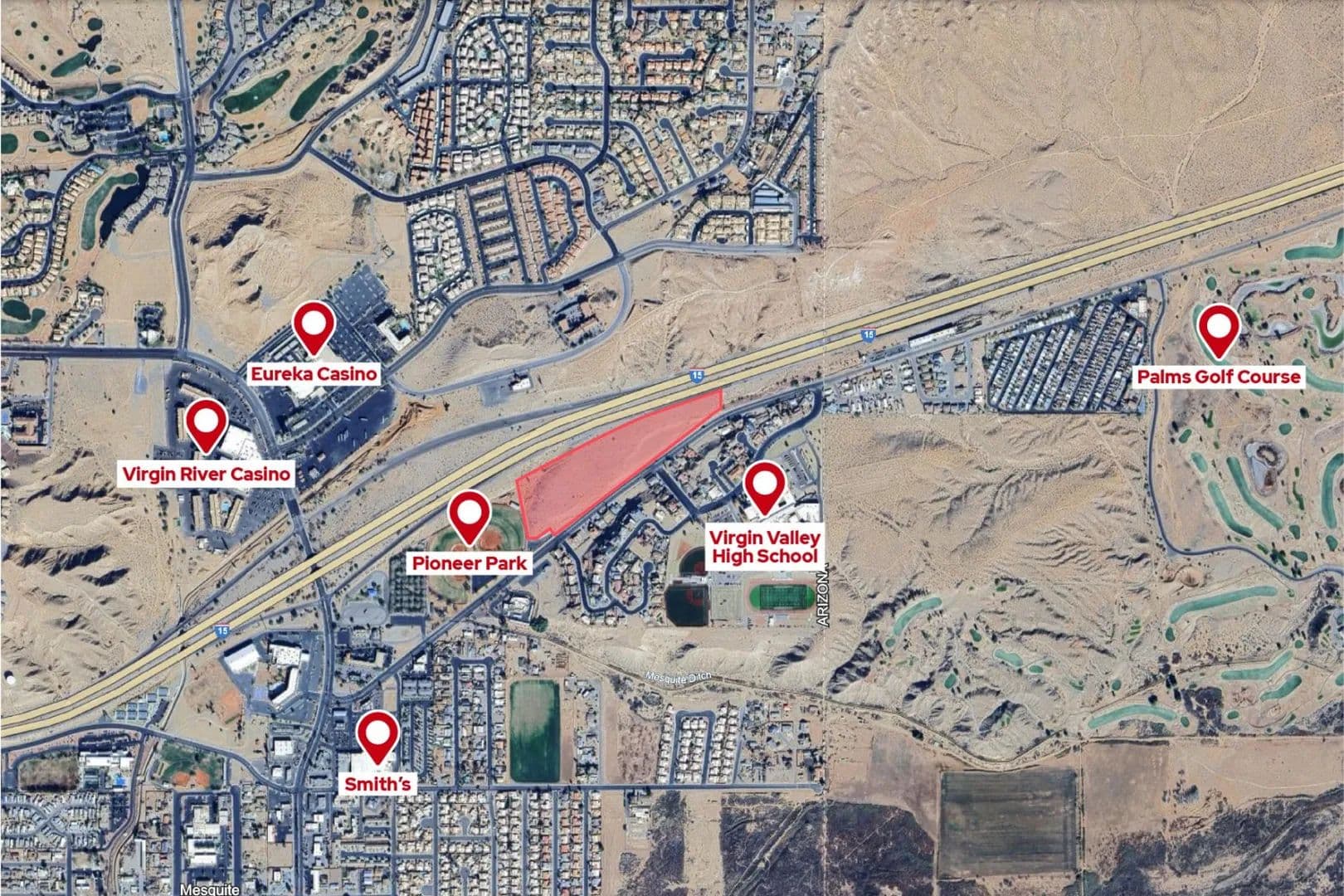 Discover an outstanding commercial development opportunity in the growing city of Mesquite, Nevada. This expansive 11.9+- acres parcel is ideally situated at 601 Hillside Drive, just minutes from I-15, offering excellent access and freeway visibility for a wide range of commercial uses including retail, hospitality, professional offices, storage facility and more. Cash or Seller will consider Owner Carry with substantial down for short term. Soils Report and Survey are done.