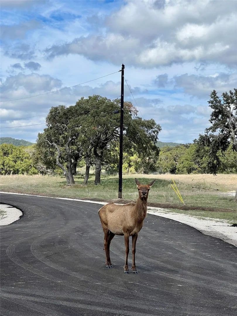 Private Gated Elk Mountain Ranch-Wildlife Exempt. Amazing Hill Country Views and minutes from Historic Boerne. Enjoy the views and large herd of Elk and other wildlife including turkey and deer. This lot is located towards the back in a cul-de-sac with beautiful large trees and a perfect building area. Back of the lot backs up to other privately owned land. Well and septic will be needed. No time frame to build your dream home and/or guesthouse or Barndominium.