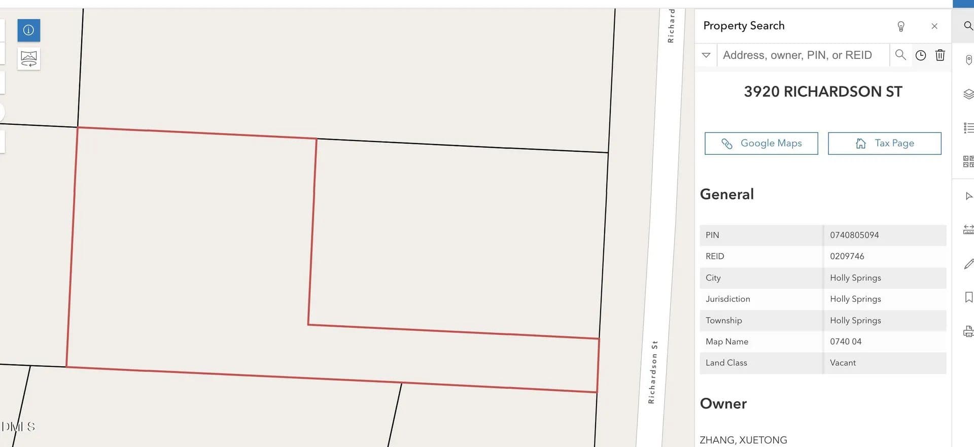 Situated on approximately 0.53 acres, 3920 Richardson Street offers a rare opportunity to own a spacious parcel of land. Offers privacy and breathing room. Conveniently located in Holly Springs, close to shopping and restaurants. Don't miss the chance to secure this piece of property. Buyer to get own survey, confirm zoning, utilities and suitability for intended use. Measurements of lot or road frontage or easements are not known