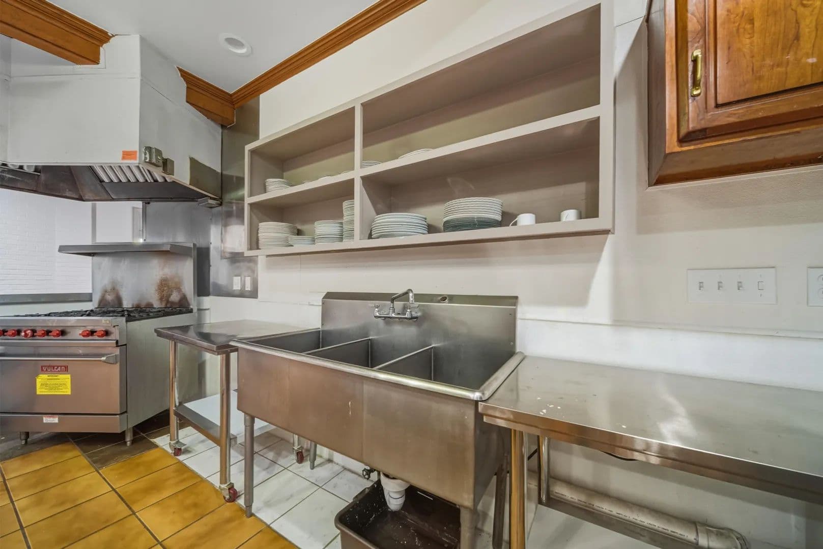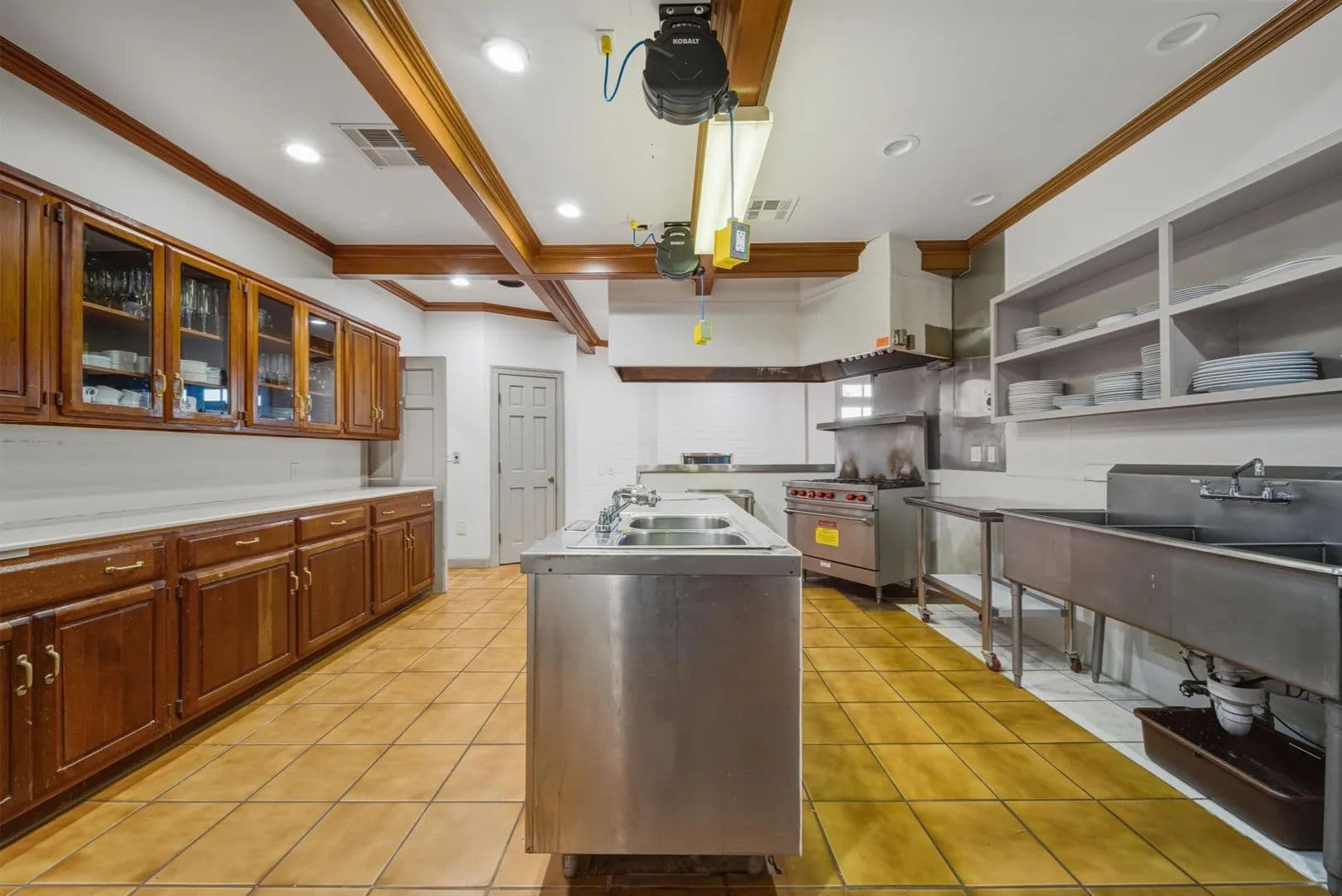 Commercial-style kitchen well suited for events, retreats, or large family use