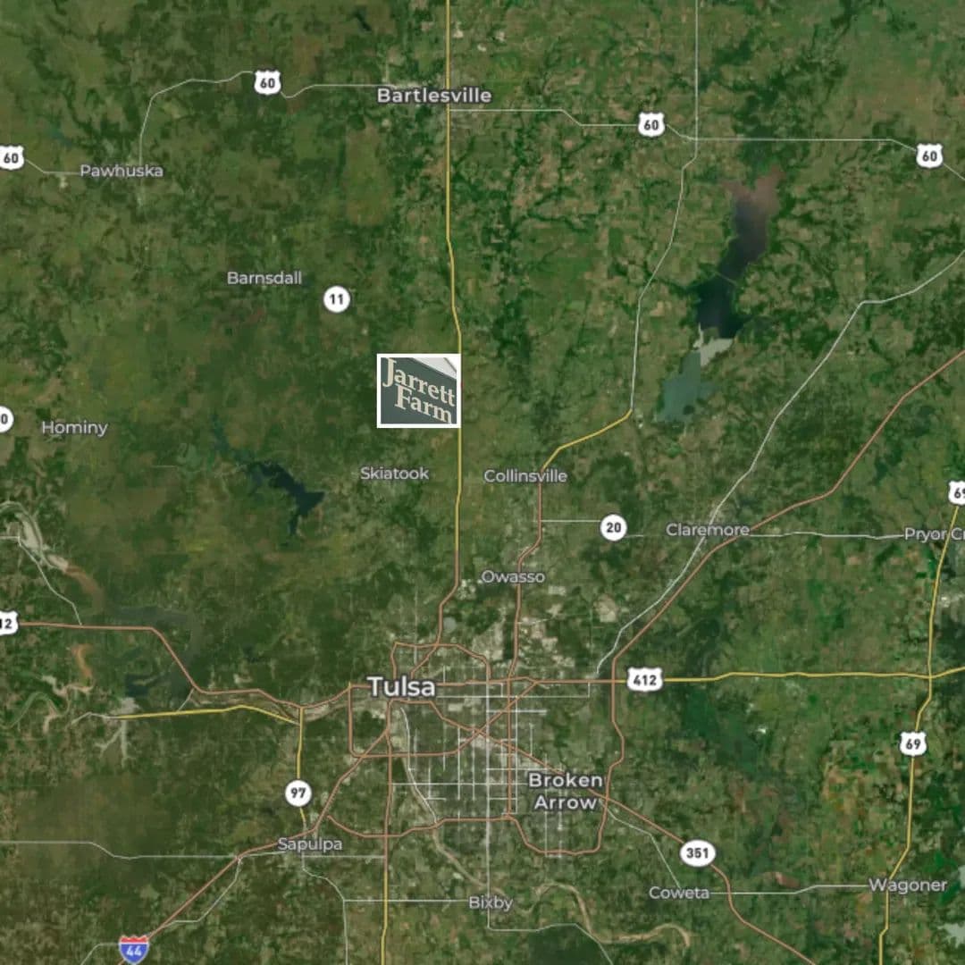 Conveniently located with approximately 1,300 feet of frontage along Highway 75, Jarrett Farms offers outstanding accessibility while maintaining a peaceful, secluded atmosphere just 20 minutes from Tulsa and 25 minutes from Bartlesville.