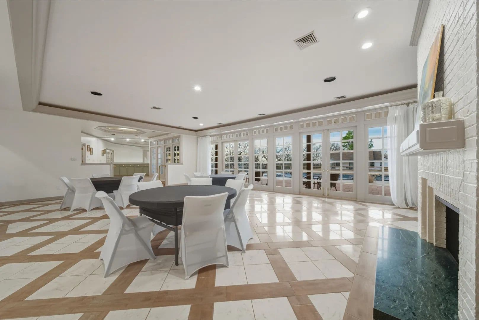 The home showcases timeless architectural elements, generous natural light, and direct connection to outdoor spaces including patios, gathering areas, and the pool, making it ideal for hosting guests or serving as a primary residence.