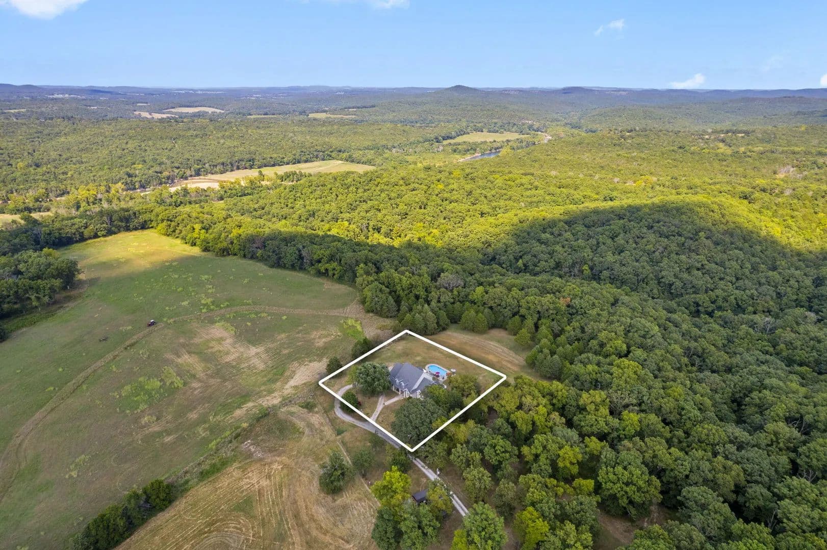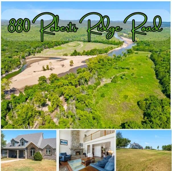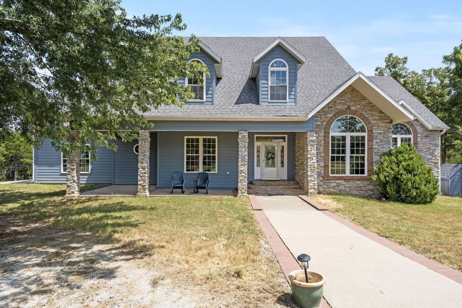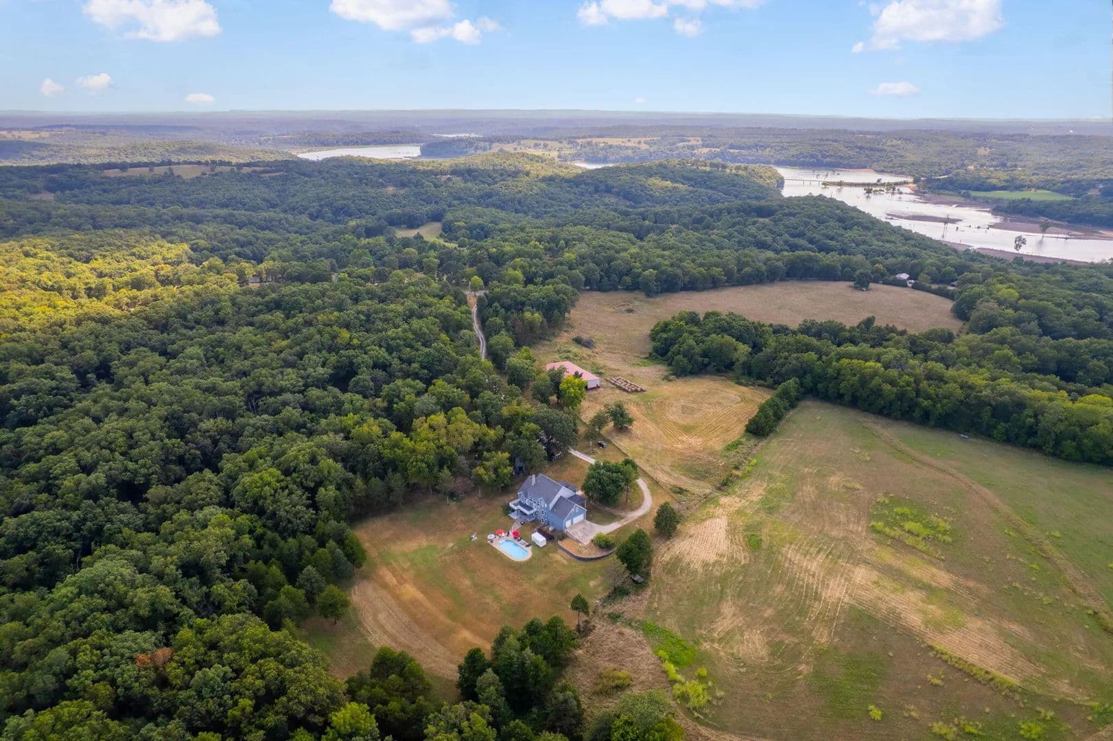 Welcome to Roberts Ridge! The home has a large open floor plan, when you walk in the front door you have an open foyer leading to the formal living room, with large windows spanning across the back yard, hardwood floors and massive stone fireplace. The primary bedroom and bath are located on the main floor. The staircase will take you to the upper level where you will find additional bedrooms, 2 more bathrooms, and a bonus room or 4th bedroom. Off the kitchen on the main level the stairs will take you to the fully finished basement with another full kitchen, family room and recreation room with yet another stone fireplace, safe room, workout room, mud room, and another full bathroom and access to the lower level patio with yet another outdoor fireplace. Outside you will find plenty of room to roam on this 131 acre farm with hayfields, 3 ponds, bottom land, wooded trails and access to Beaver Creek frontage to spend plenty of time in the water or floating creek to watch the bald eagles flying high above or chasing some great fishing. Need more space for trail rides or livestock, this property has several outbuildings, workshop and a 100x 60 red iron constructed barn with stables and a tack room that is fully equipped with water and sewer. If you have been looking for a private retreat or just a little elbow room this place has it all. Seller also has a list of farm equipment, household goods, and tools that can be purchased. Places like this don't come available often, with a country setting and only 15 minutes from Forsyth, nearby access to bull Shoals Lake, or a short drive into Branson for area entertainment.